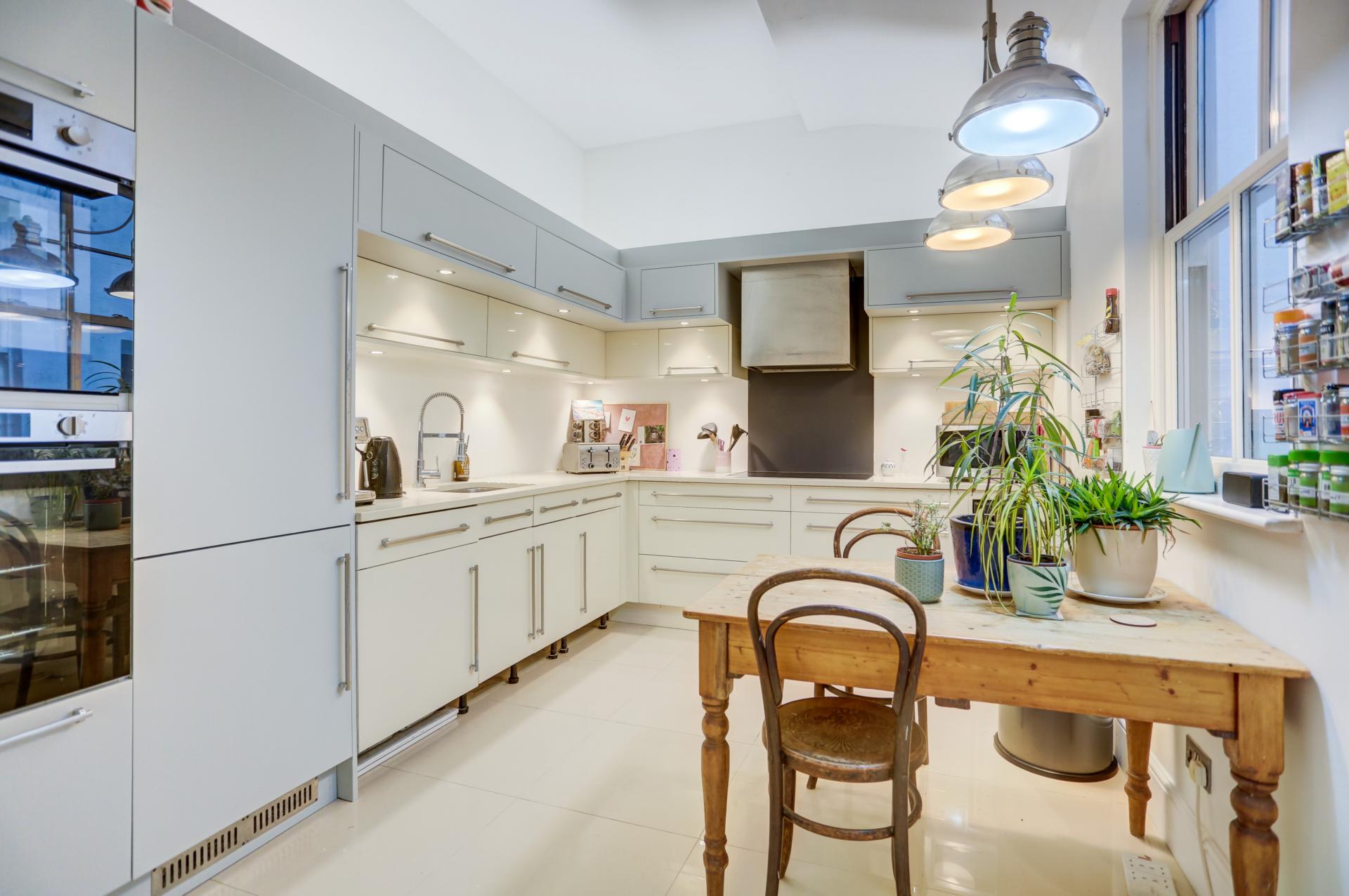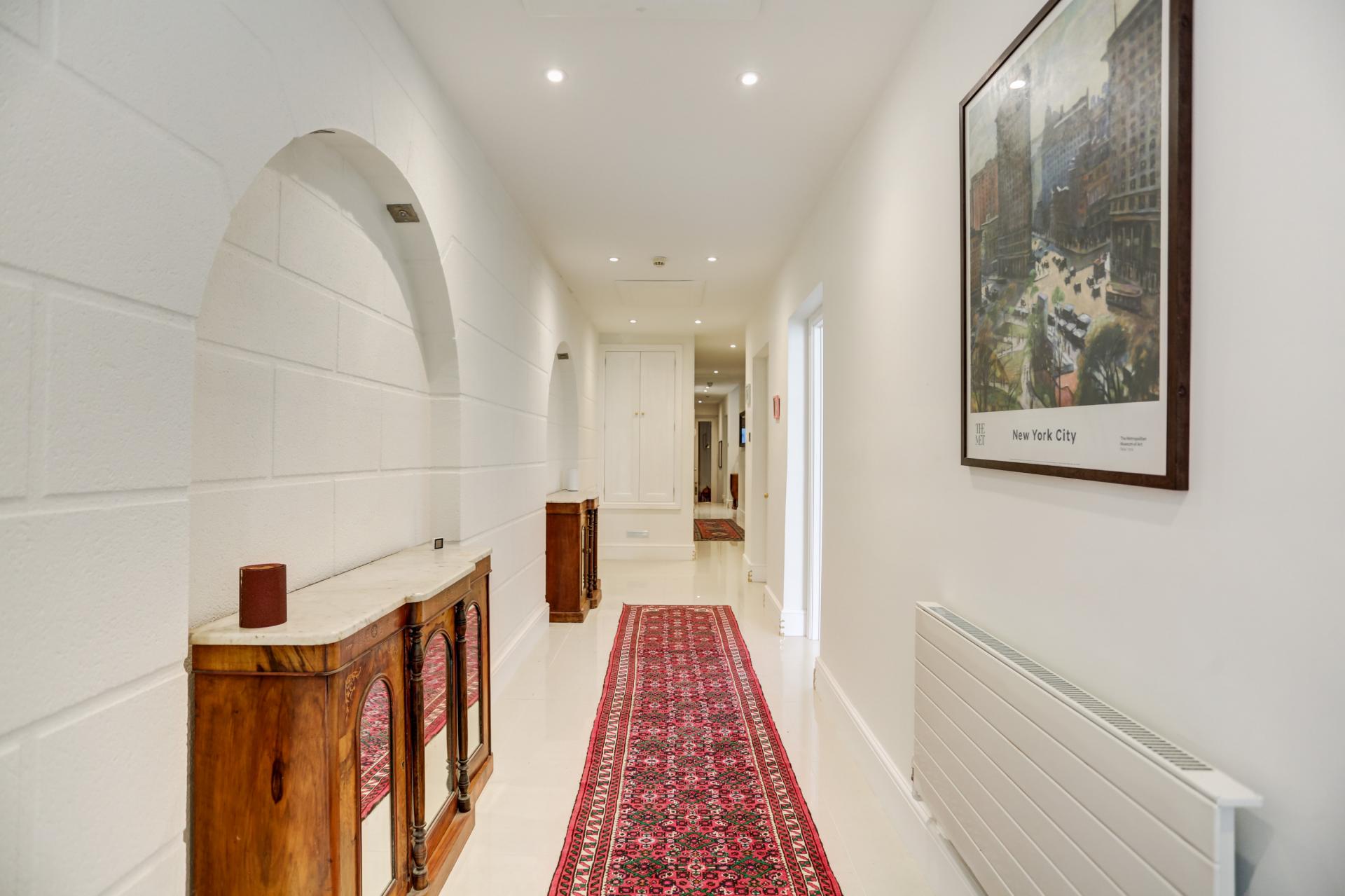 The luxurious principal bedroom enjoys a glamorous ensuite bathroom and views over a secondary courtyard, which is accessible via the hallway. A large, well-appointed modern separate kitchen, useful utility room, a chic guest bathroom and a spacious second double bedroom complete the superb accommodation.