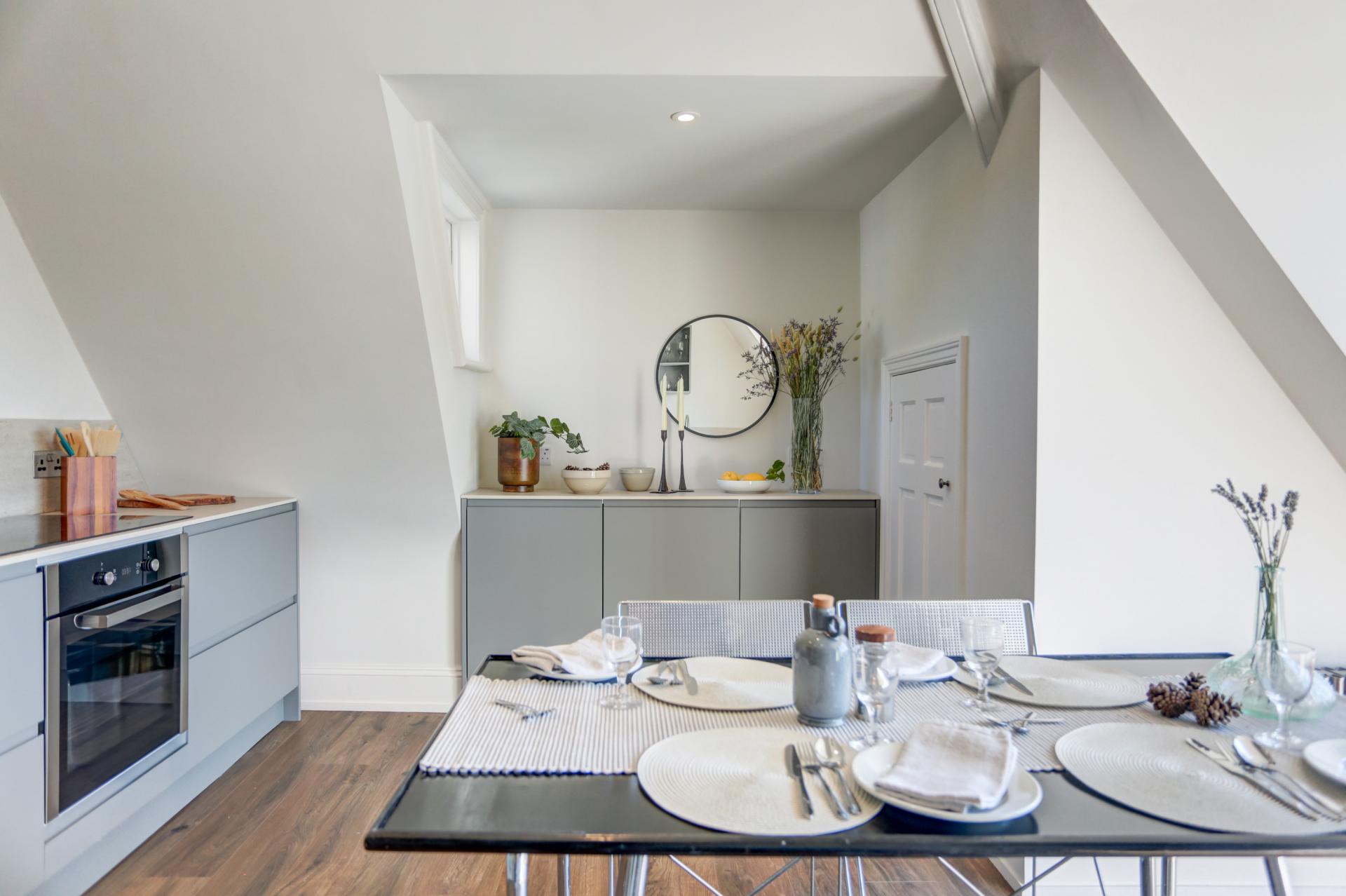 Accommodation comprises two well-proportioned double bedrooms. The principal suite benefits from a stylish en-suite shower room and its own private balcony. The second bedroom is generous in size and is served by a separate guest bathroom, completing the layout of this exceptional residence.