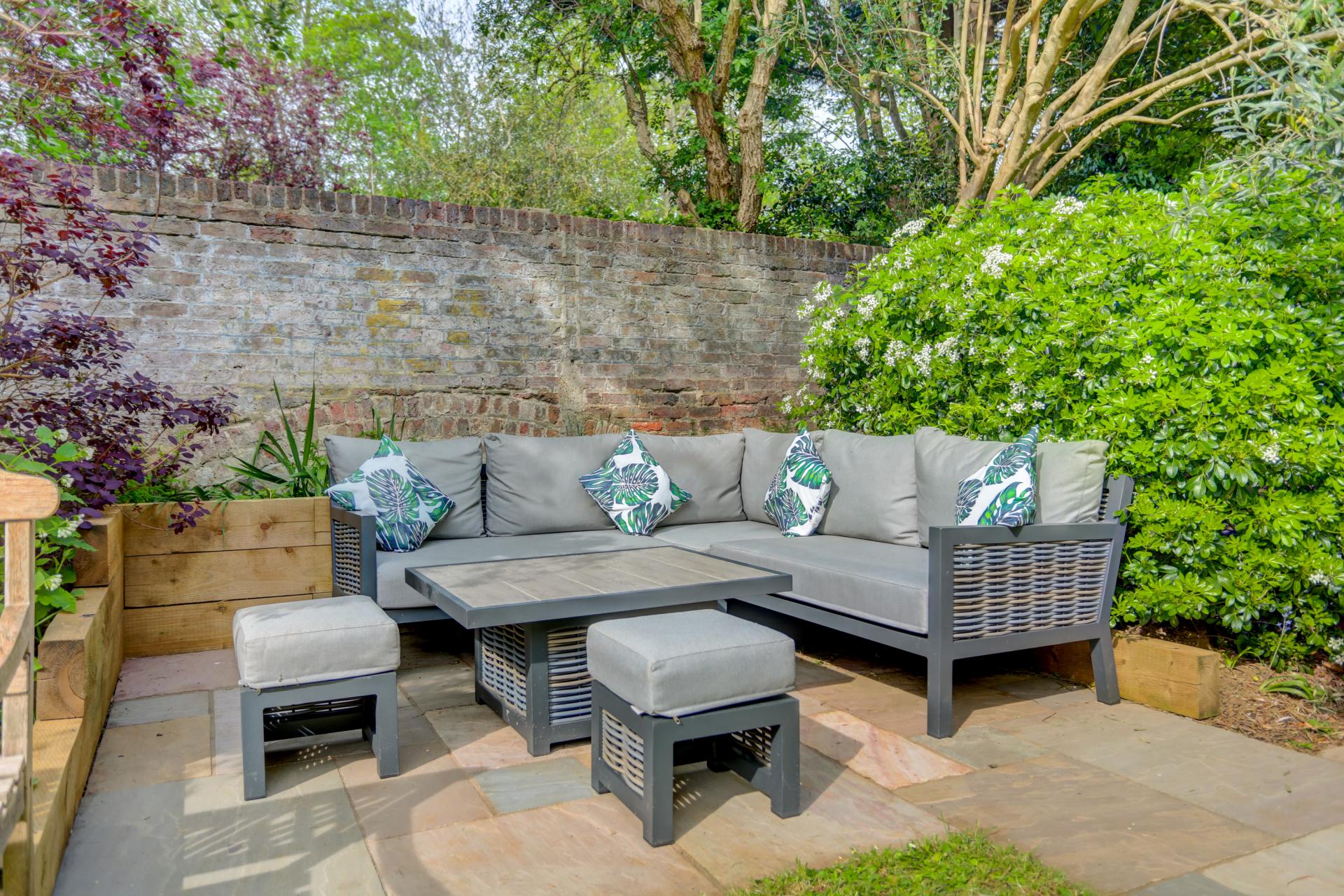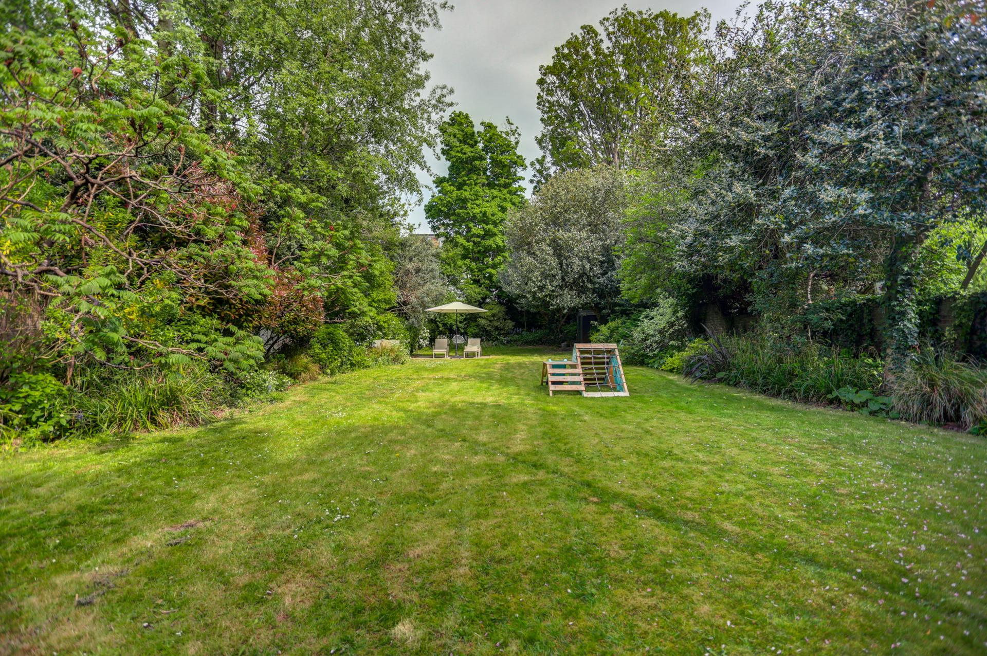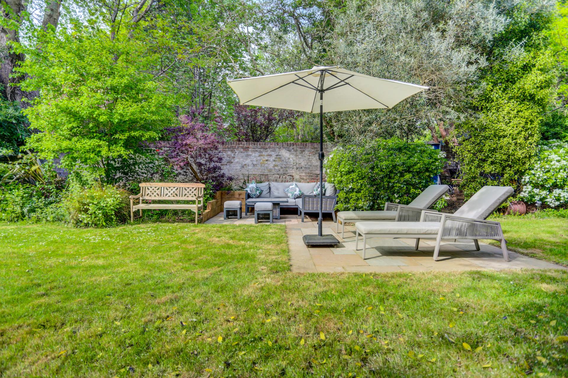 The private walled garden is a rare urban haven. Enclosed by mature trees and flowering shrubs, it delivers year-round interest and seclusion, side access makes bike and leisure activities easy to store and use. Whether lounging on the expansive lawn, dining alfresco or watching children play, this enchanting outdoor space caters to all occasions. At the front of the villa, a dedicated off-road parking space with EV charging port provide practical luxury, underscoring the property’s premier standing.