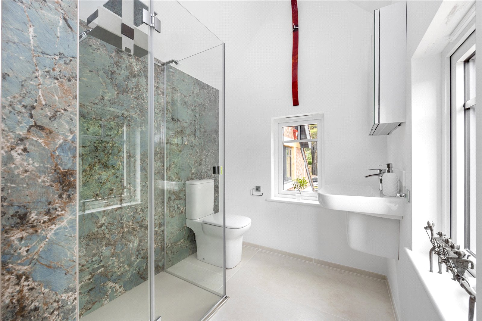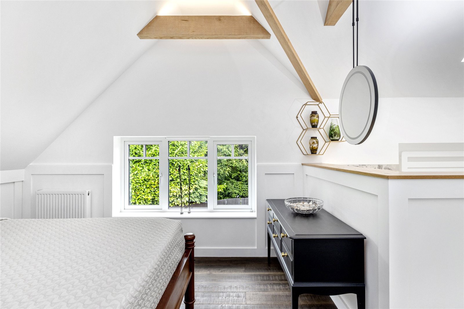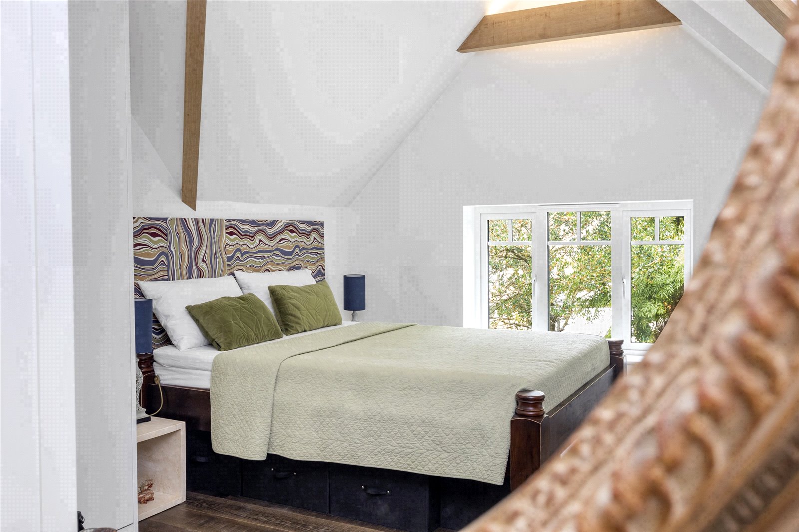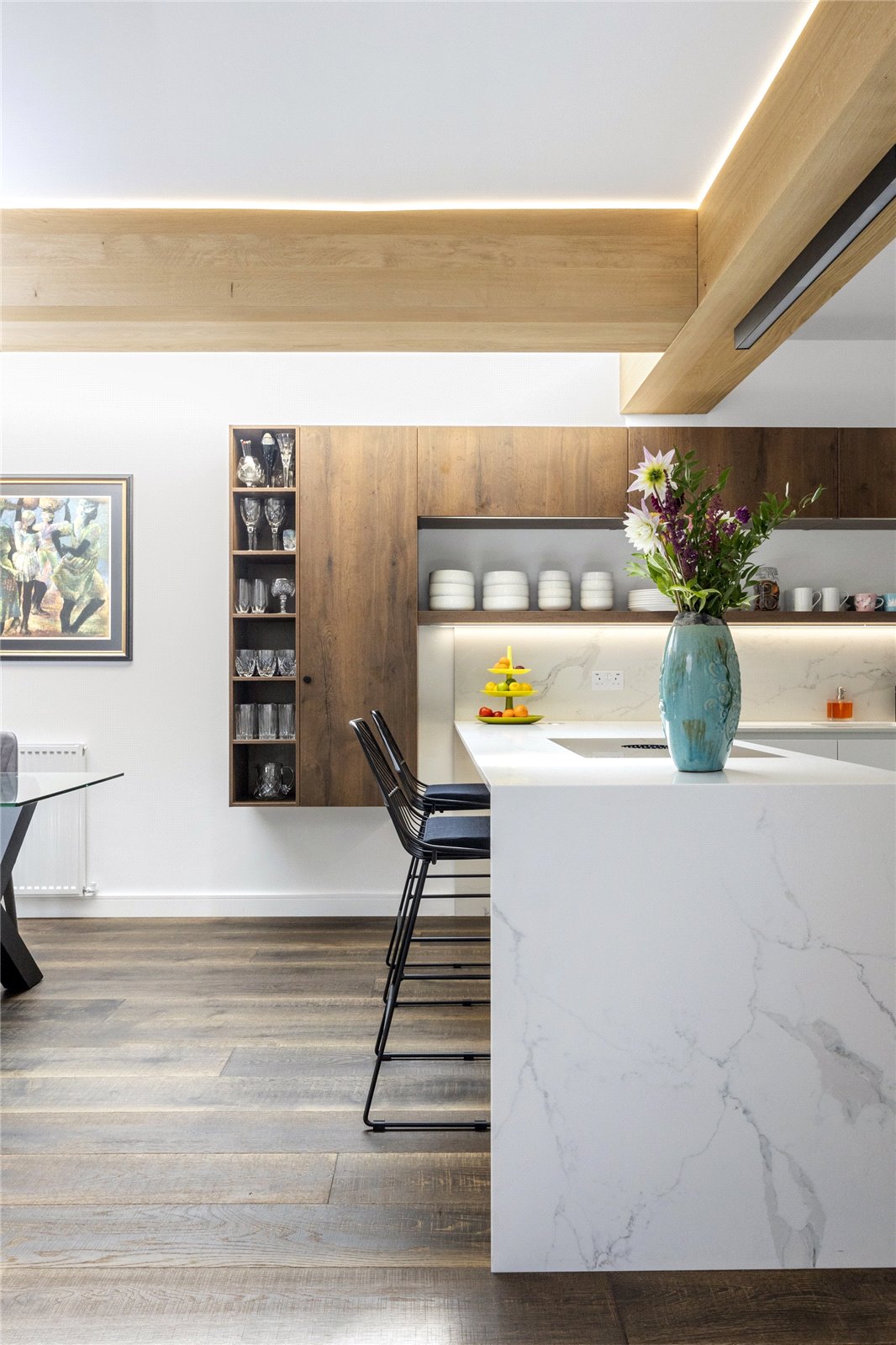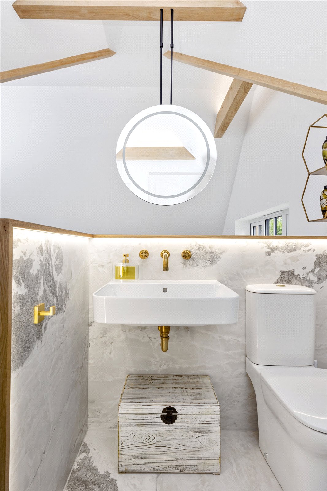 Natural materials feature prominently in the decor of this elegant home; a marble splashback, engineered wood flooring and dual aspect windows and sliding doors truly celebrate the outdoors. Whilst the most remarkable oak beams sit neatly overhead cleverly using concealed lighting to create an inherently tranquil setting.