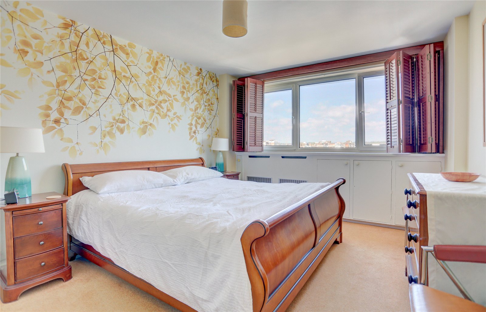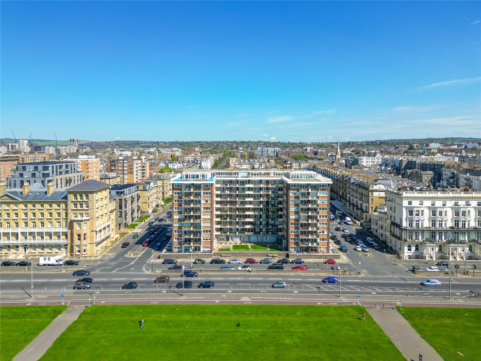 This beautifully presented apartment is set on the sixth floor of a secure and well-managed building. The property boasts a well-organised layout, allowing sea views from the kitchen through to the lounge and rooftop views to the rear. The living room is situated to the front of the property and briefly comprises a large sitting area, a designated dining space (that could be used as a bedroom) contemporary kitchen with plenty of fitted storage, bedrooms are positioned to the rear, all are good sized double rooms and are equipped with fitted wardrobes. The neutral tiled bathroom has a inbuilt bath with showerhead, whilst an additional cloakroom by the bedrooms conveniently situated off the central hallway. The property enjoys an abundance of built-in storage space.