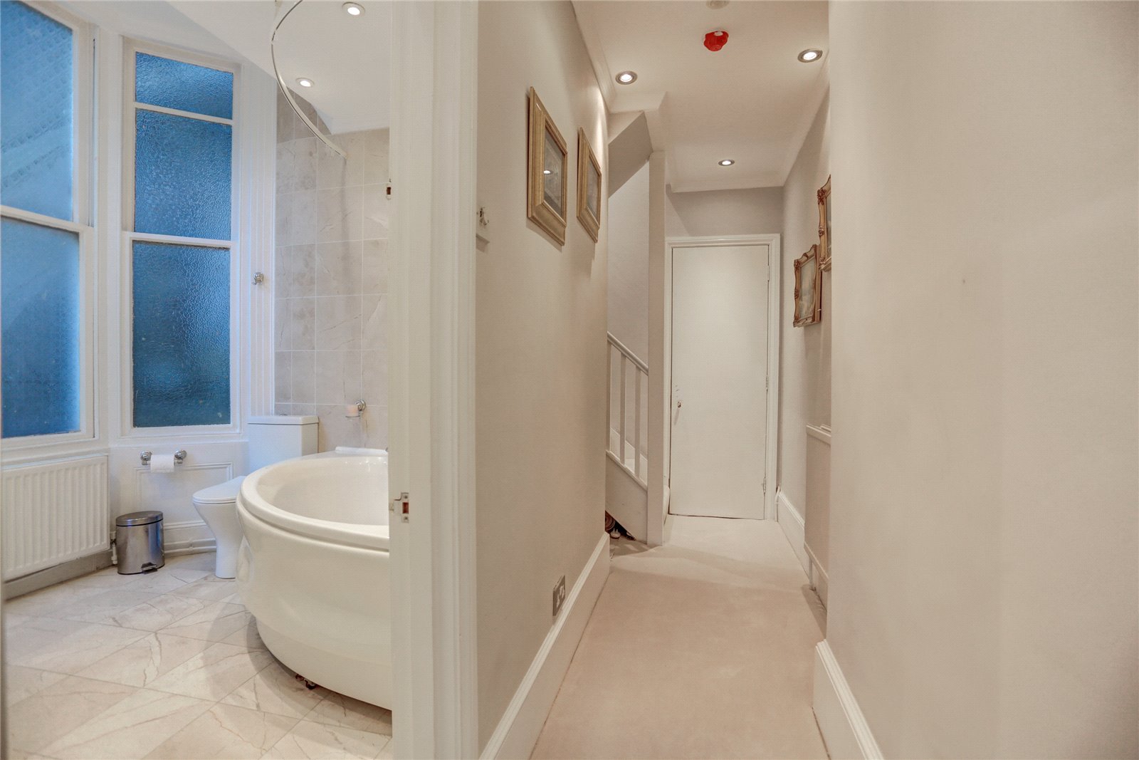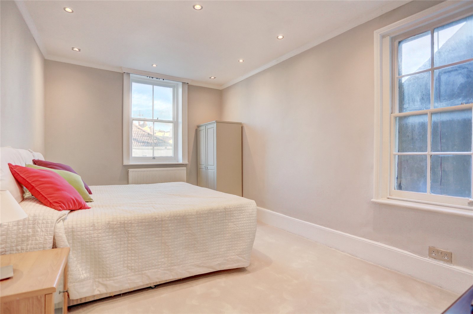On the lower level of the apartment a further well-appointed double bedroom enjoys a quiet positioning and ease of use of the third bathroom. An elegant room with a dramatic arched wall feature, lending the perfect spot to place the bed in front of a curved bay window. Generously proportioned, beautifully illuminated with natural light and with soft neutral décor and carpeting this is the ideal space to really relax and unwind.
