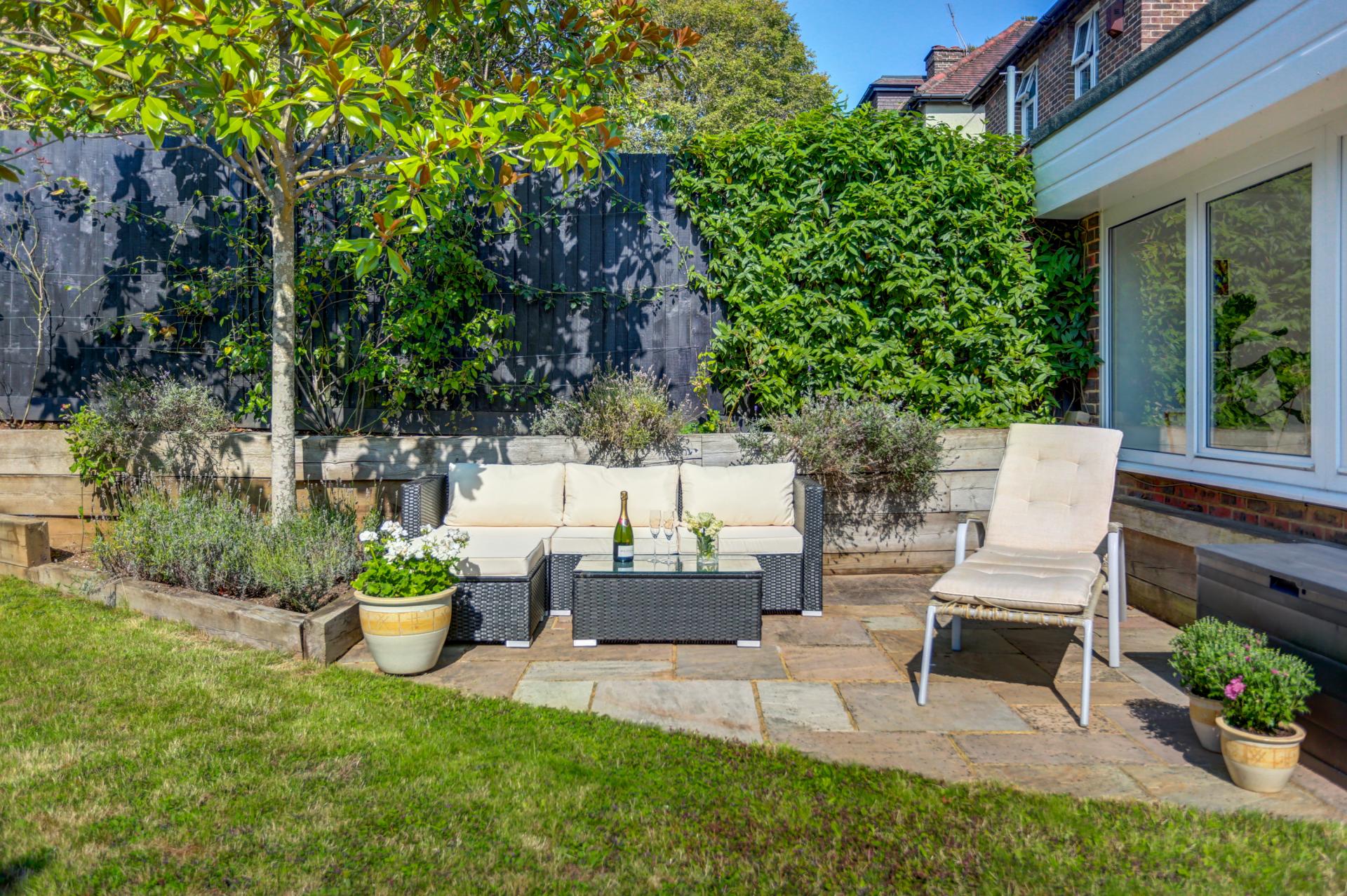 Accessible from multiple rooms, the wrap-around garden grounds the property in lush surroundings. Mature borders and expansive lawns create a private retreat for relaxation and play. At the rear, a decked terrace provides the perfect setting for outdoor dining and summer entertaining.