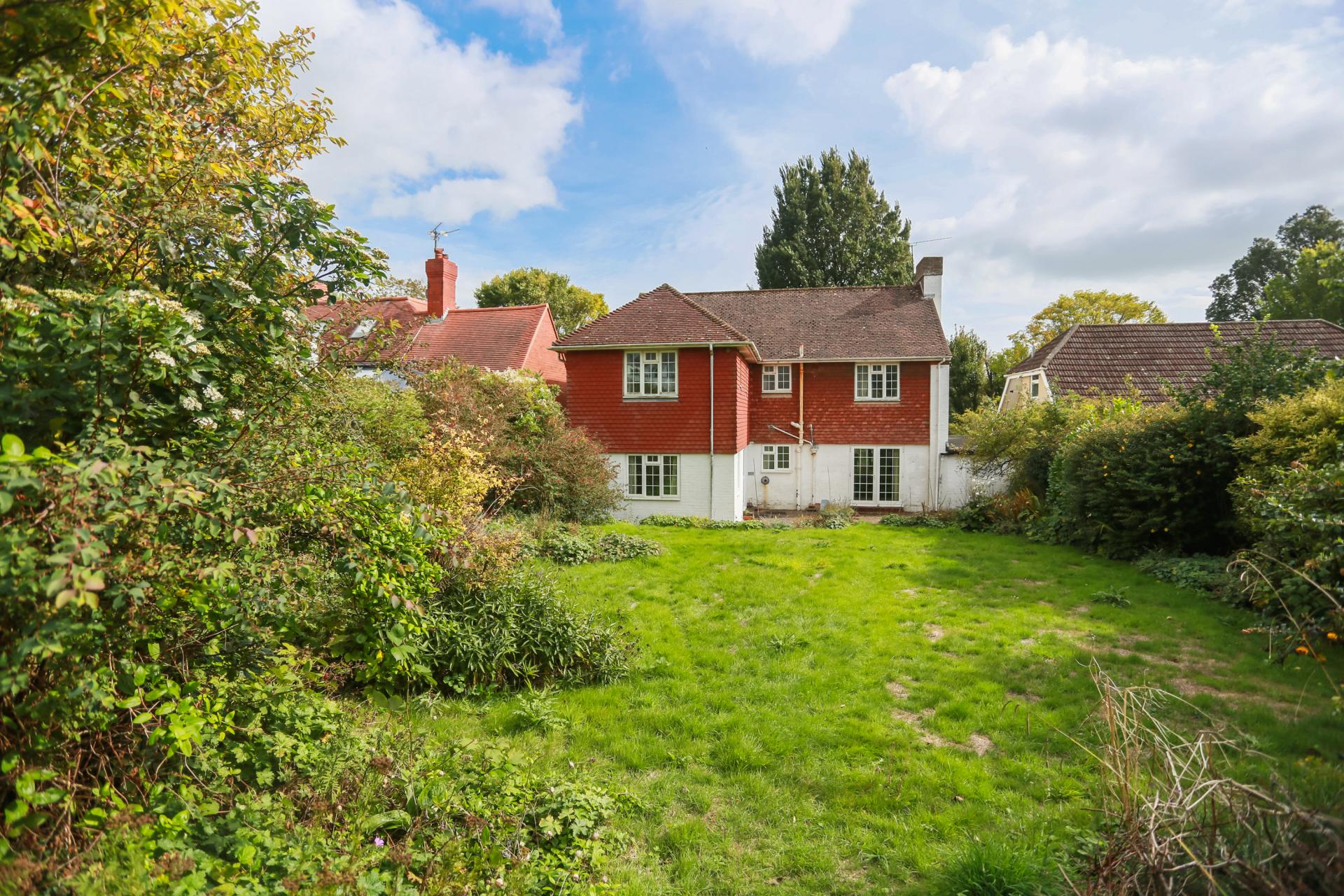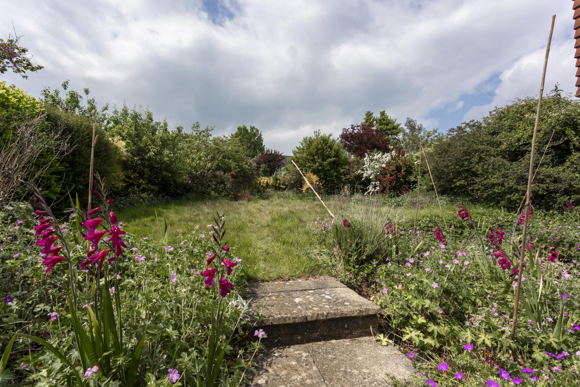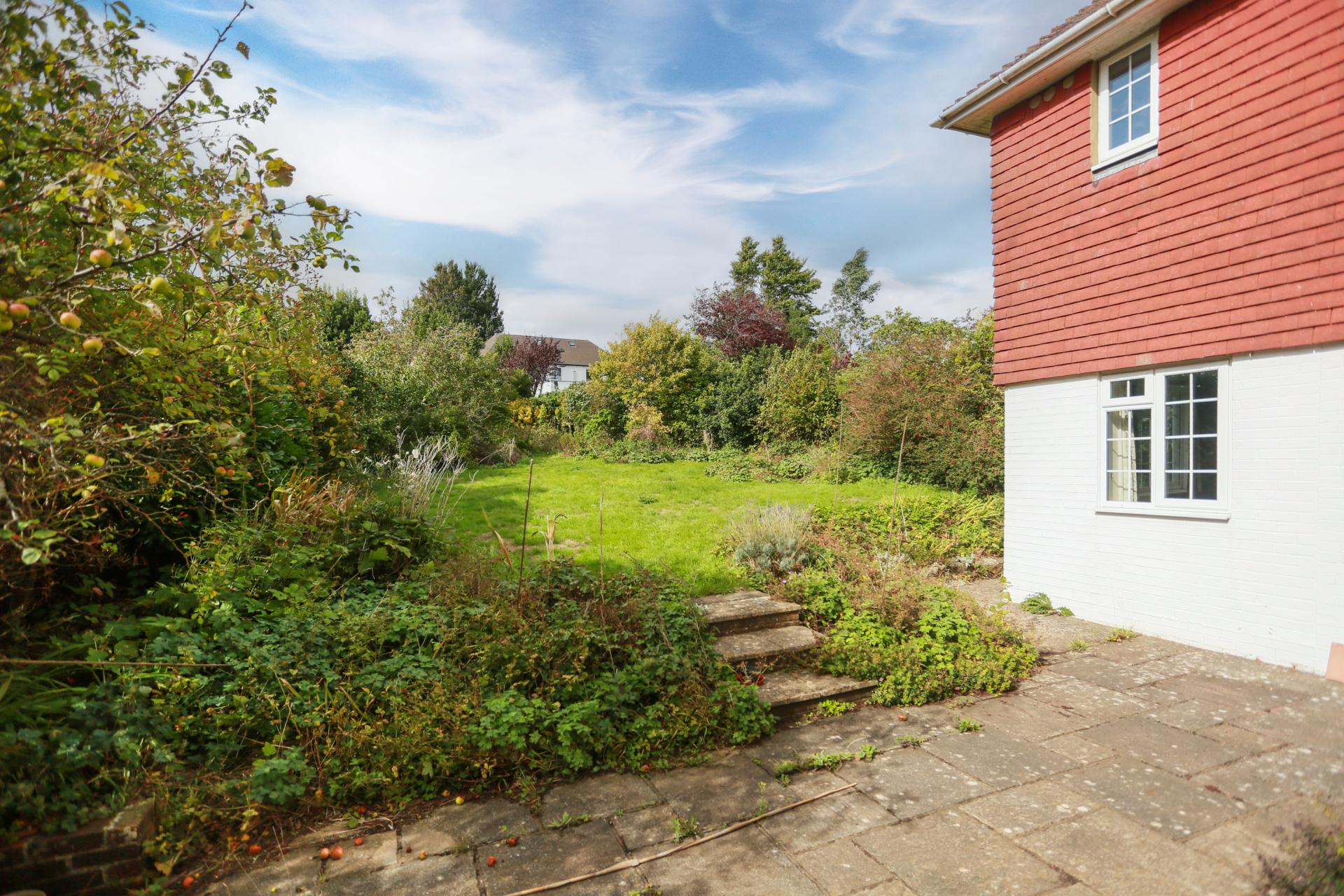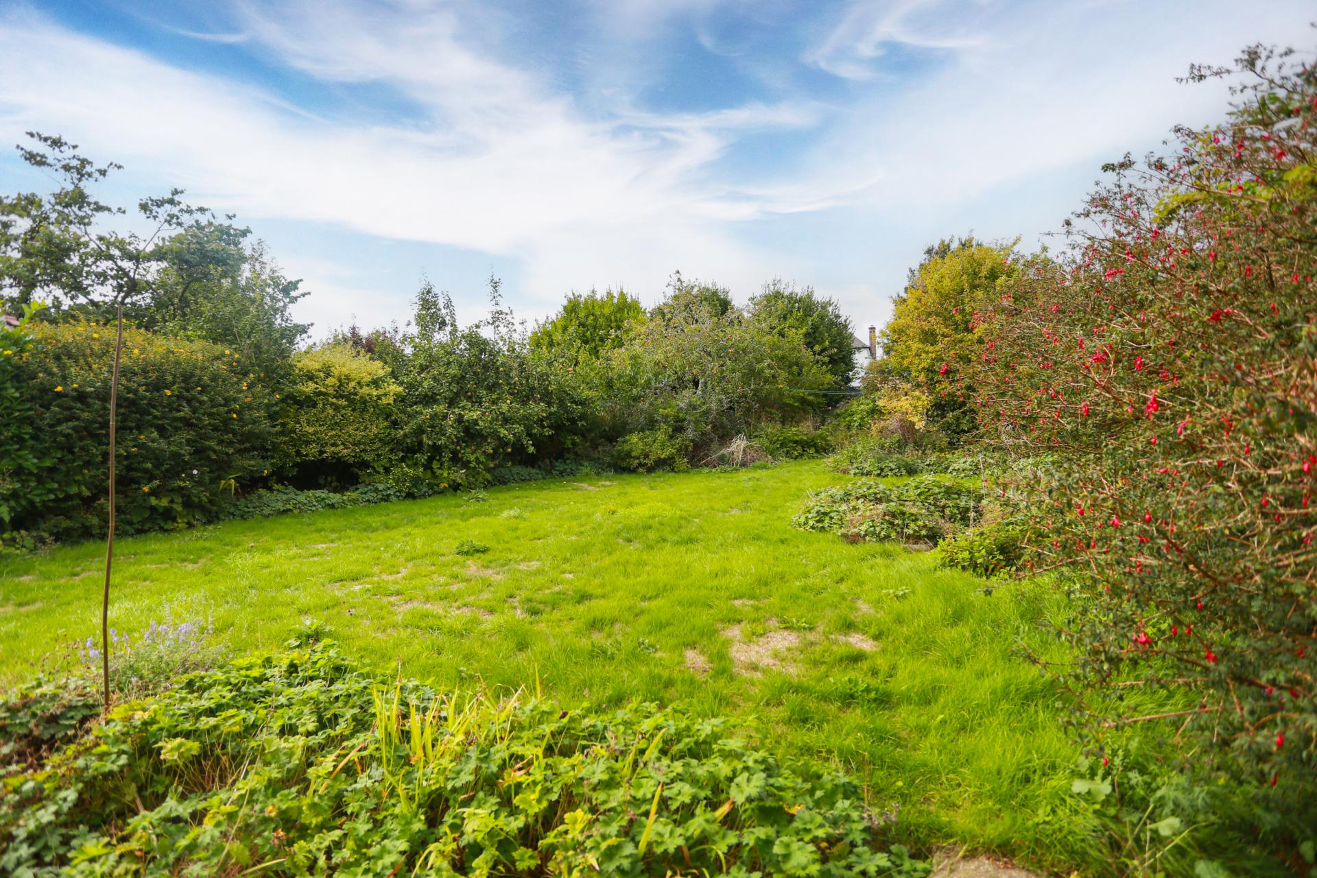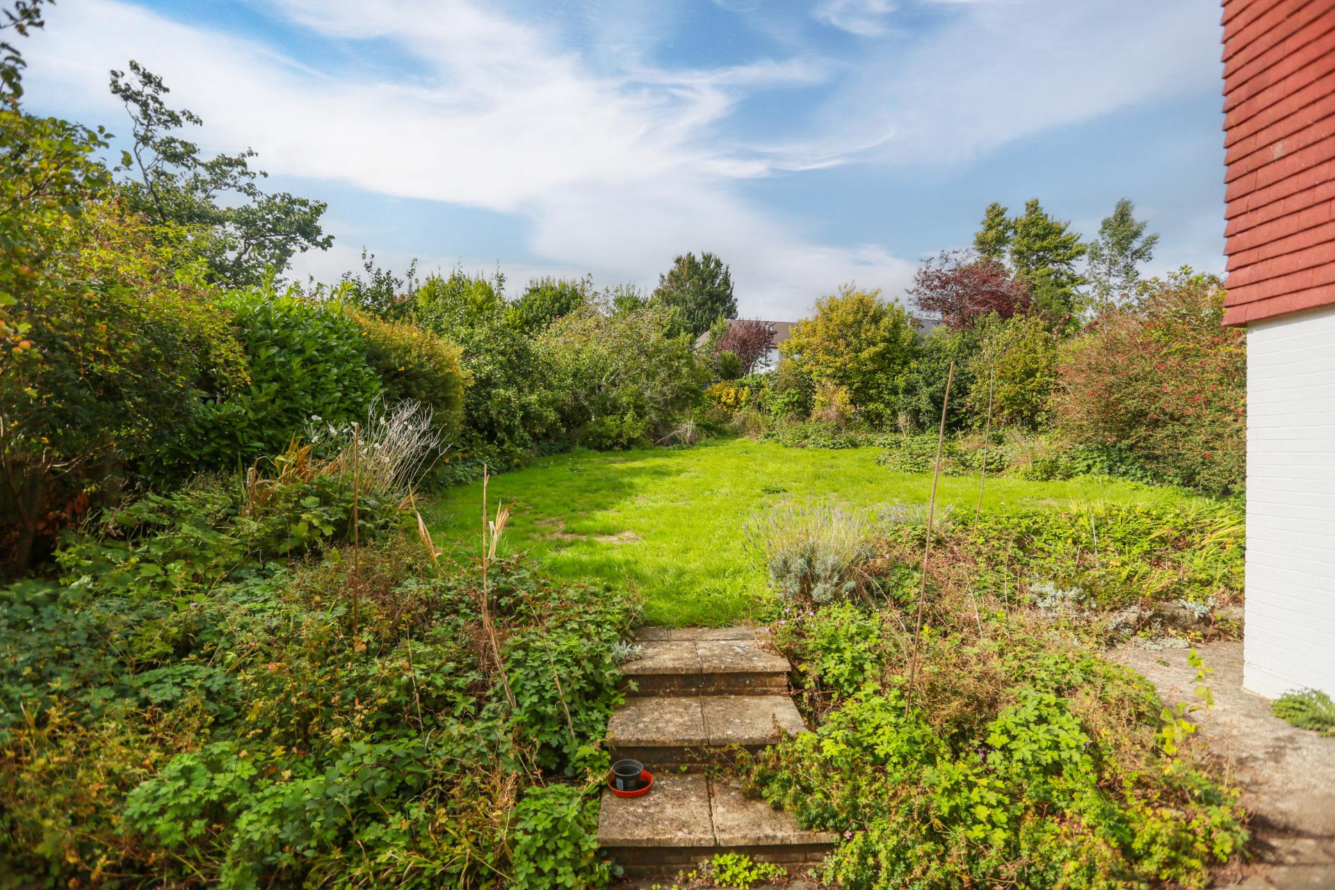 A large, west facing rear garden is currently accessed from the dining area or the living with established shrub borders for complete privacy and peace. A large lawn, bordered by established shrubs, offers complete privacy and peace.
