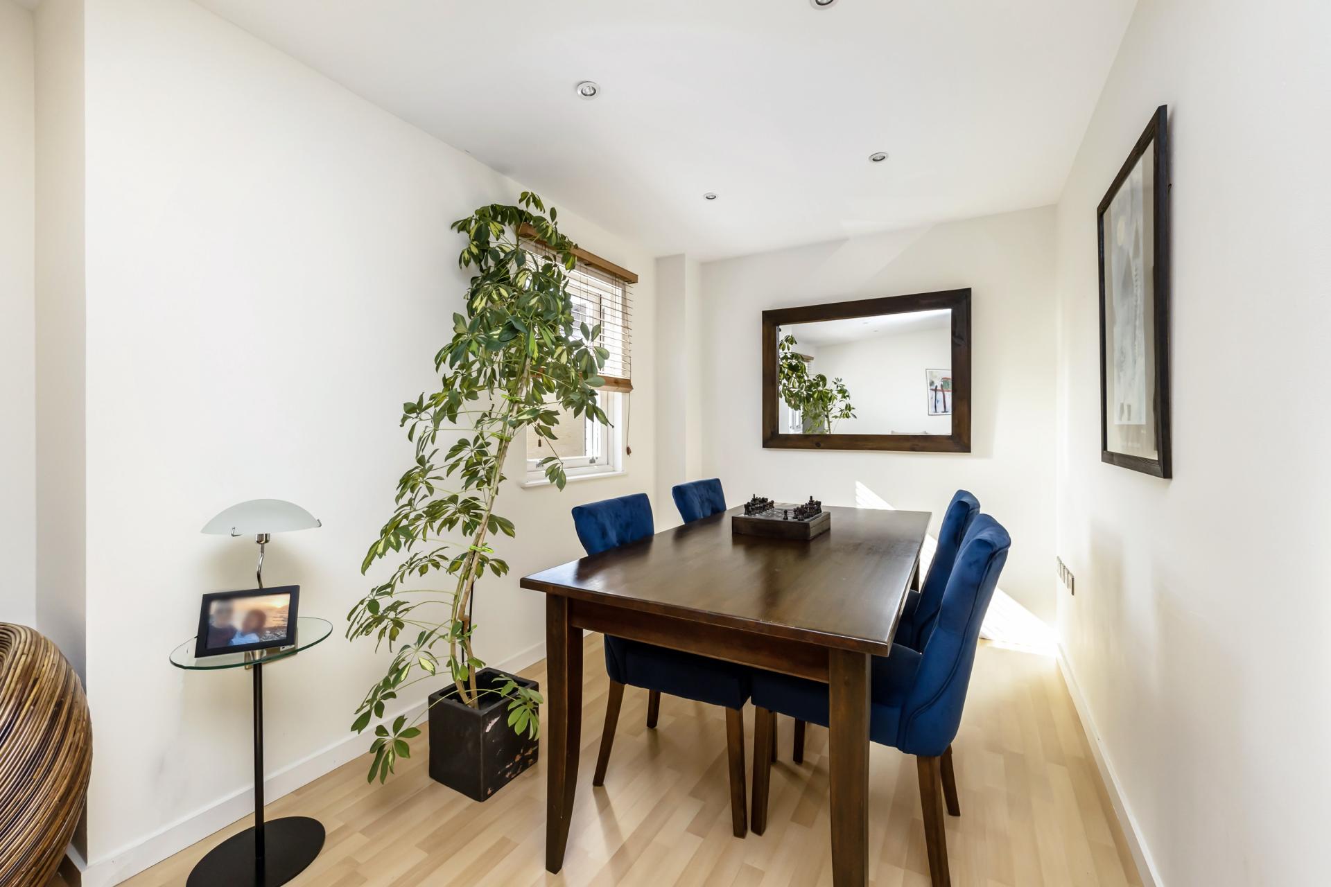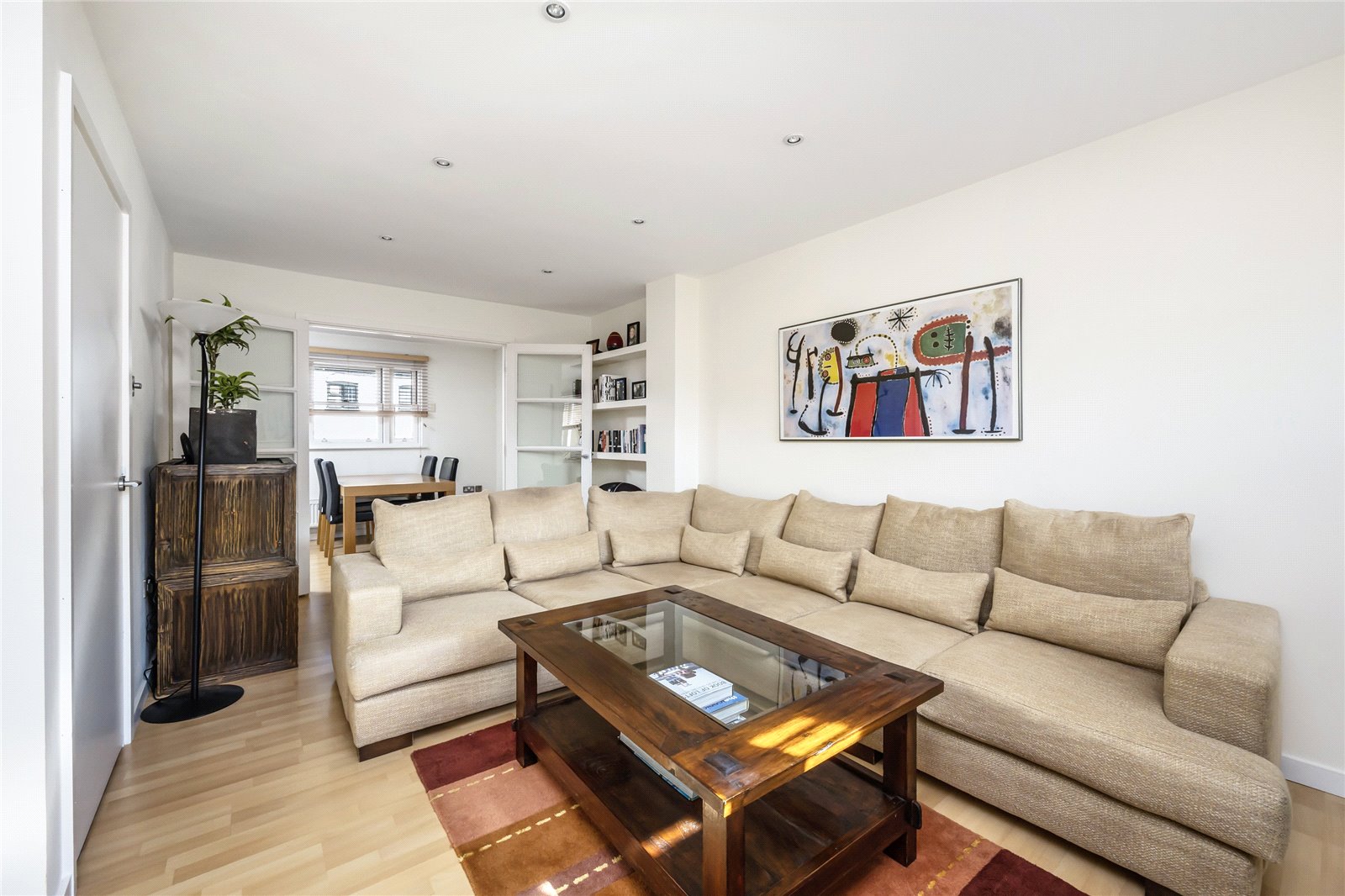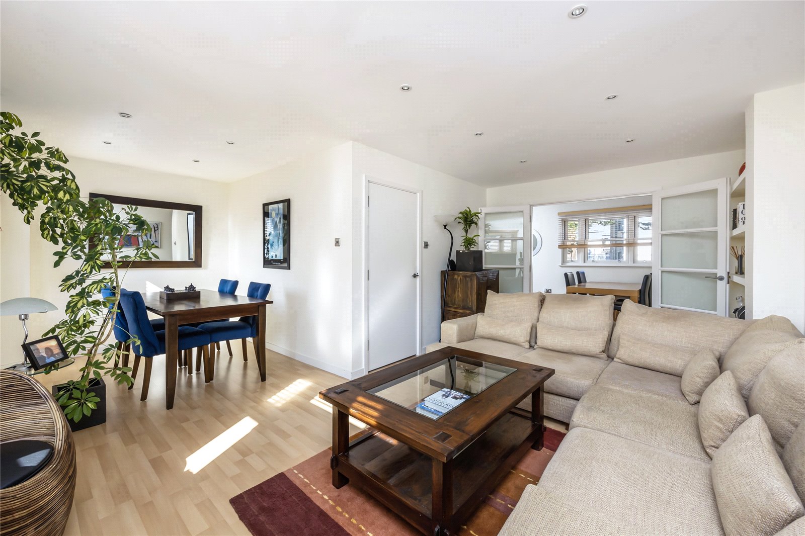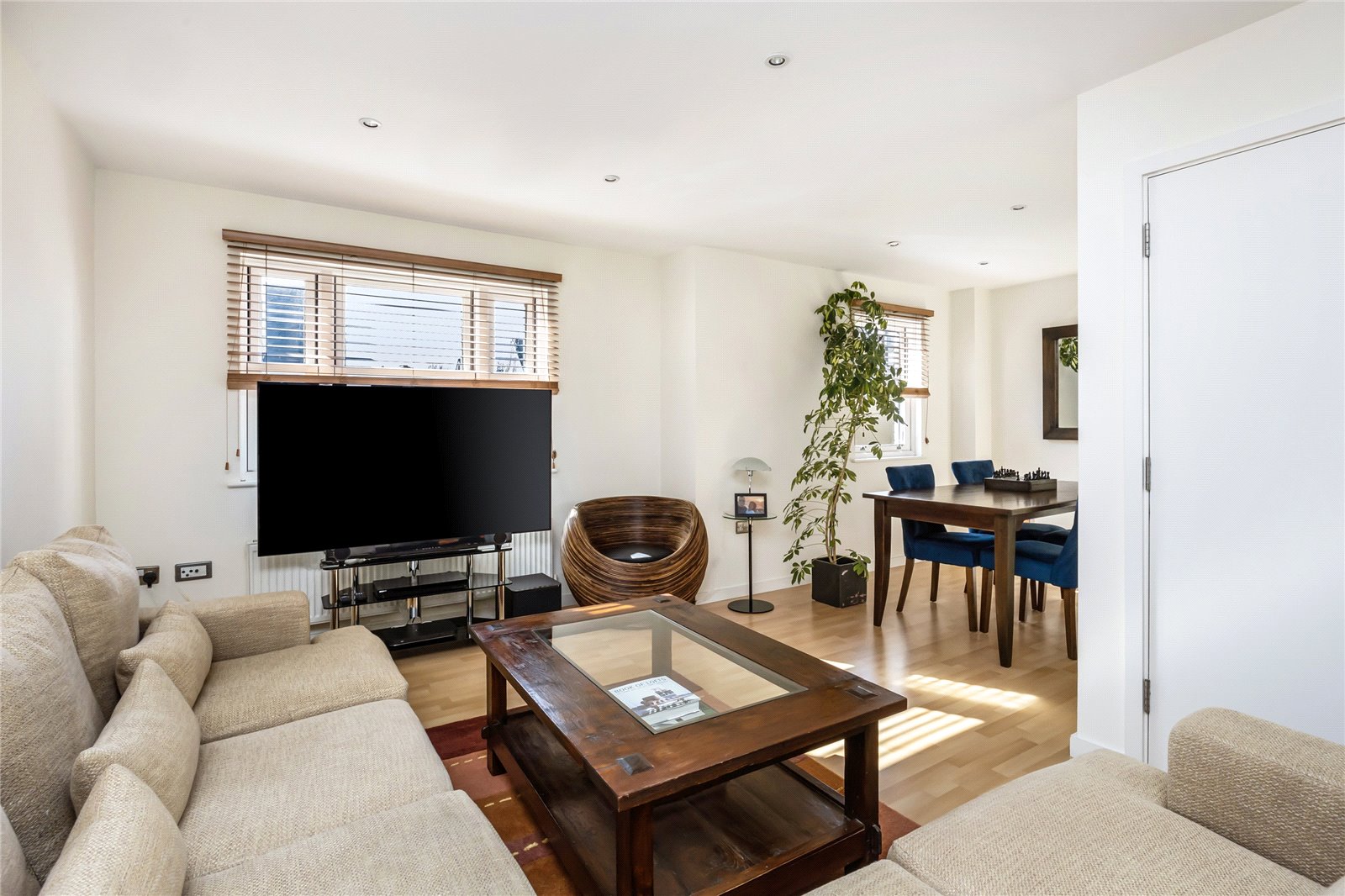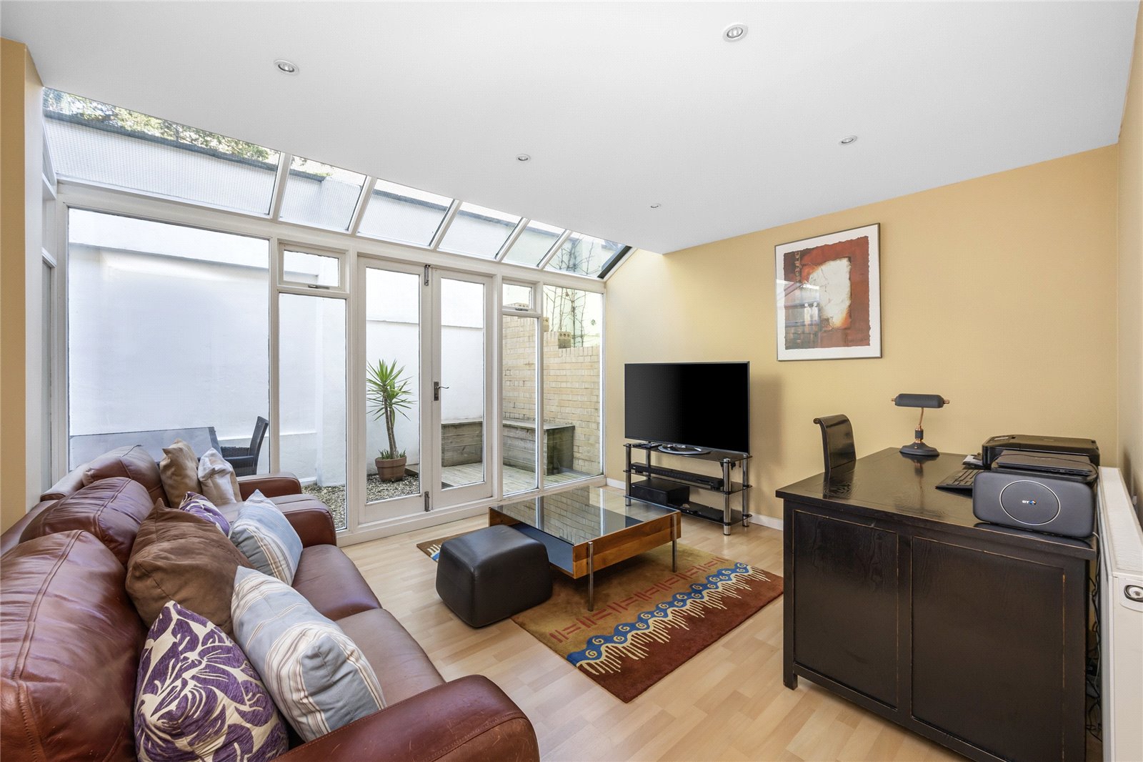 Upstairs, a spacious wrap around living room flows through French doors into the dining and kitchen areas, creating an open yet subtly divided space thatÂ’s perfect for relaxing after meals. From the first floor lounge, enjoy pleasant views down the mews. The kitchen is fitted with modern white gloss cabinetry with chrome handles, offering ample storage both above and below counter level.