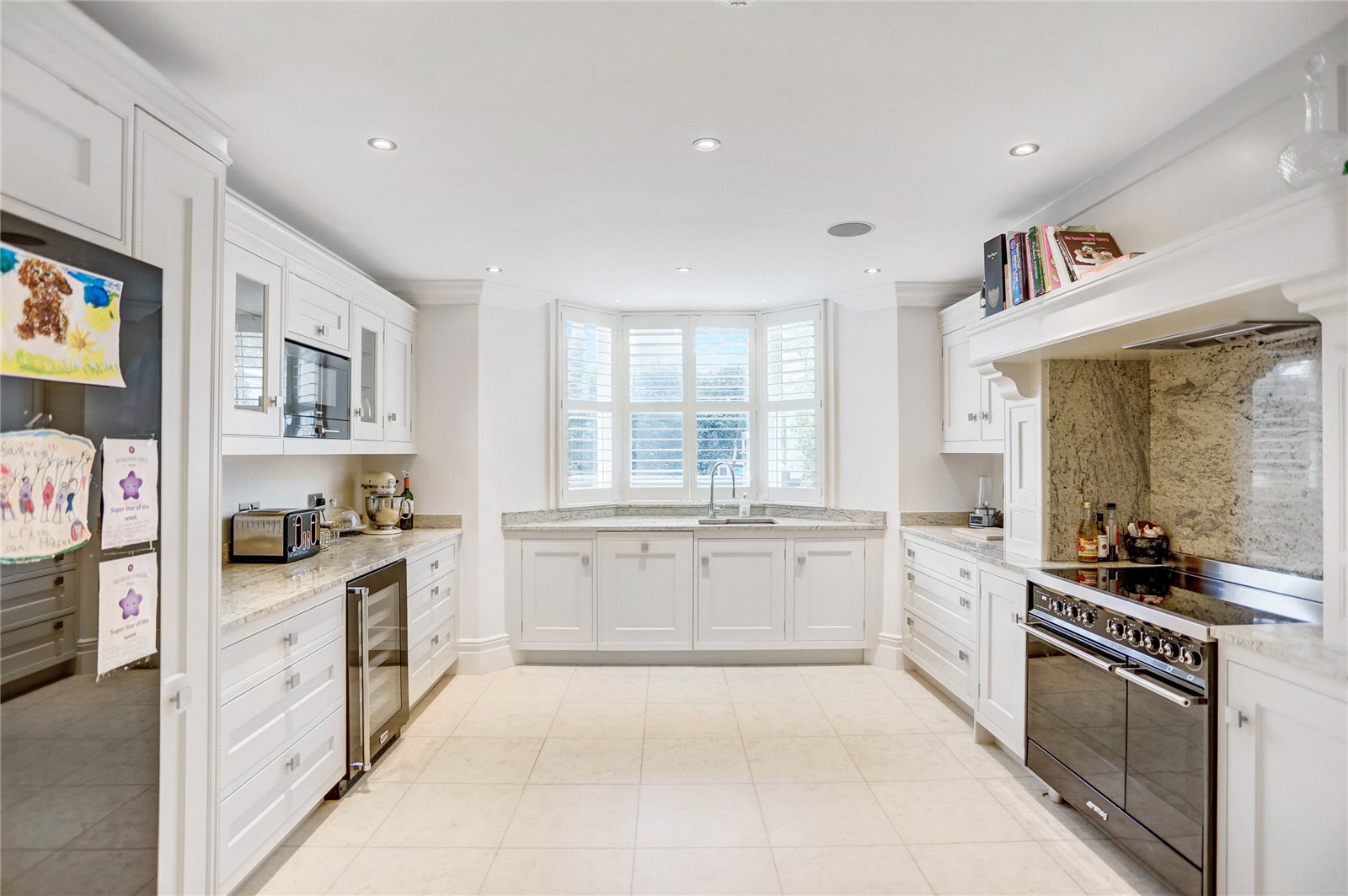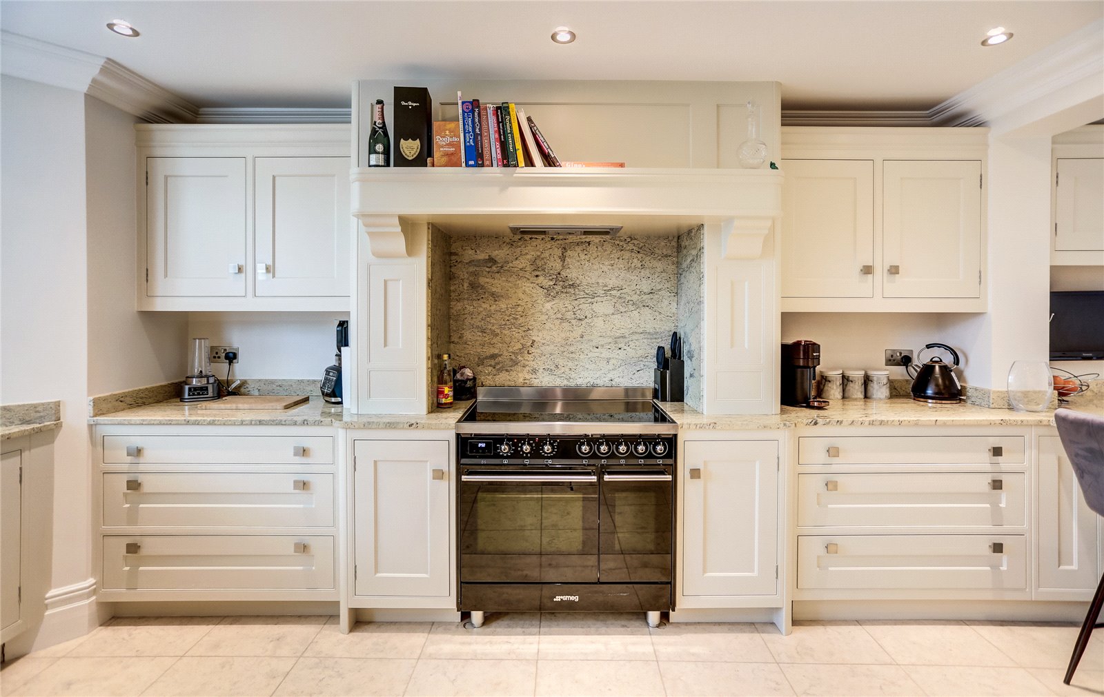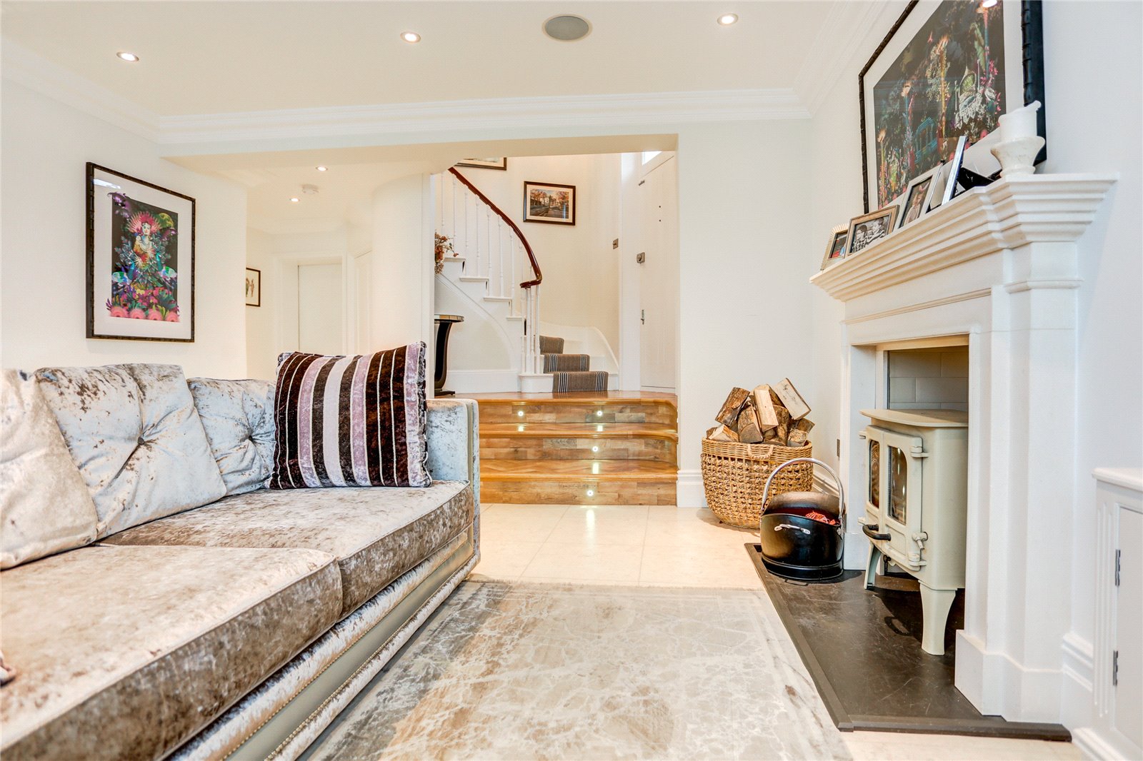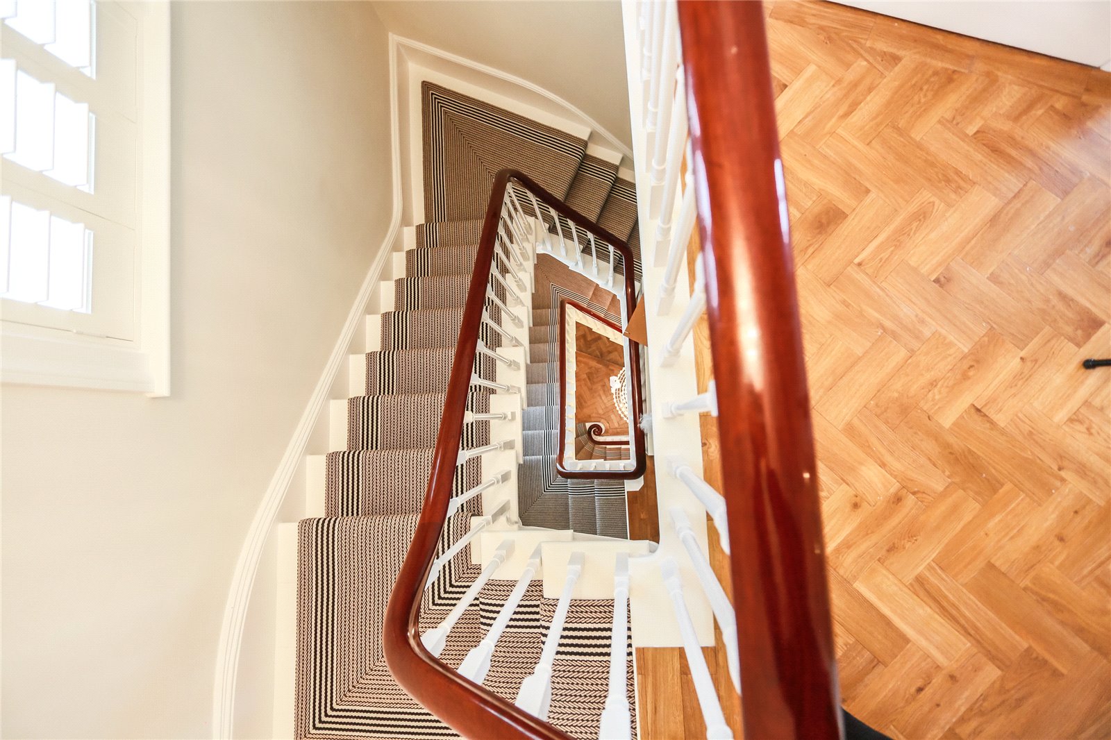 Continuing to the second floor, there are a further three double bedrooms. Each room has thoughtfully arranged built-in cupboards and storage areas and make the most of natural light. This floor also boasts a family bathroom with a free-standing bath.
