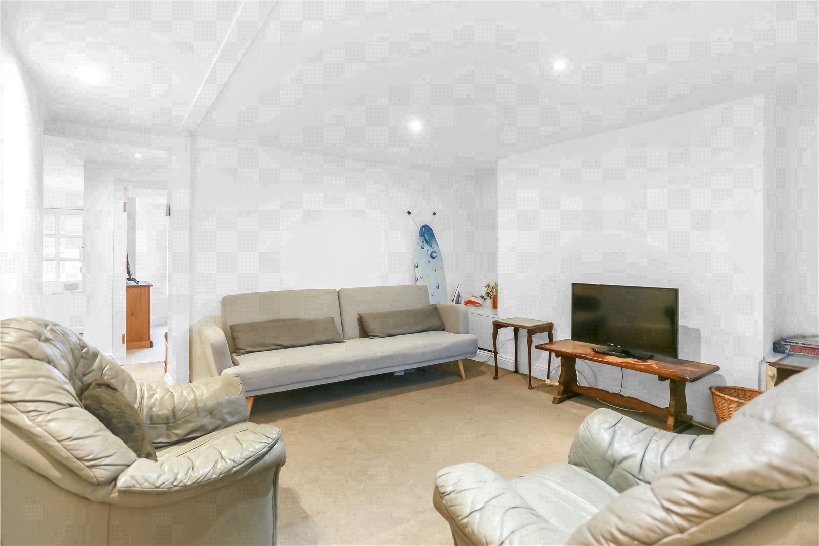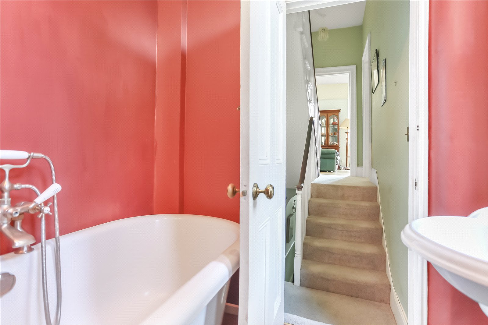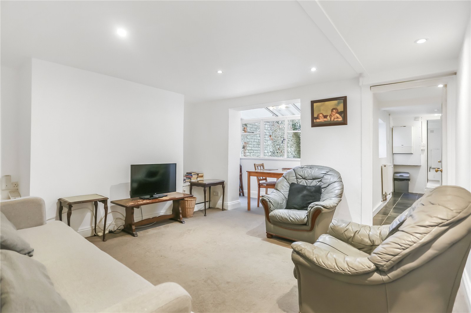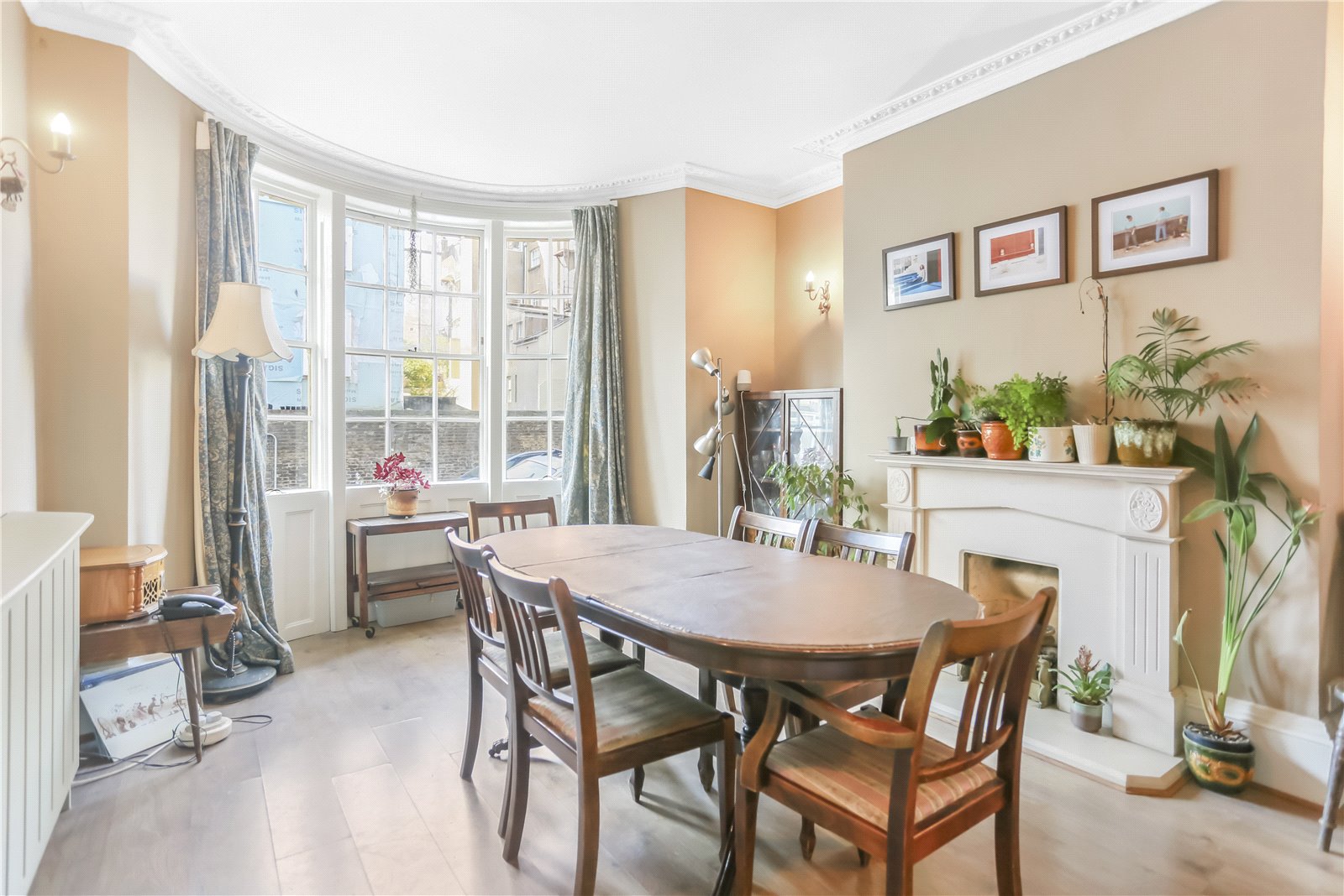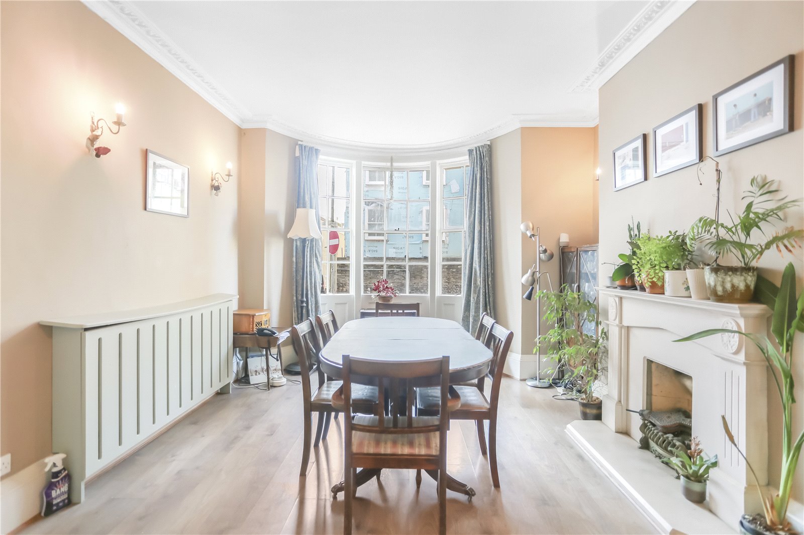 The ground floor boasts an open plan kitchen and dining room, overlooking the courtyard patio below. The bow fronted, south facing dining area ensures the space is bathed in light throughout the day. A practical utility room at the rear keeps daily household tasks separate from the living areas, maximising space. A staircase from this area leads to the lower ground floor apartment, which can be secured and made into an independent living space as and when the need arises.