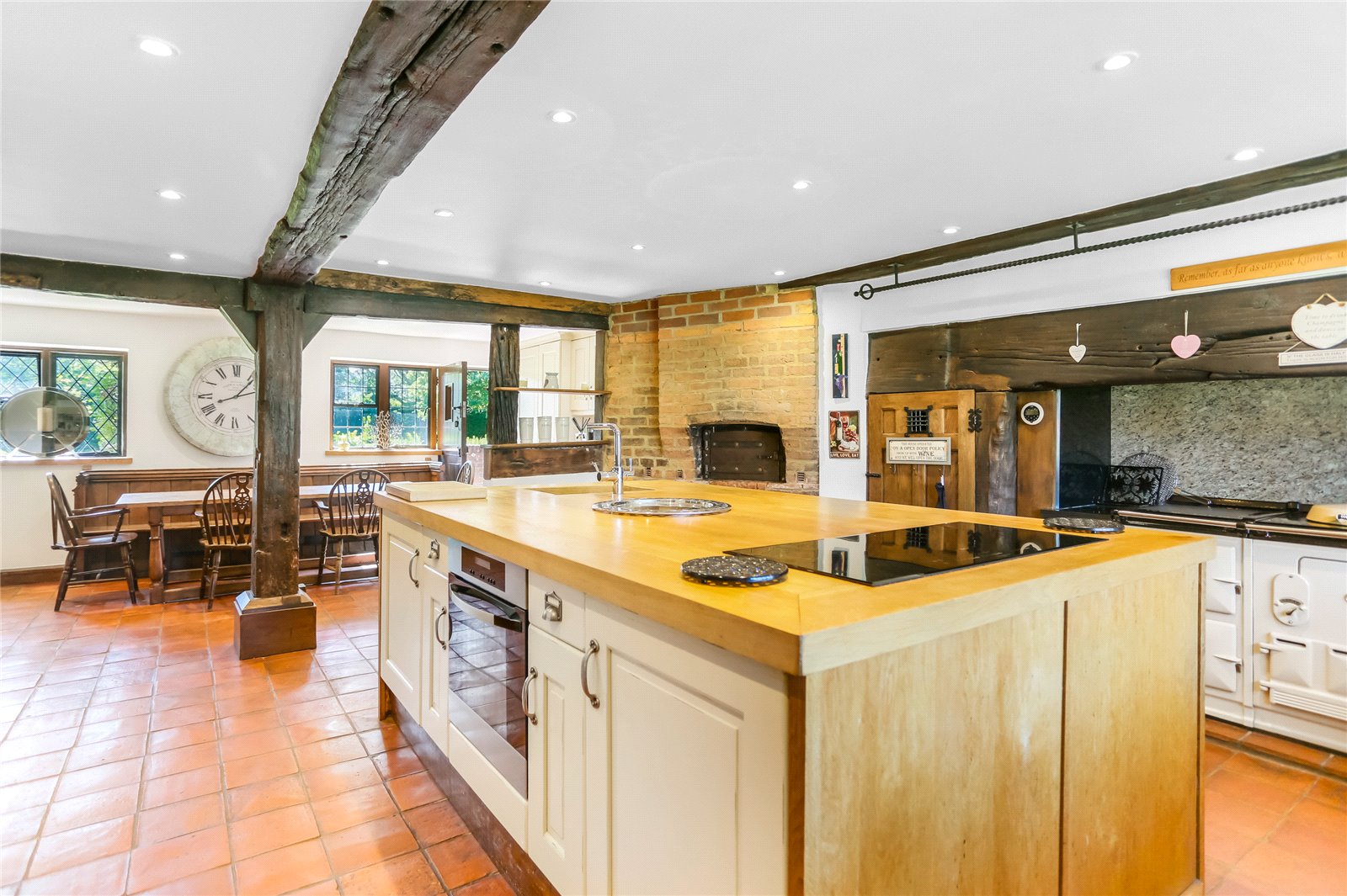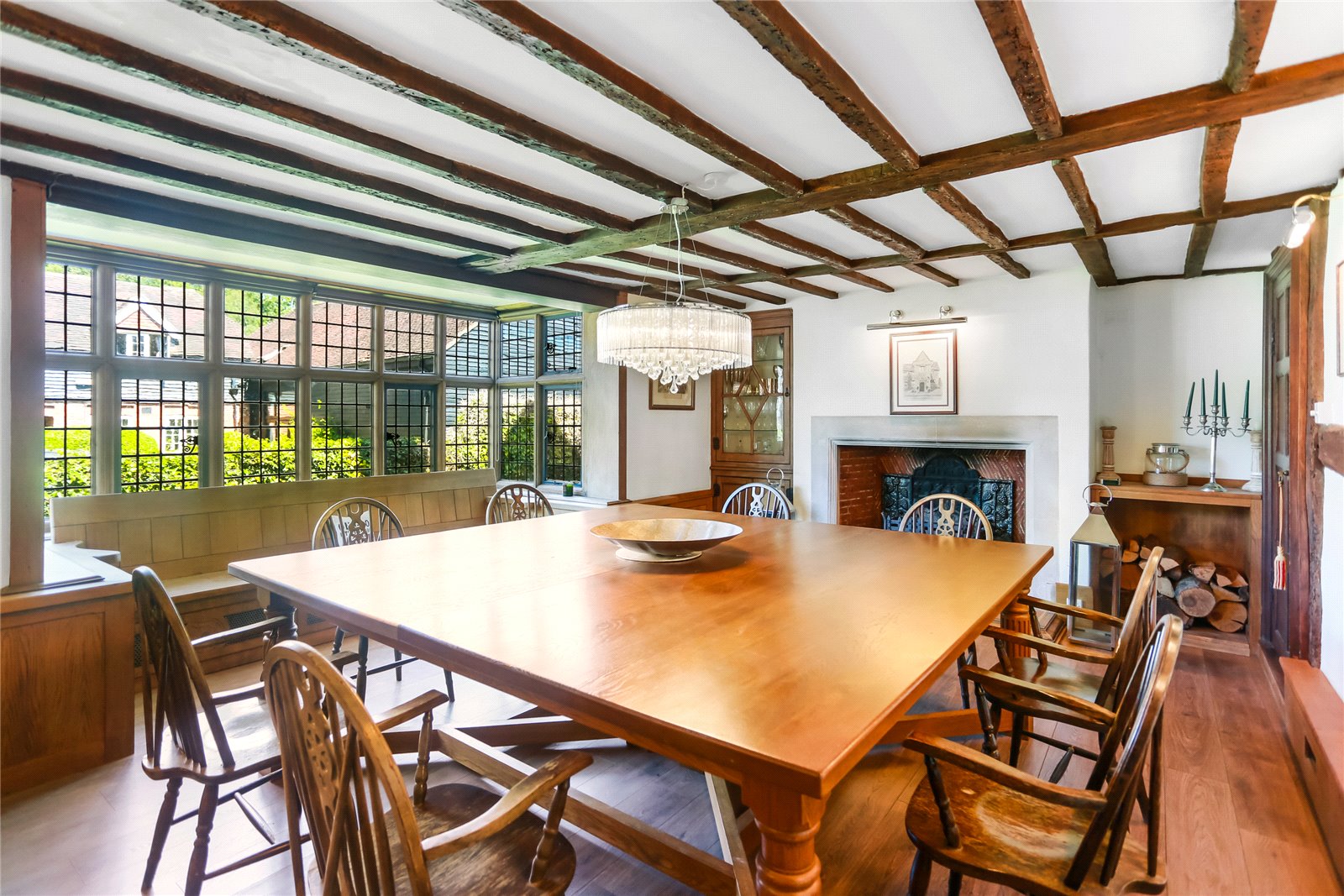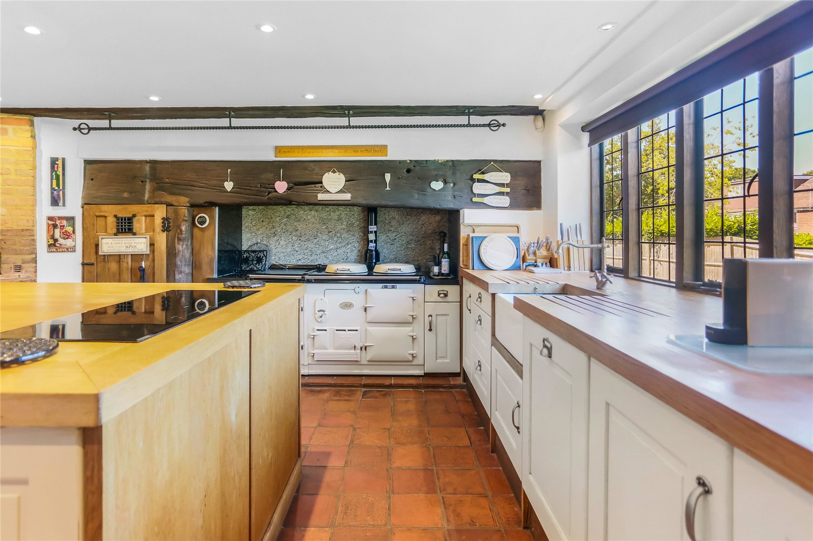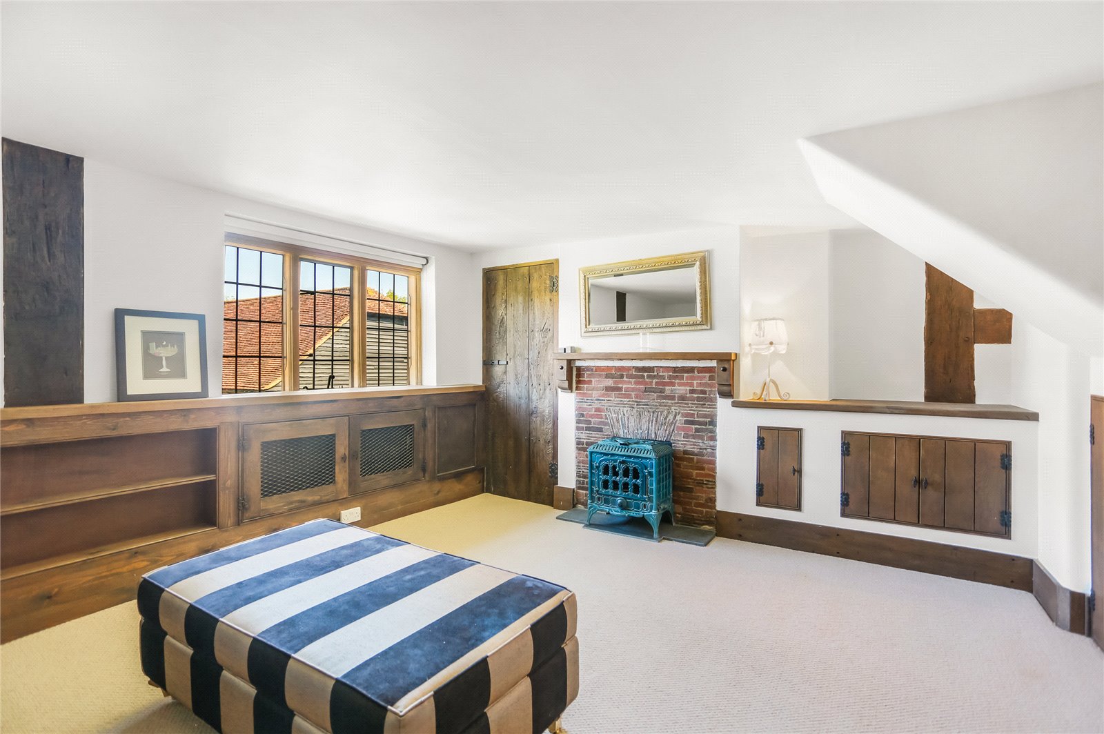 A separate study offers an ideal workspace for those who work from home. The house is rich in period features, including exposed timbers, original doors, and leaded windows.