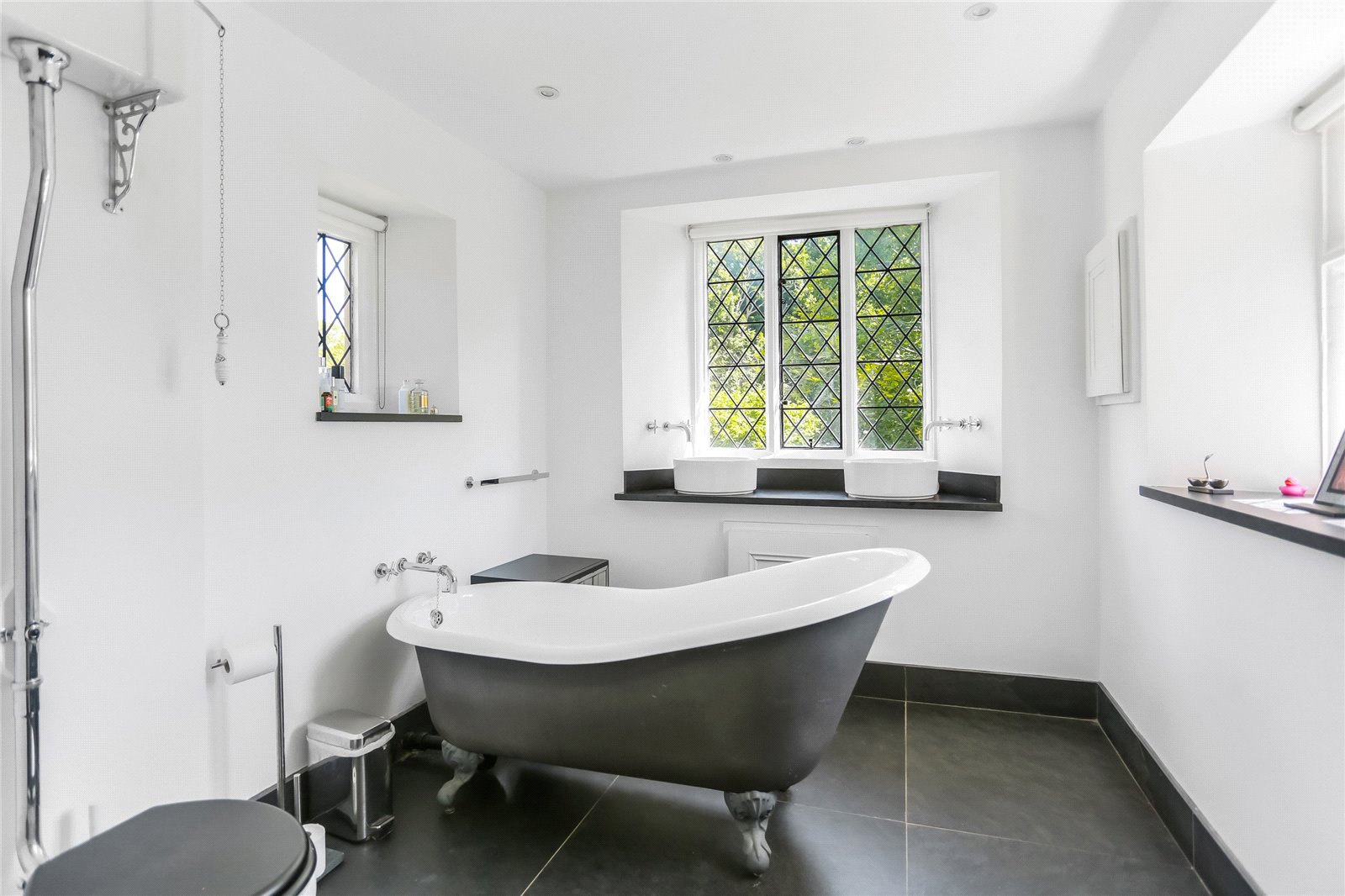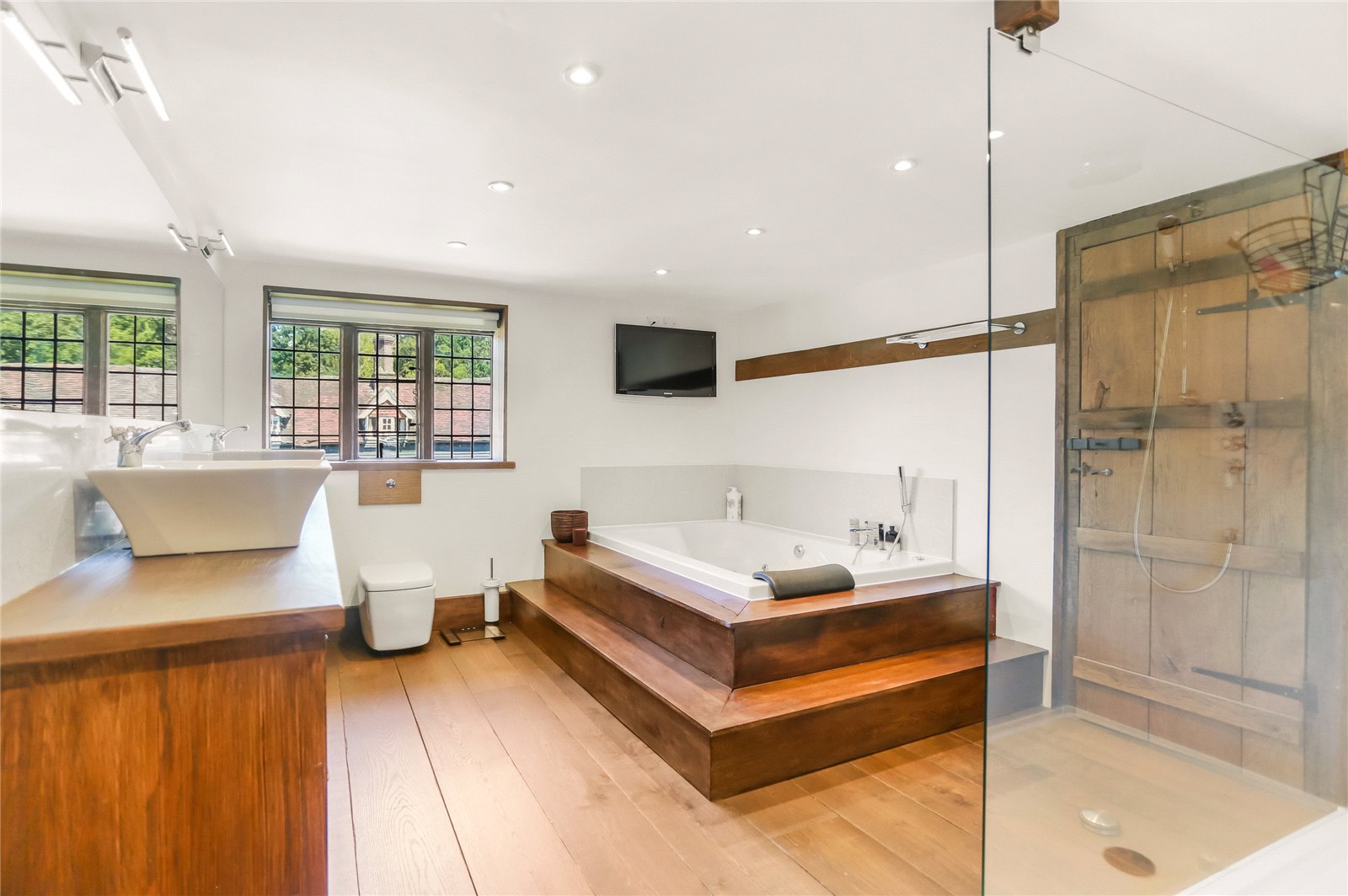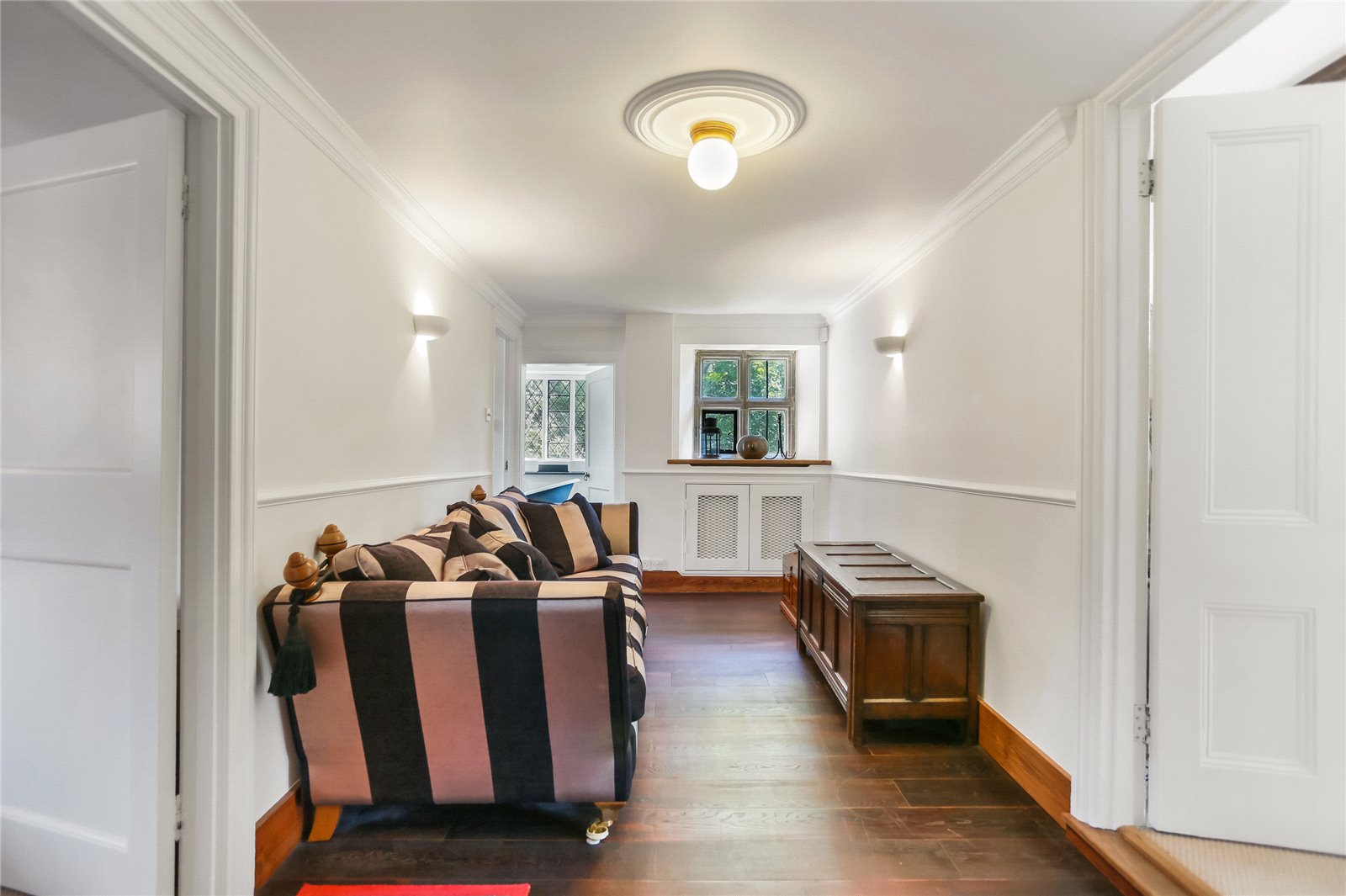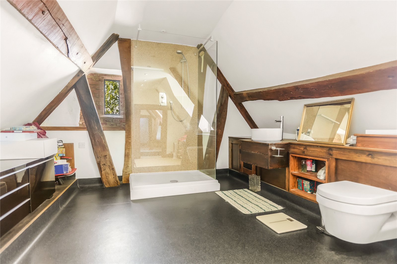 A separate study offers an ideal workspace for those who work from home. The house is rich in period features, including exposed timbers, original doors, and leaded windows.