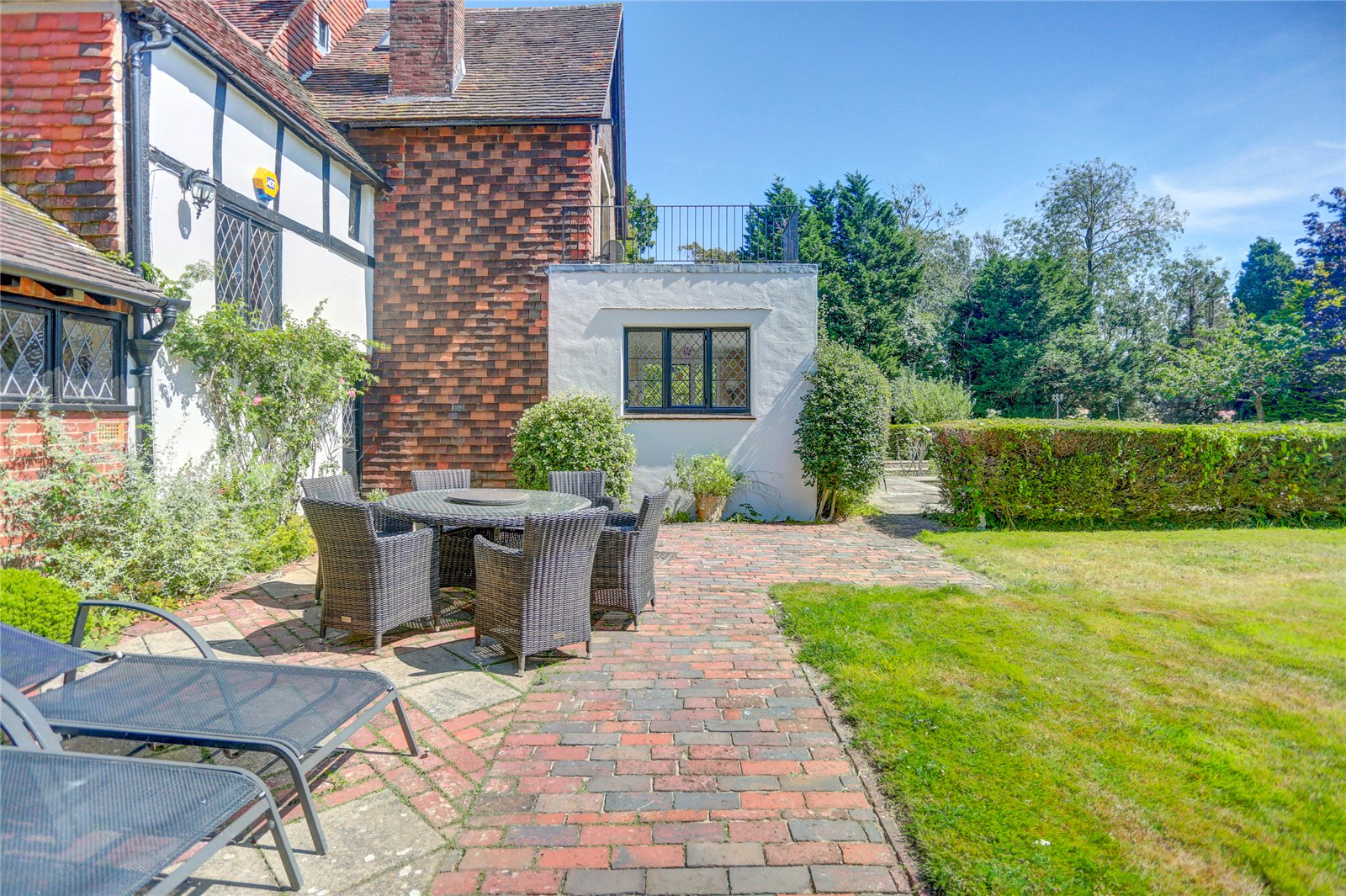 Hammonds Place is situated on a desirable 1.3-acre plot, with the main gardens facing south, ensuring sunlight throughout the day. A paved terrace provides an ideal spot for alfresco dining or morning coffee, and the expansive lawns are perfect for children to play. The formal rose garden is a standout feature, so much so that it is included in the house's Grade II listing.