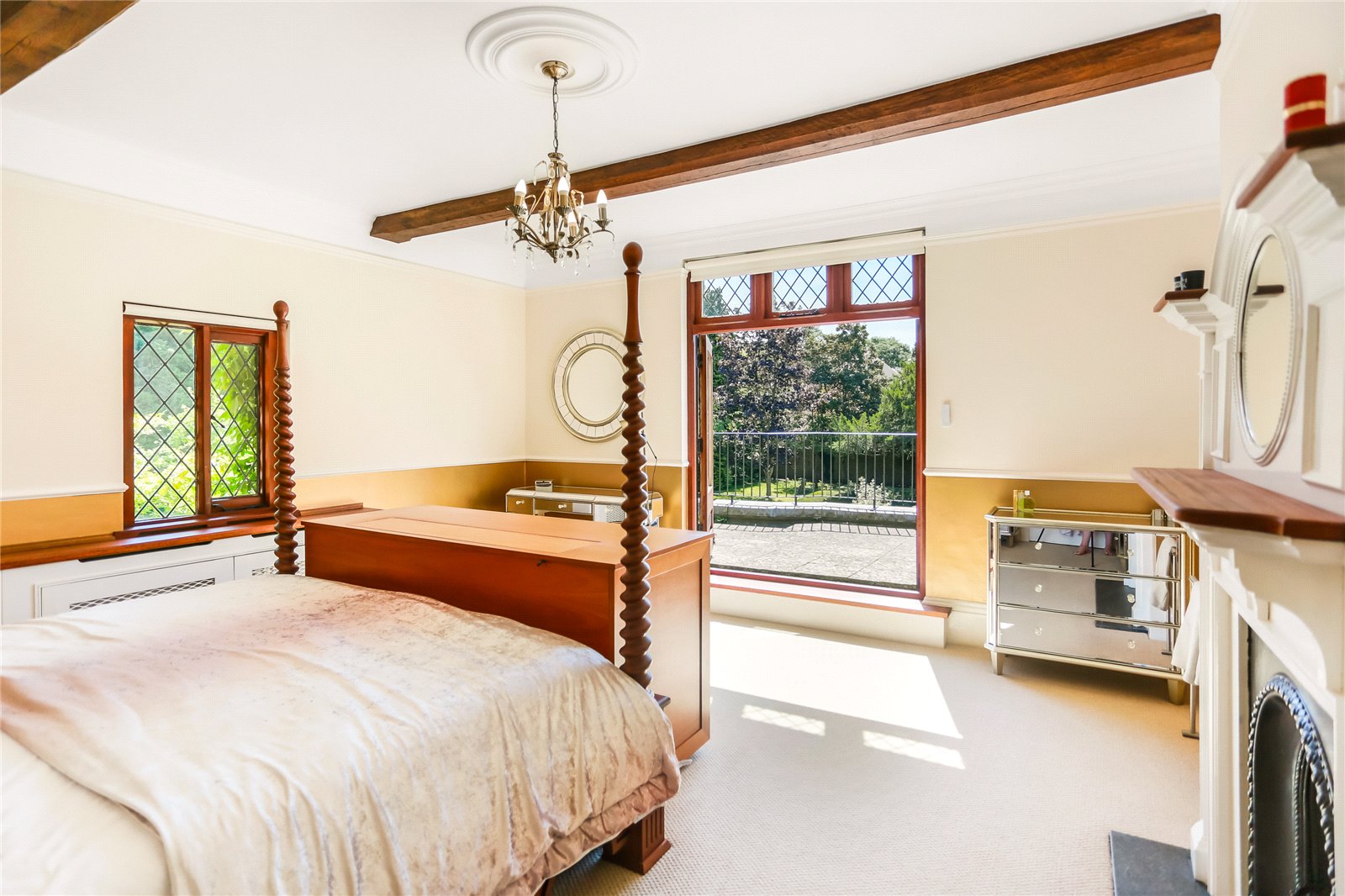 Two more double bedrooms are located nearby, sharing a contemporary "Jack & Jill" bathroom with an oversized jacuzzi bath and walk-in shower. The second floor offers two additional large bedrooms. The fifth bedroom is effectively divided into a sleeping area, dressing room, and ensuite, making it perfect for a teenager. The sixth bedroom is an impressive 25-foot space with a 16-foot open-plan ensuite area.