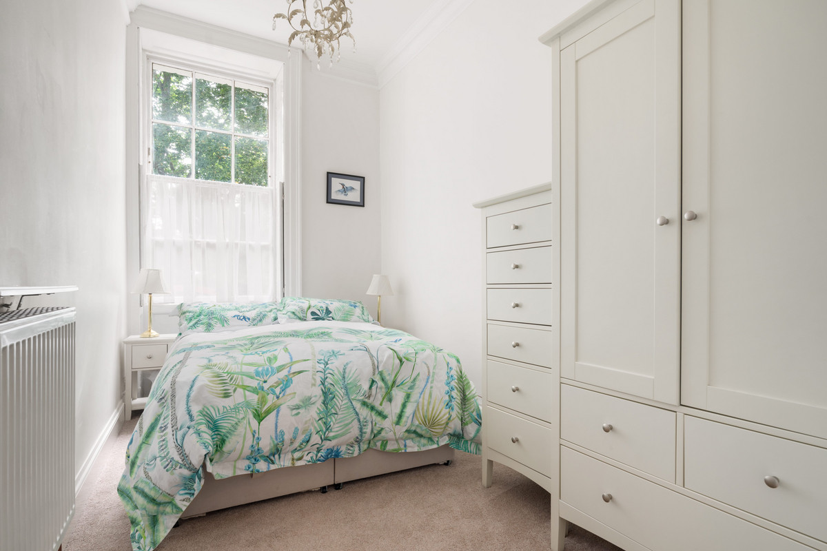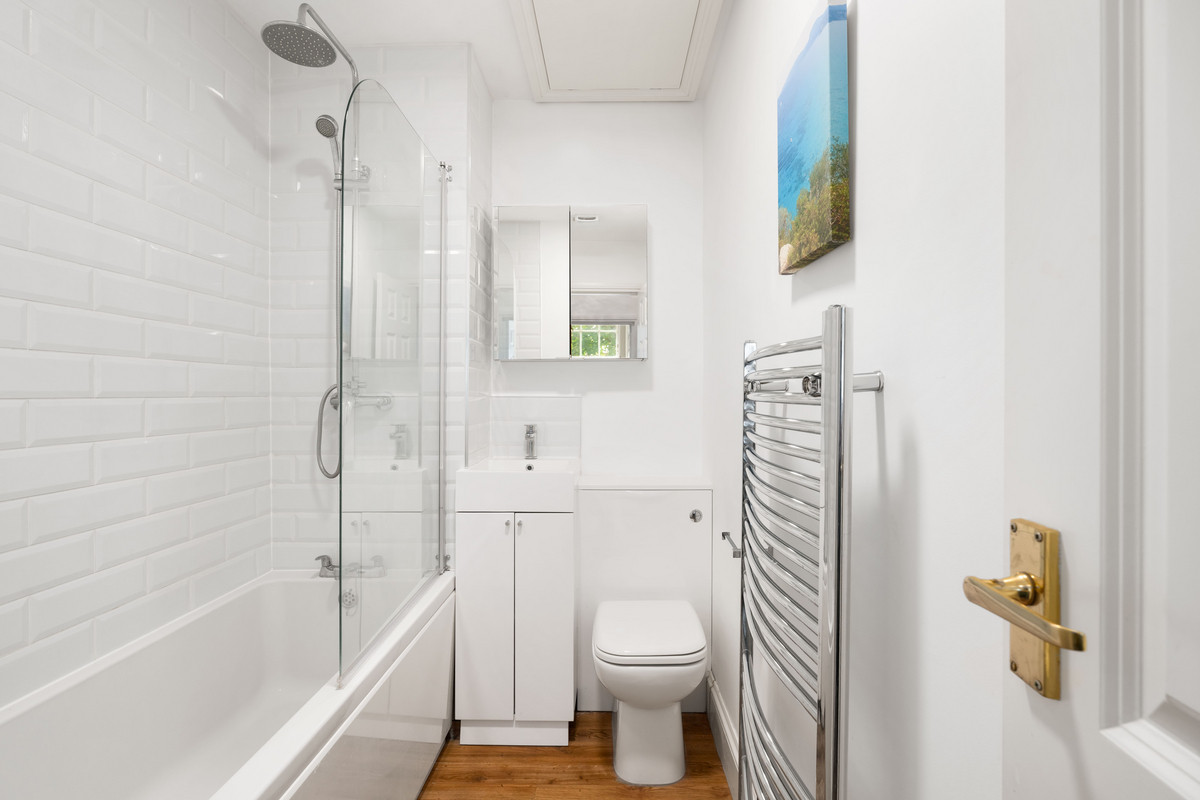 The master bedroom is light and airy and again features high ceilings, a large sash window with working shutters and access to a stylish en-suite shower room.