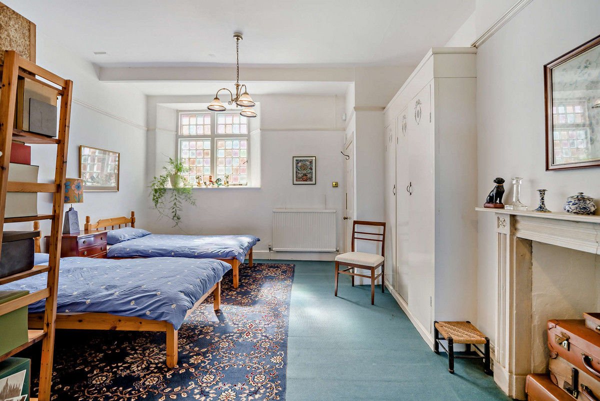 Set over two spacious storeys, the home is filled with natural light and original features that echo its past, from marble fireplaces to working shutters and colourful stained glass. The ground floor offers a wonderfully spacious kitchen-breakfast room with an AGA – a cosy and characterful hub of the home.