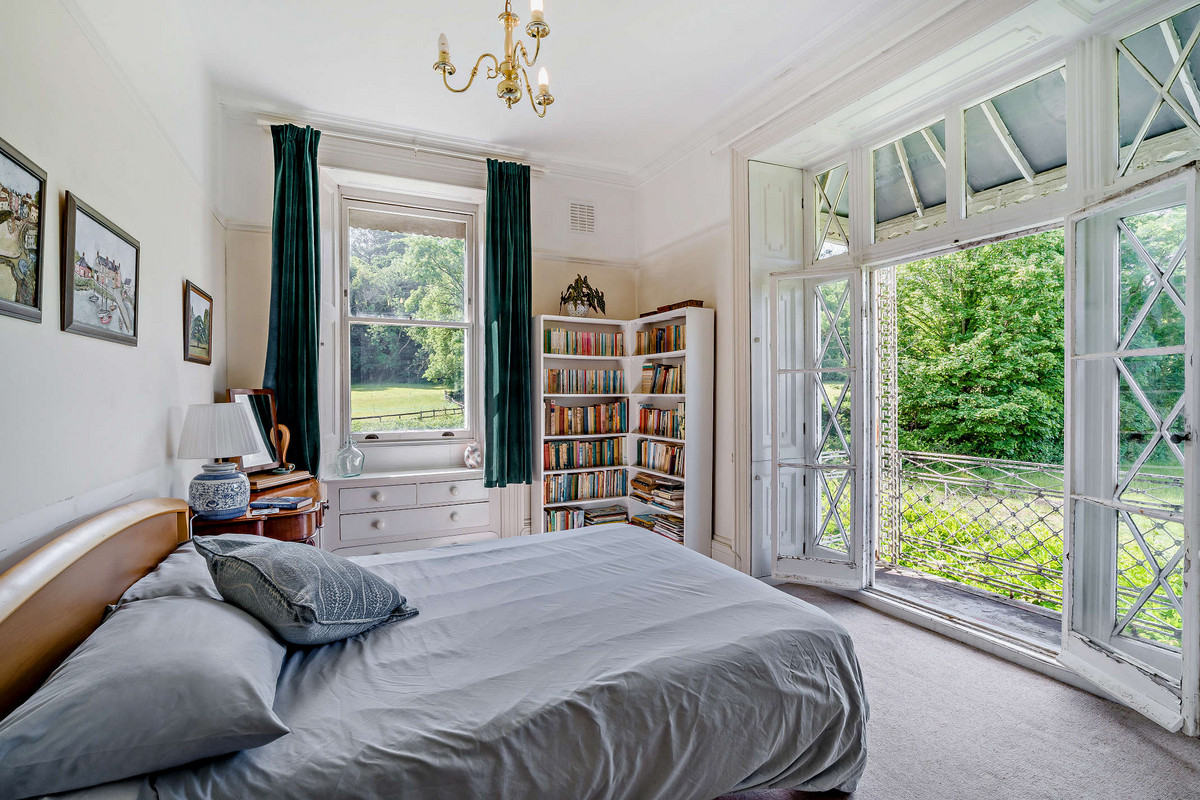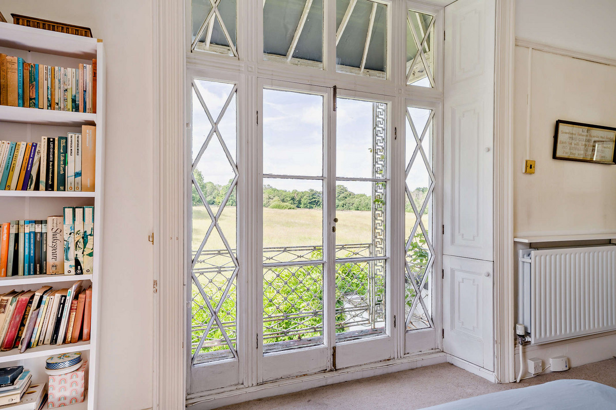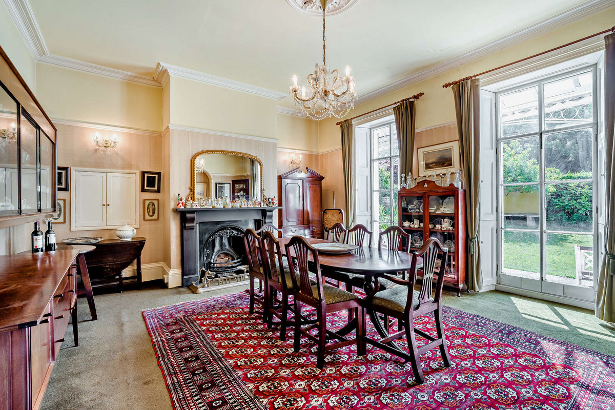 The large sitting room, opening to a raised patio, enjoys lovely views over the garden, while a study provides an inspiring spot to work or unwind, also overlooking the peaceful outdoor space. It could also be used as a ground floor fifth bedroom. The formal dining room, with two sets of French doors opening onto a veranda facing the front garden, provides a perfect setting for family events and hosting guests. The grand central hallway and side conservatory add to the potential for entertaining.