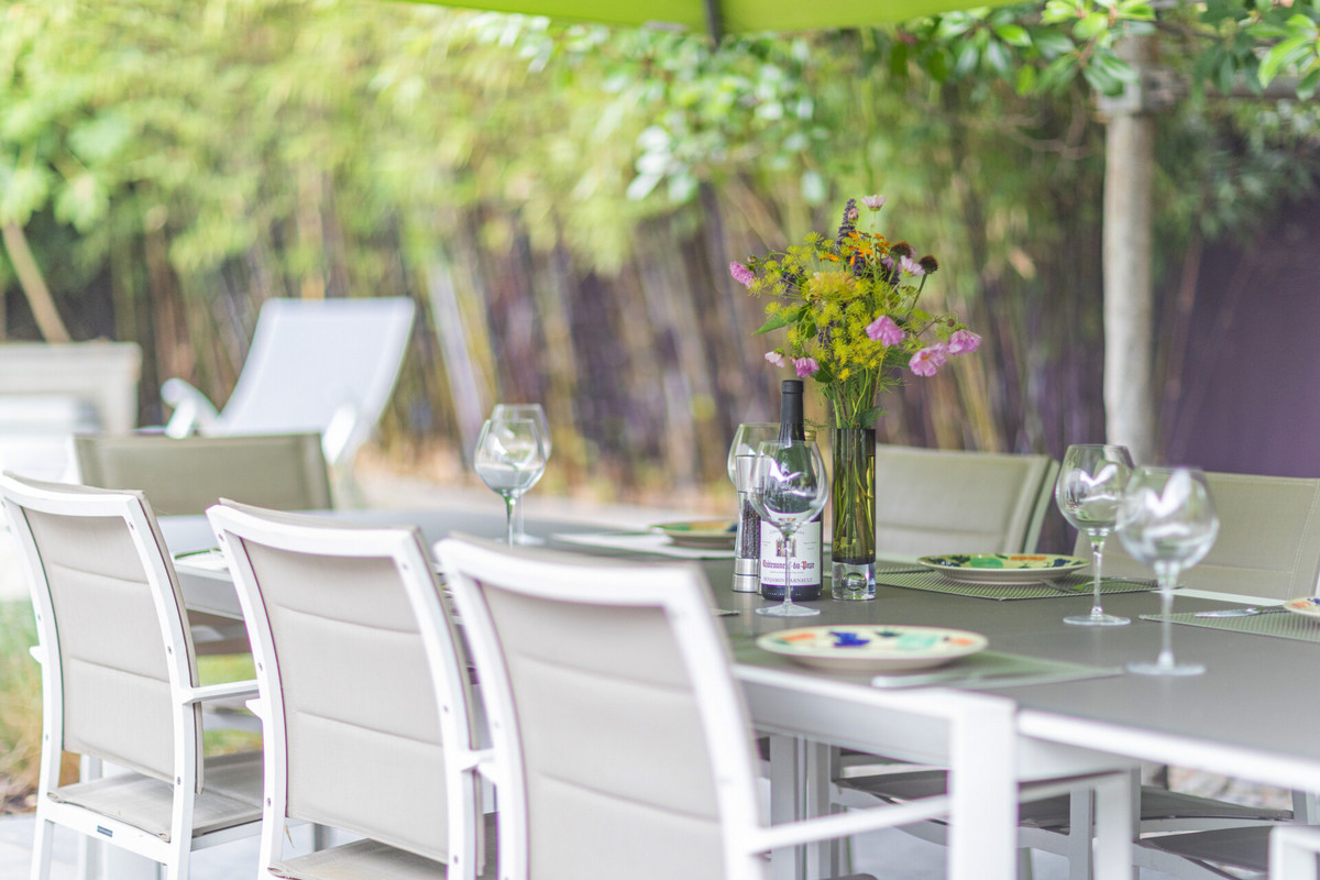 Set discreetly behind electric gates, Chataigne is a striking single-storey residence that blends contemporary architecture with the relaxed elegance of a Mediterranean villa.