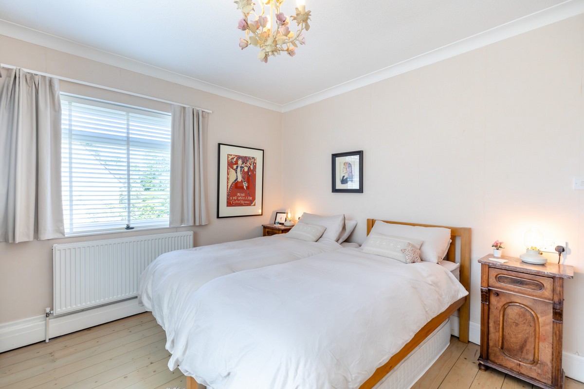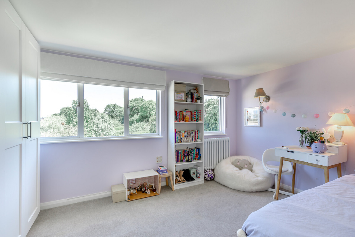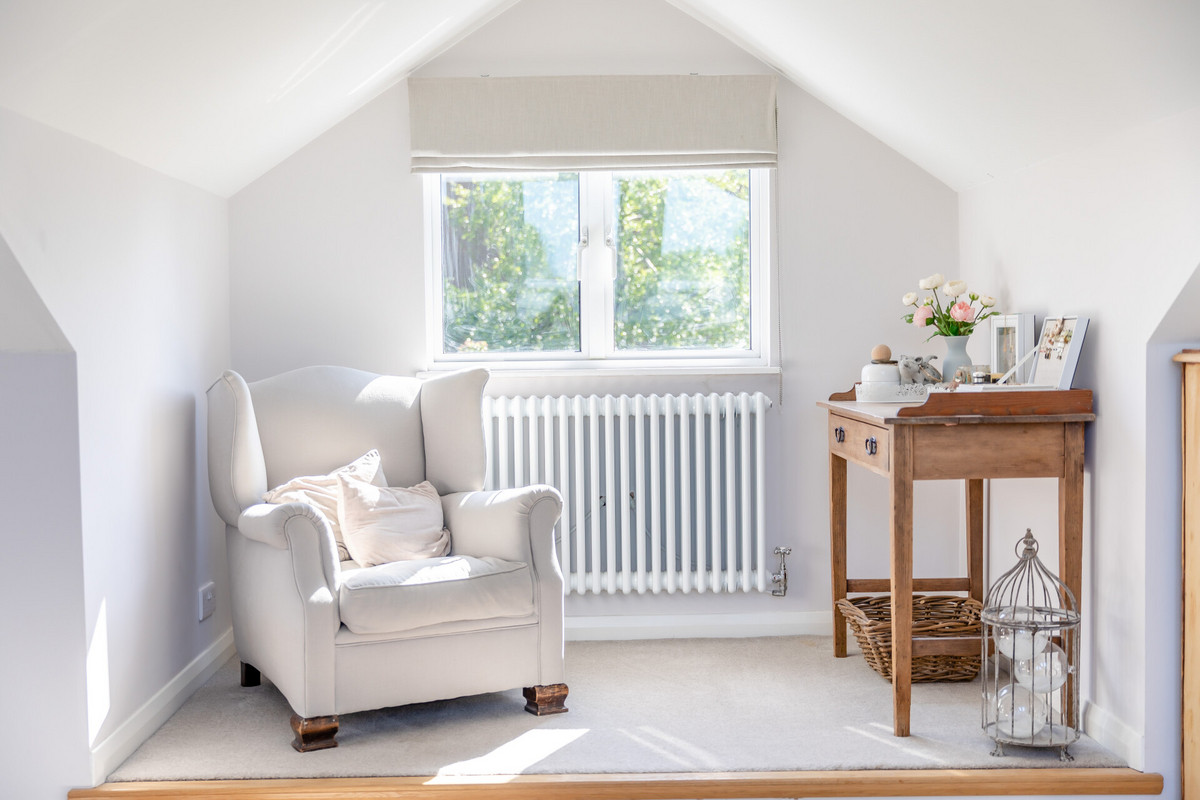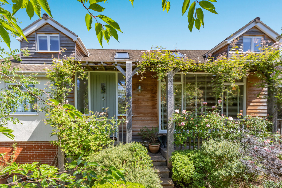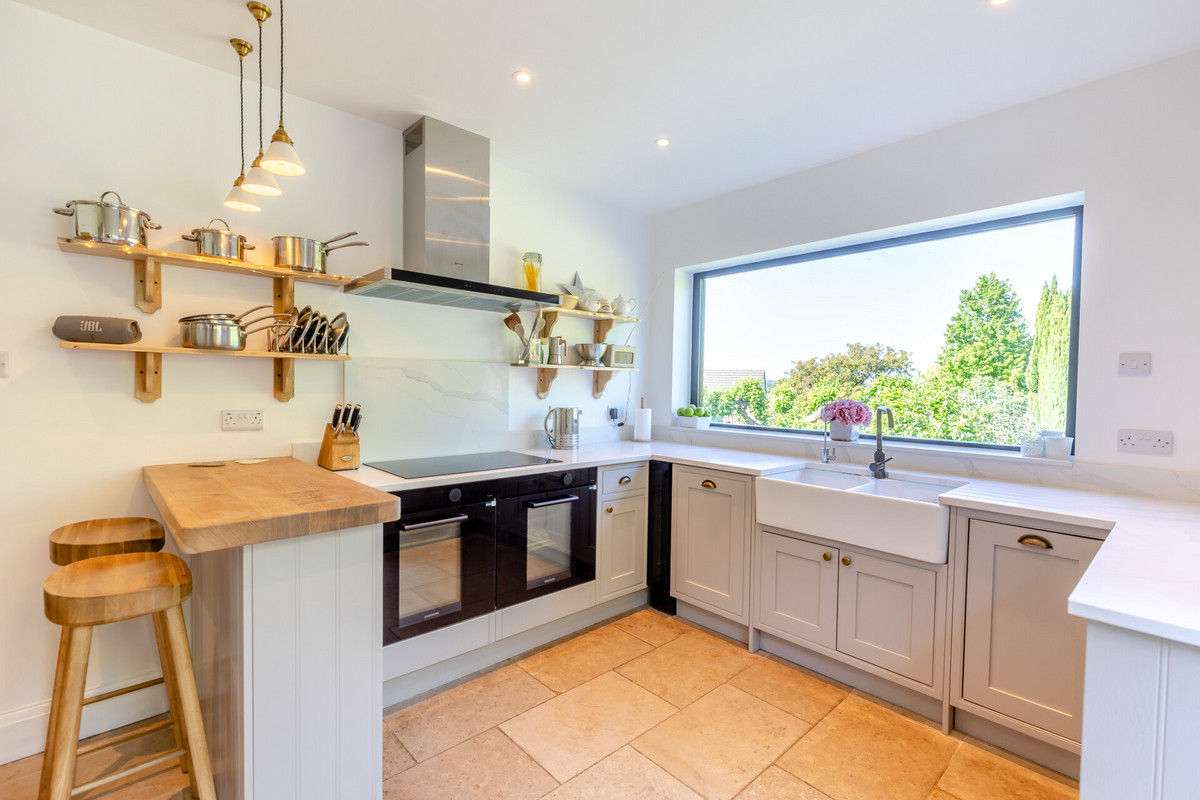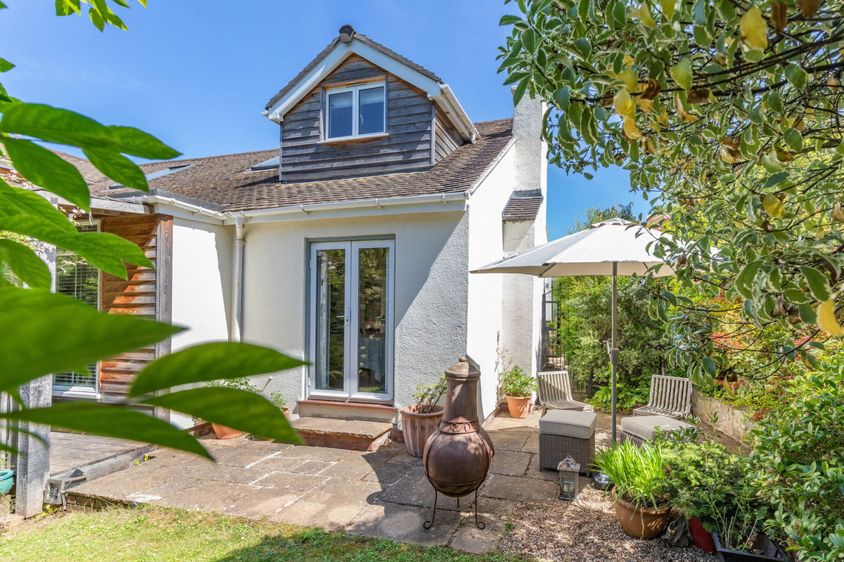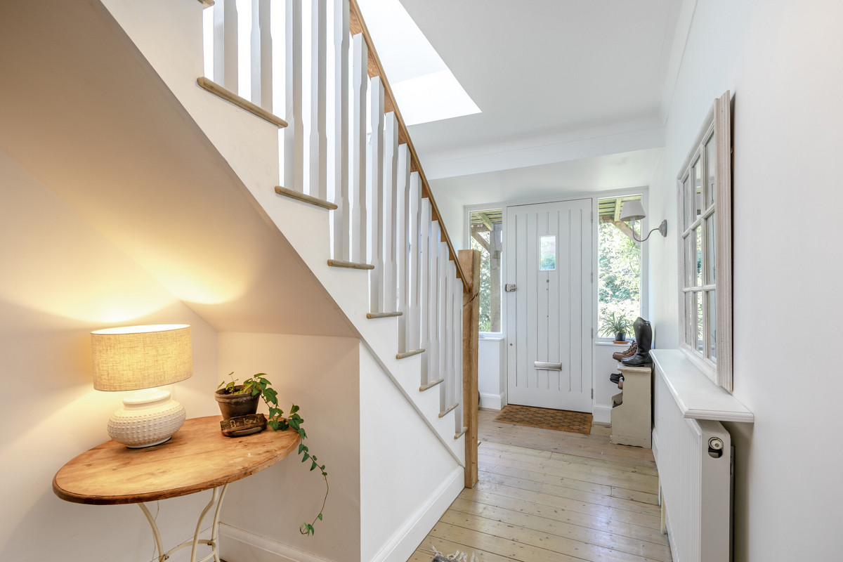 Upstairs, the serene principal bedroom is a standout, with striking ceiling detail, Velux windows, and a large Dorma window with beautiful elevated views in each directions. Two further bedrooms are light-filled and comfortable, served by a contemporary family bathroom.