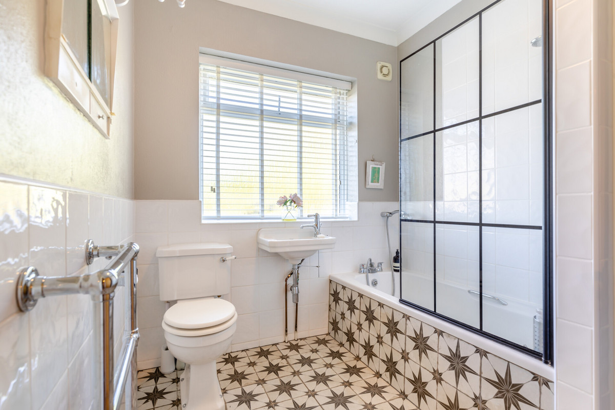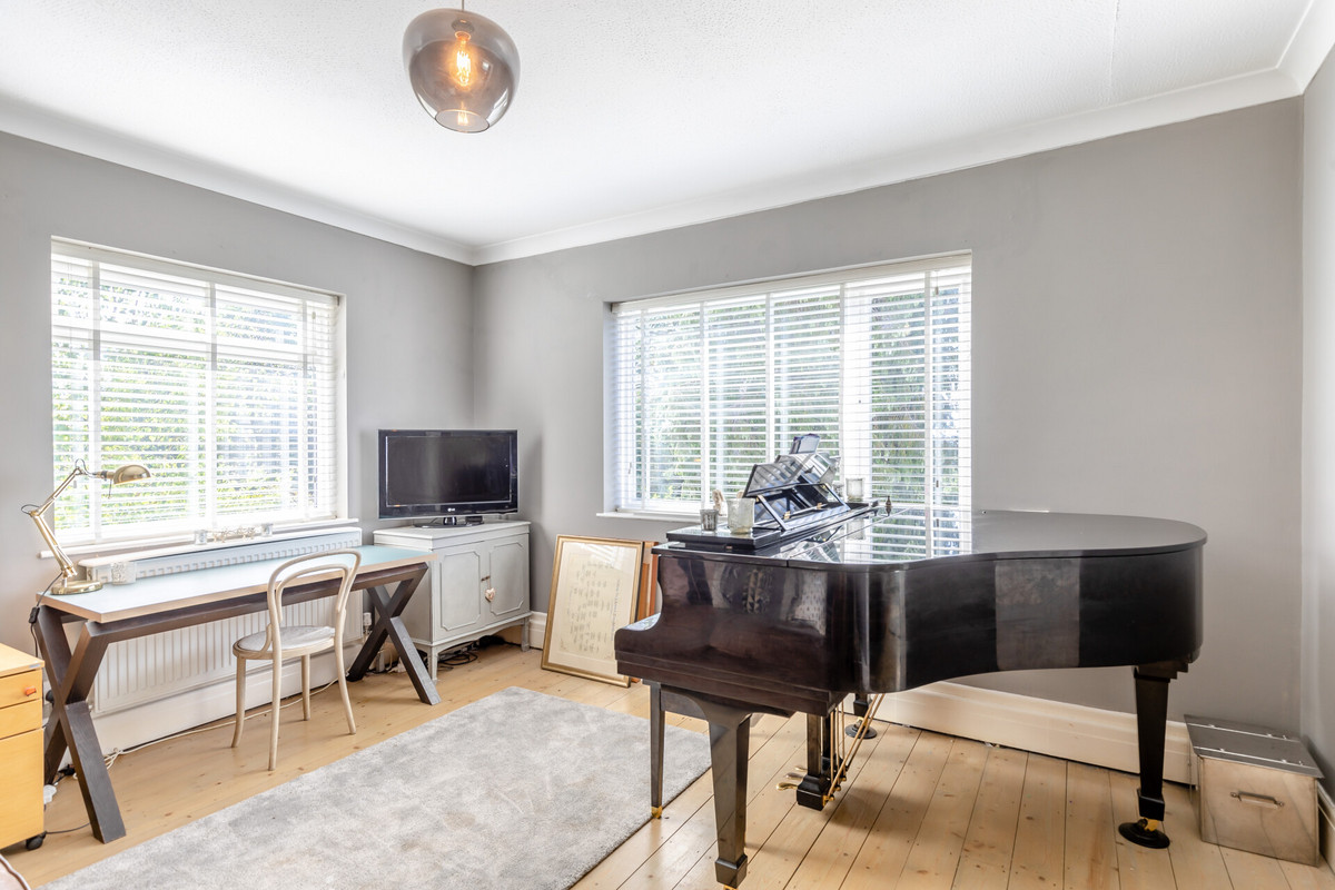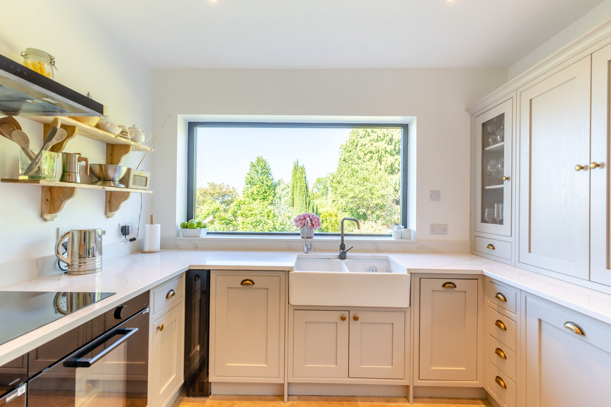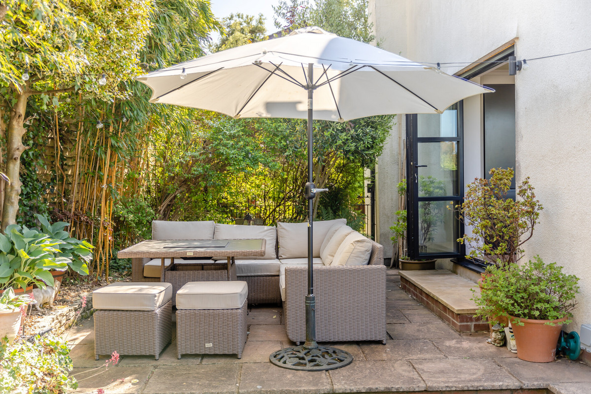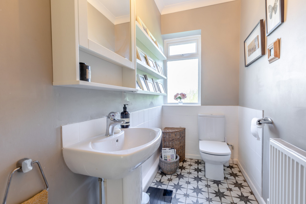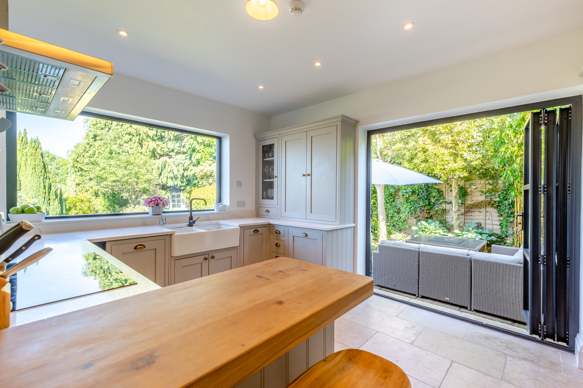 Upstairs, the serene principal bedroom is a standout, with striking ceiling detail, Velux windows, and a large Dorma window with beautiful elevated views in each directions. Two further bedrooms are light-filled and comfortable, served by a contemporary family bathroom.