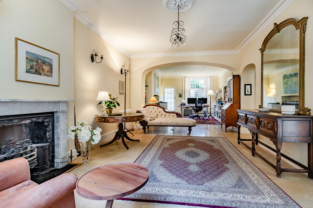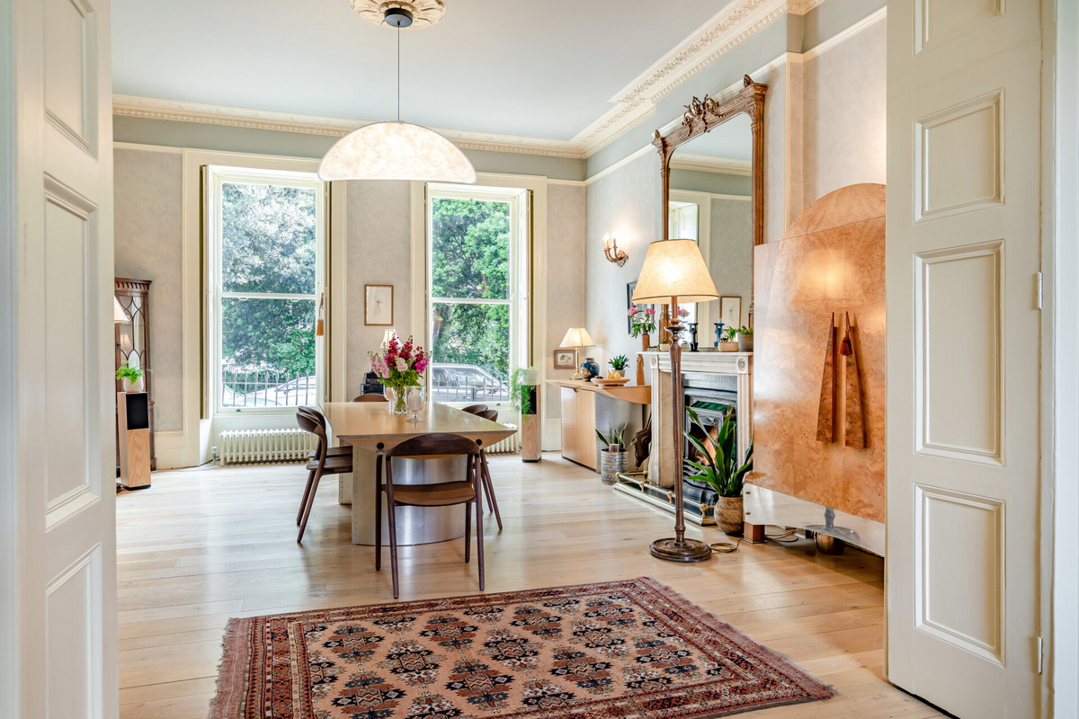 Wider than many of its neighbouring counterparts, No.17’s proportions immediately set it apart. Every floor is thoughtfully curated, combining historic charm with modern comfort—enhanced by the current owners' meticulous attention to detail and an evident investment in quality throughout. The house retains exquisite period detailing including original folding doors between the rooms on the ground and first floors, and benefits from up to 3.55 metre high ceilings that add to the sense of scale and grandeur.