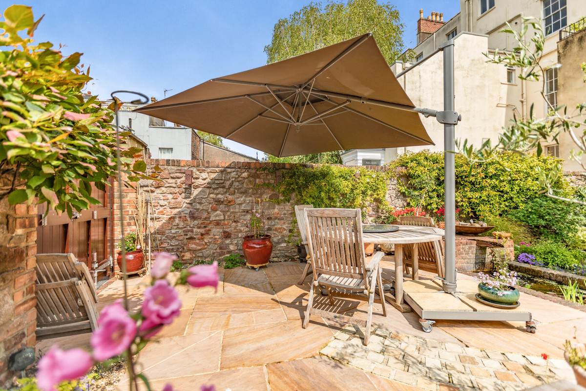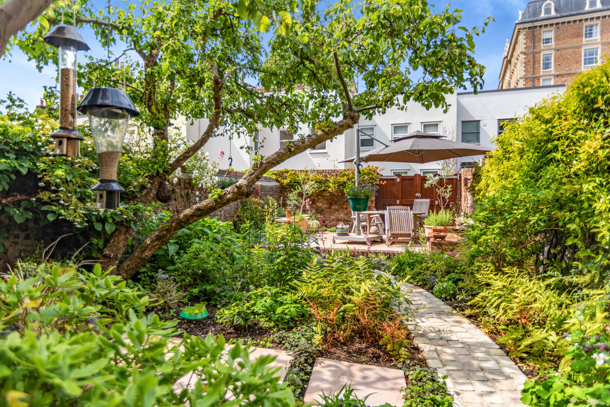 Outside, the rear garden has been thoughtfully landscaped to create a peaceful, low-maintenance haven with mature planting and secluded seating areas. Discreet gated access to the rear lane provides an exceptionally rare benefit in Clifton—secure, off-street parking.
