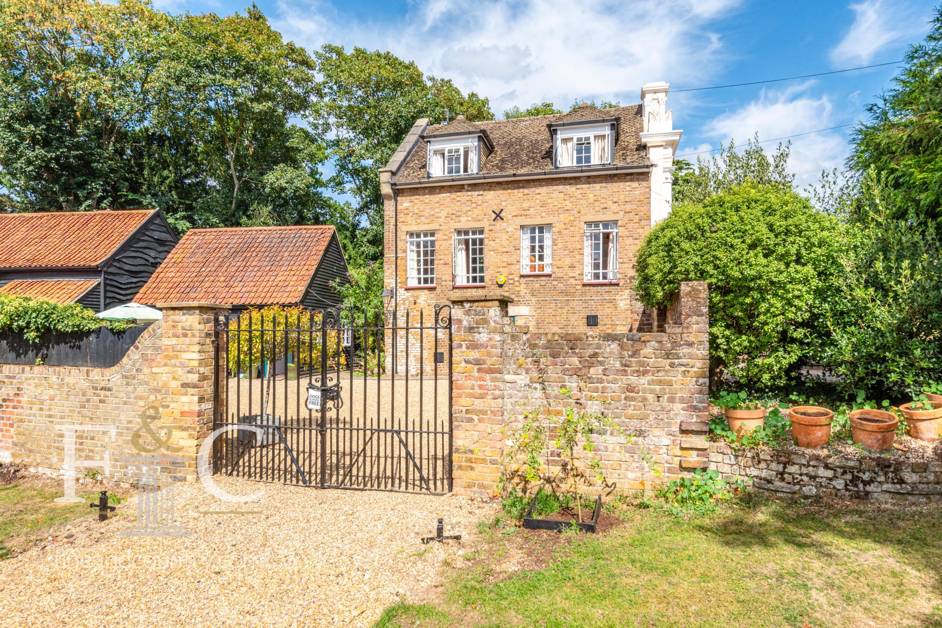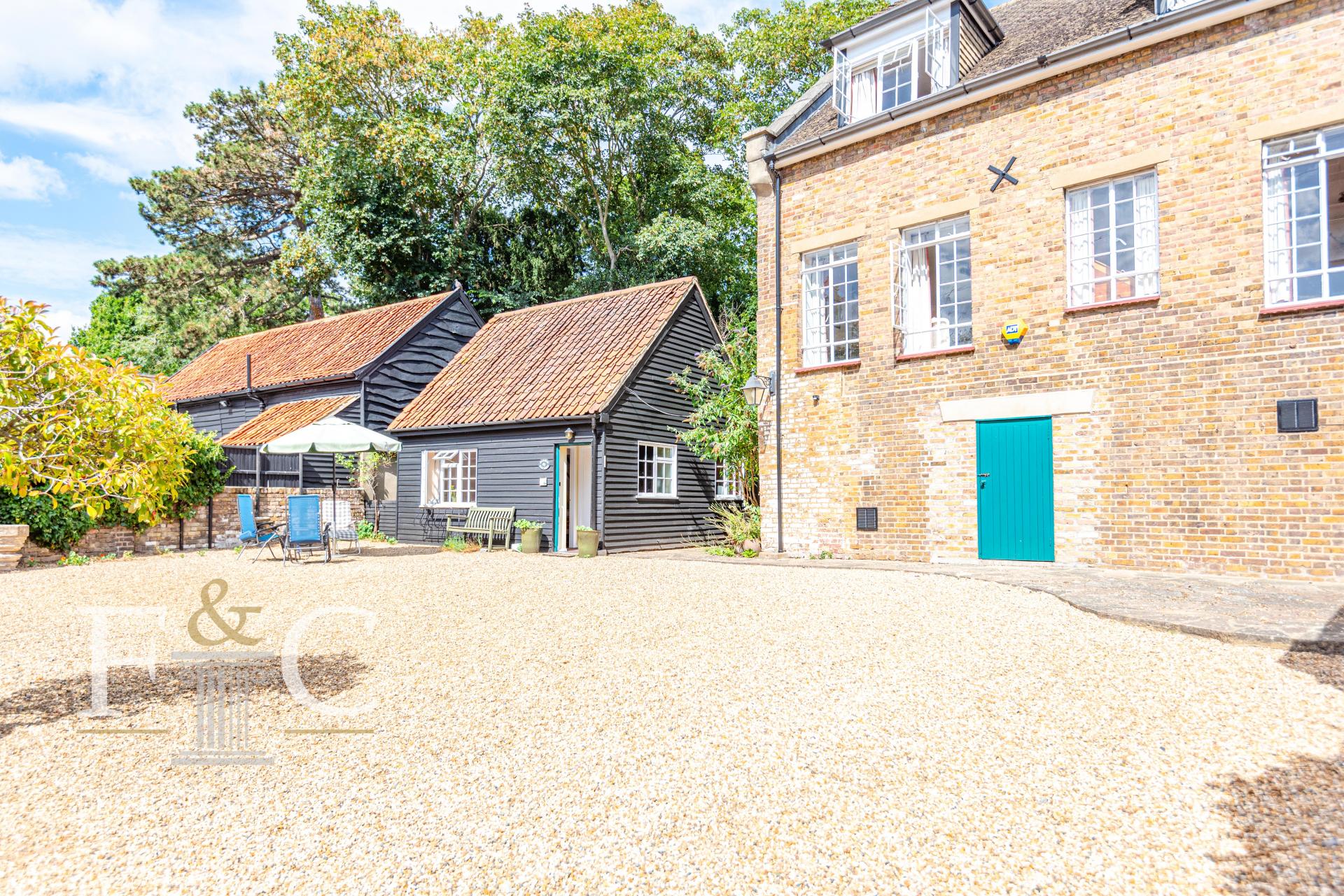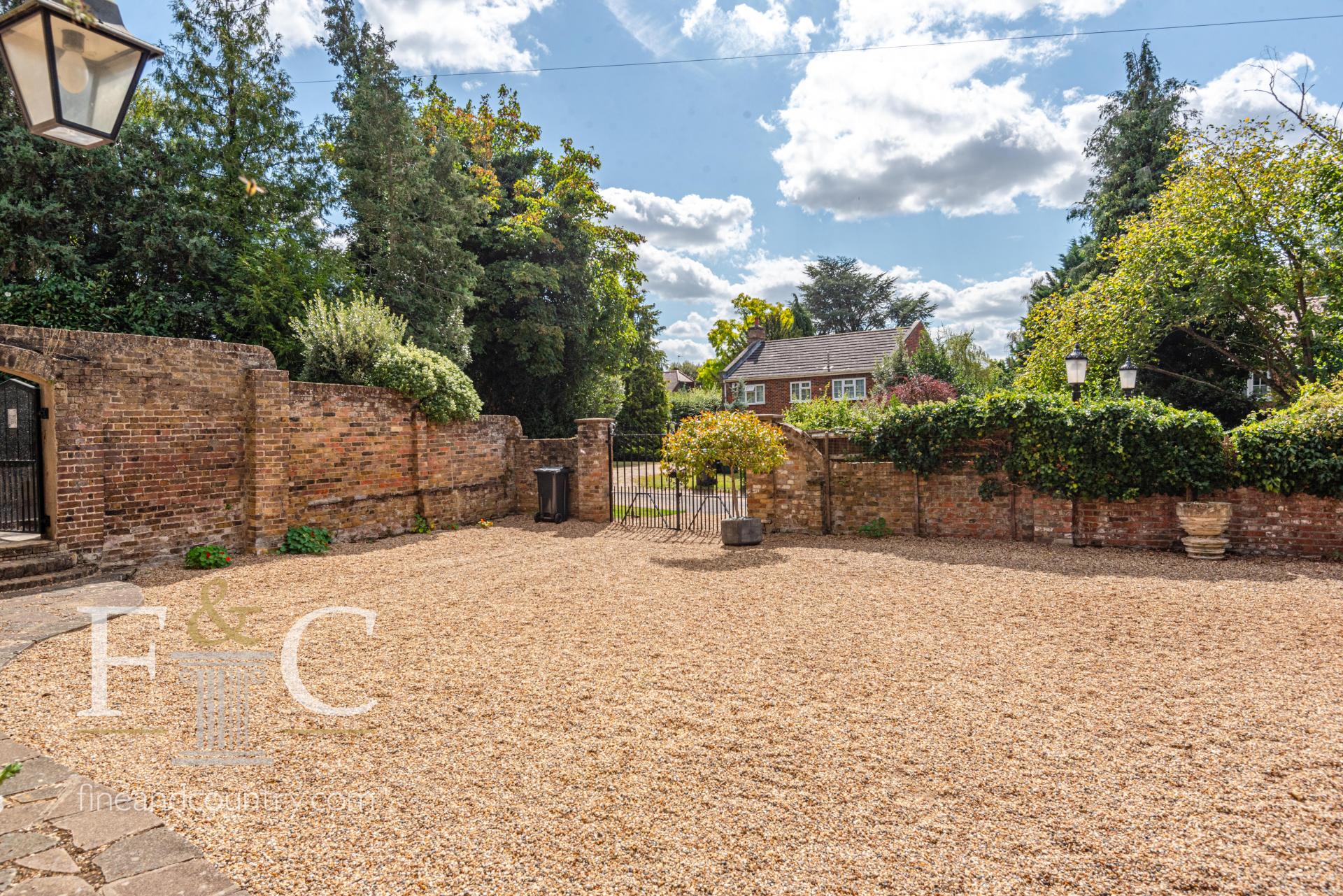 The property is approached via a treelined road. It is within a short riverside walk to Broxbourne Station and is a stone's throw from Hoddesdon Town Centre. A set of wrought-iron double gates open into an extensive enclosed gravel driveway. Subject to an incoming owner's needs, some of this driveway space could be sacrificed to offer additional garden/lawn. Tucked behind the house and detached cottage annex is a deep, raised flower bed. A pedestrian gate from the enclosed driveway leads to the other side of the plot. The area is largely laid to lawn with a few large evergreen trees and a well-maintained hedgerow along the boundary. A turning staircase leads up to the front door.