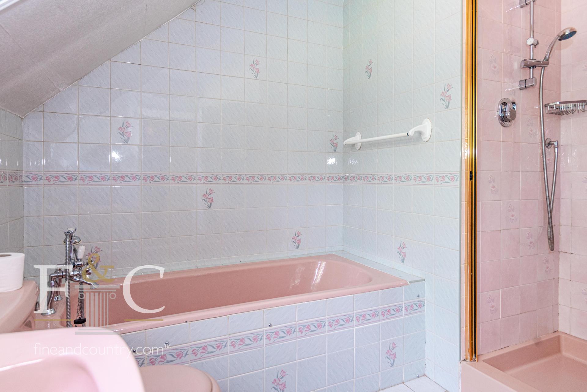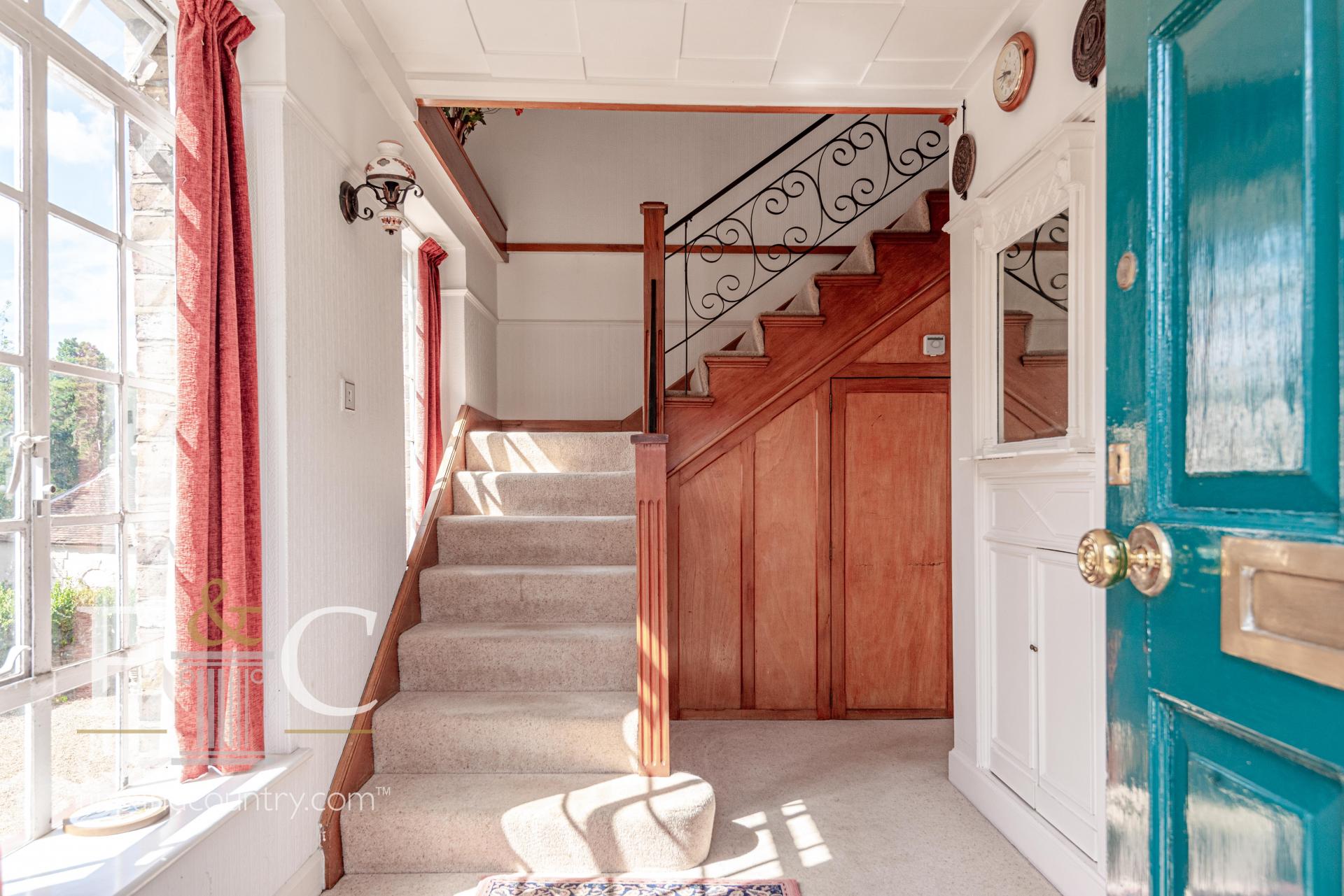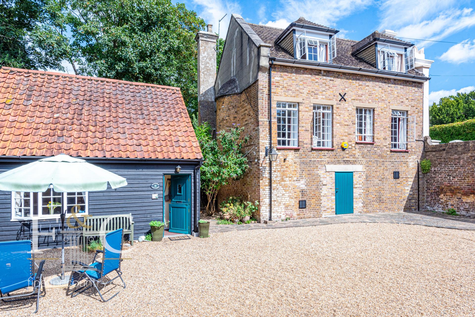 The property is approached via a treelined road. It is within a short riverside walk to Broxbourne Station and is a stone's throw from Hoddesdon Town Centre. A set of wrought-iron double gates open into an extensive enclosed gravel driveway. Subject to an incoming owner's needs, some of this driveway space could be sacrificed to offer additional garden/lawn. Tucked behind the house and detached cottage annex is a deep, raised flower bed. A pedestrian gate from the enclosed driveway leads to the other side of the plot. The area is largely laid to lawn with a few large evergreen trees and a well-maintained hedgerow along the boundary. A turning staircase leads up to the front door.