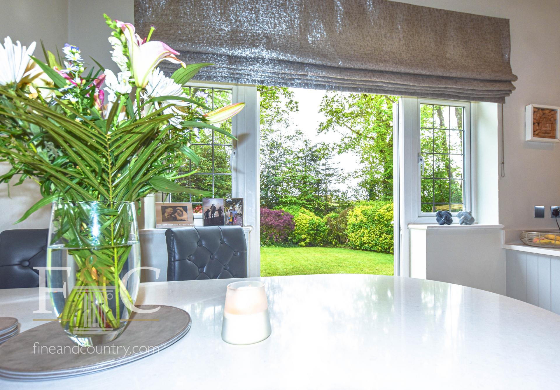 Upstairs there is an impressive galleried landing with doors leading to the principal bedroom with fitted wardrobes and a modern fitted en-suite shower room, the second bedroom suite also has fitted wardrobes and a second en-suite shower room. The family bath/shower room has been beautifully fitted with a four-piece suite. Two of the three further bedrooms have fitted wardrobes.