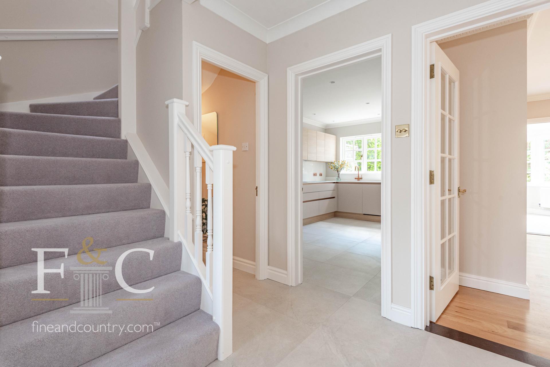 Upstairs there are five bedrooms and three bathrooms. The principal bedroom has a range of fitted wardrobes and a modern en-suite shower room. Bedroom two has fitted wardrobes and an en-suite shower too.
