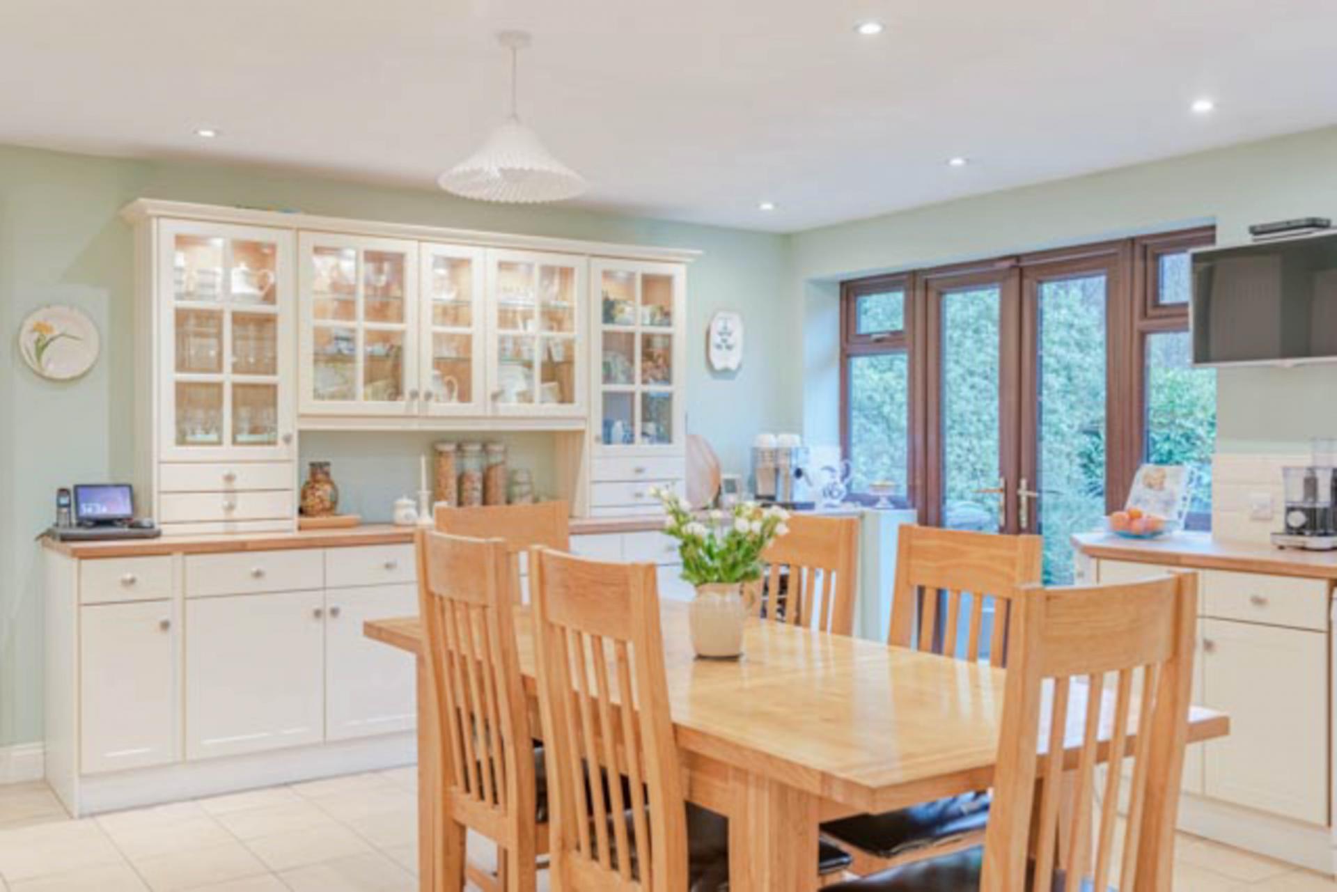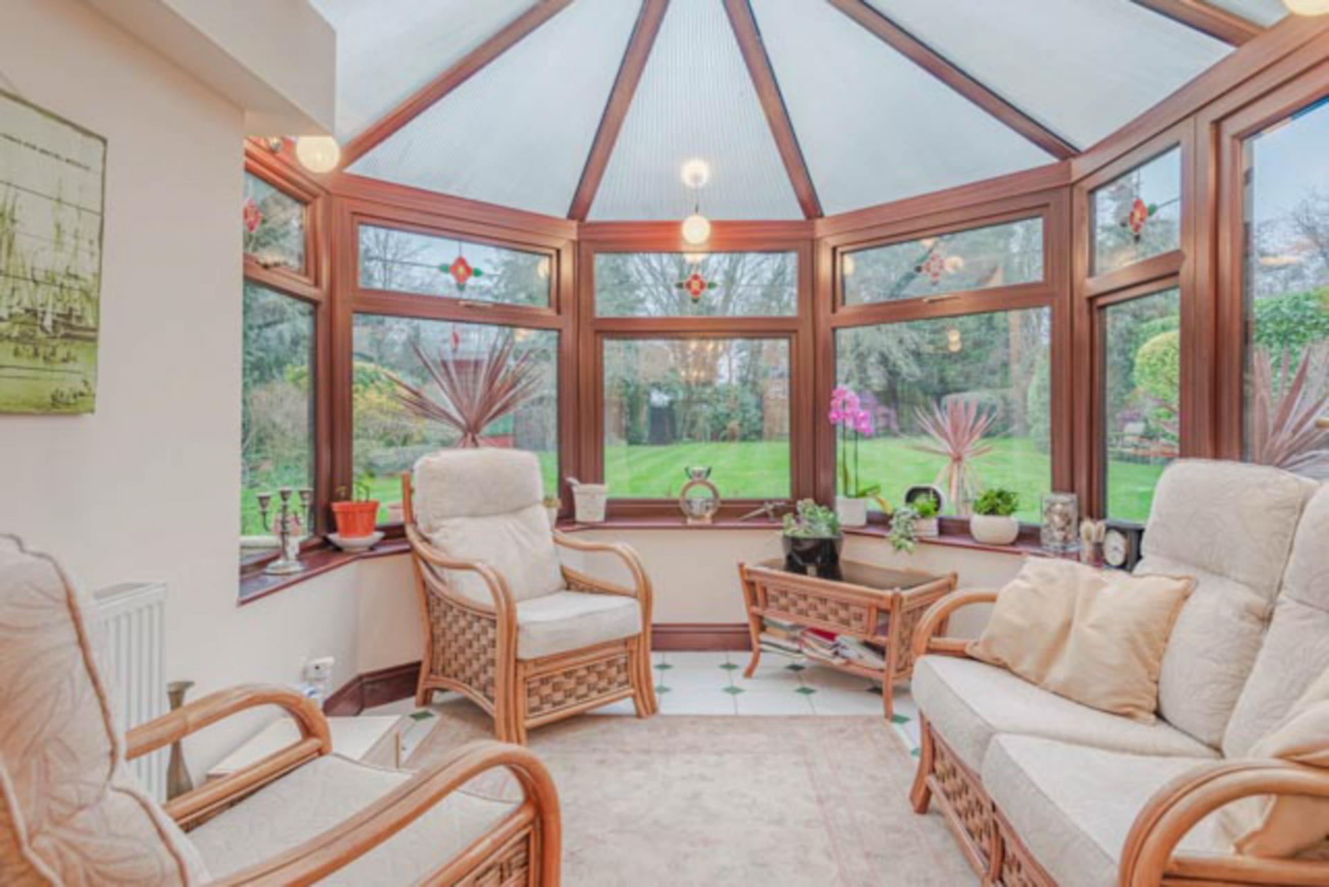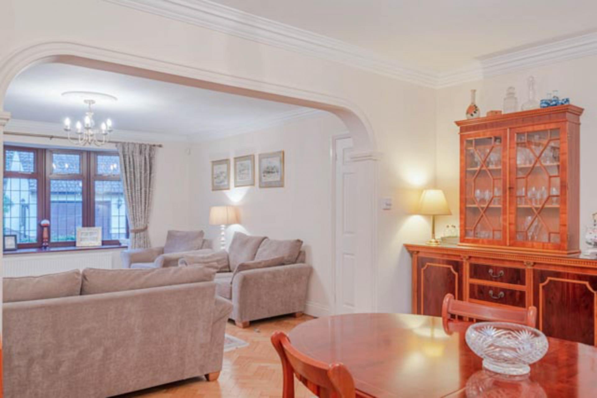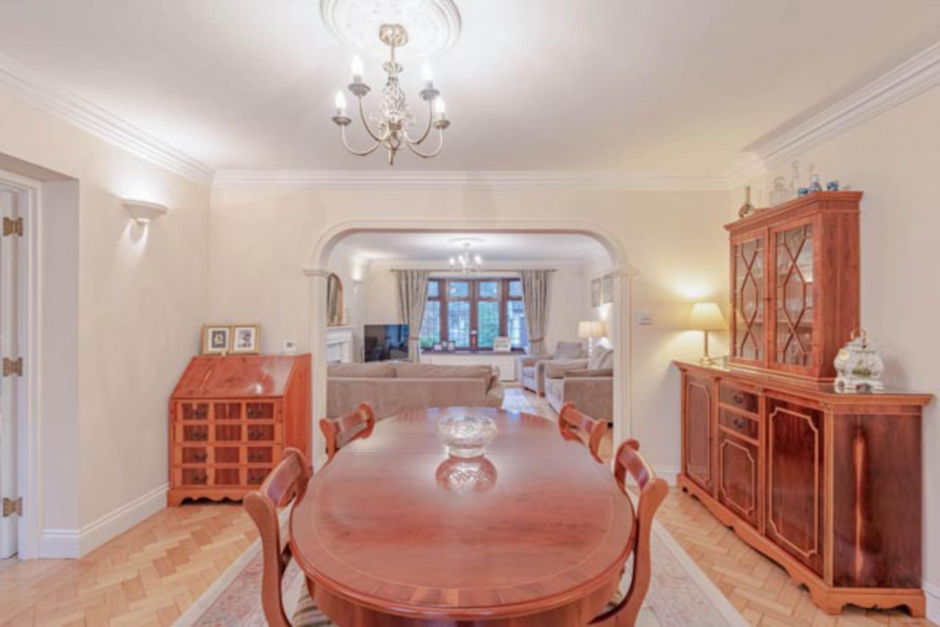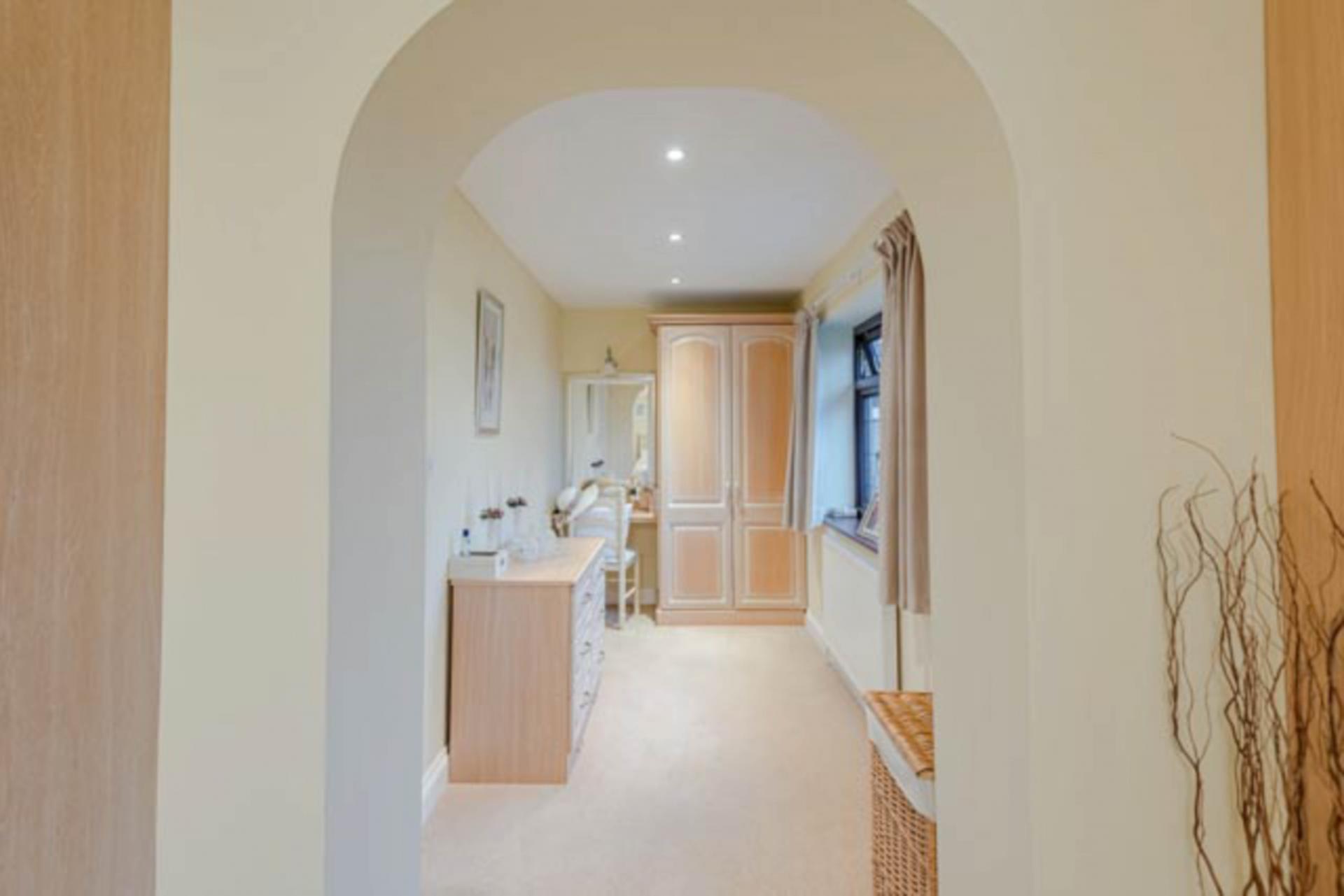 Upon entering, you are greeted by four elegantly designed reception rooms, perfect for both entertaining guests and enjoying quiet family time. The layout is thoughtfully arranged to provide ample space for relaxation and social gatherings. The property also features a paved driveway that accommodates parking for up to six vehicles, complemented by a detached double garage / workshop for additional convenience.