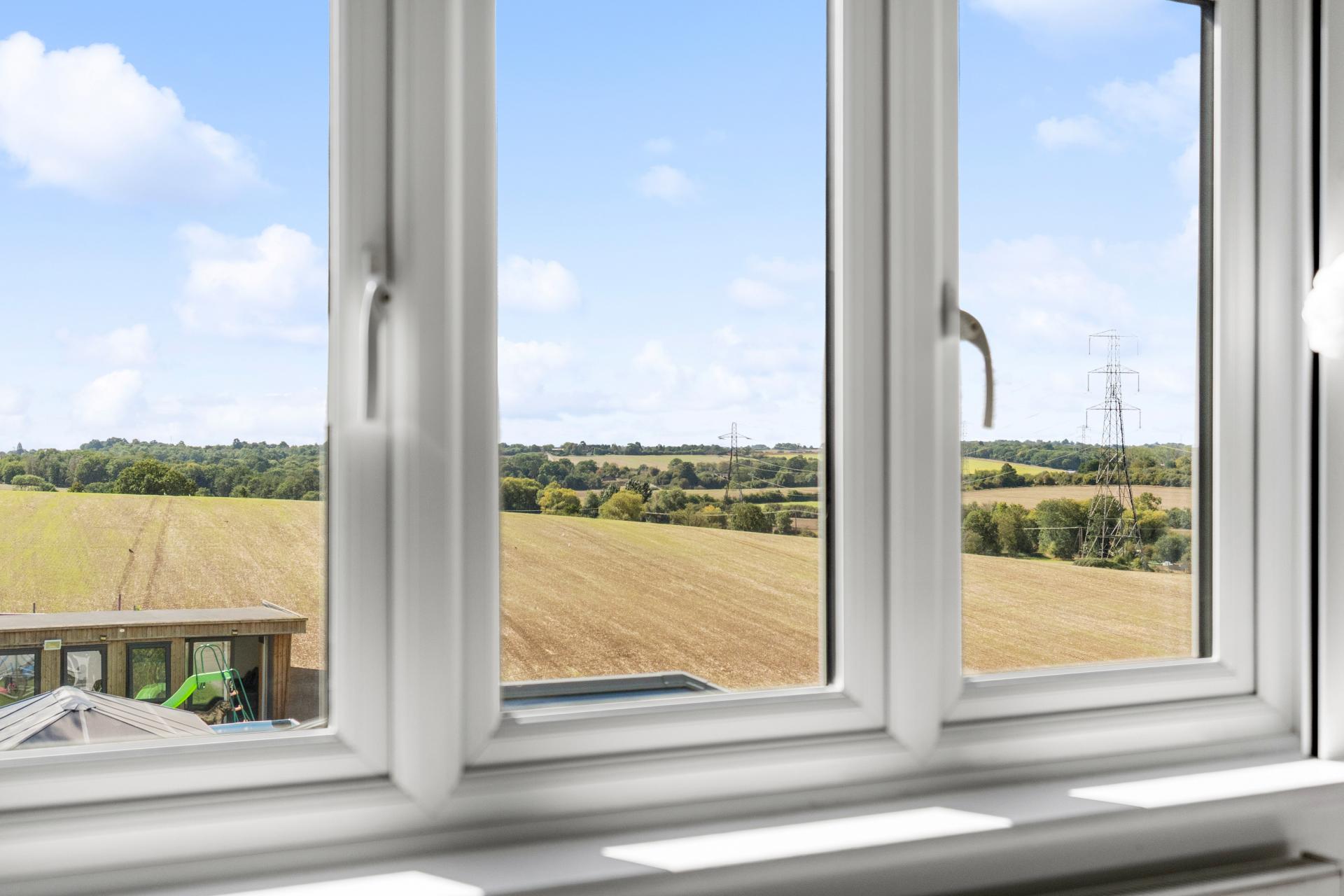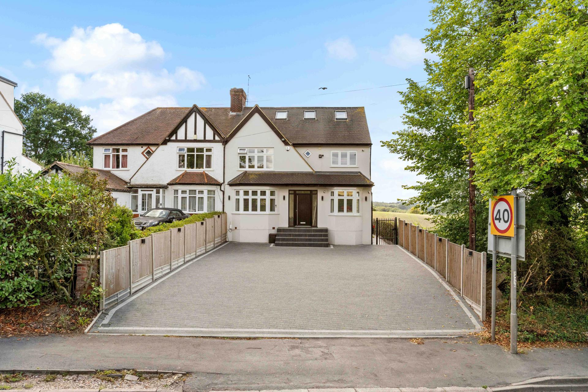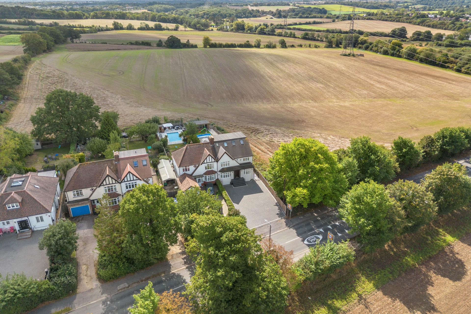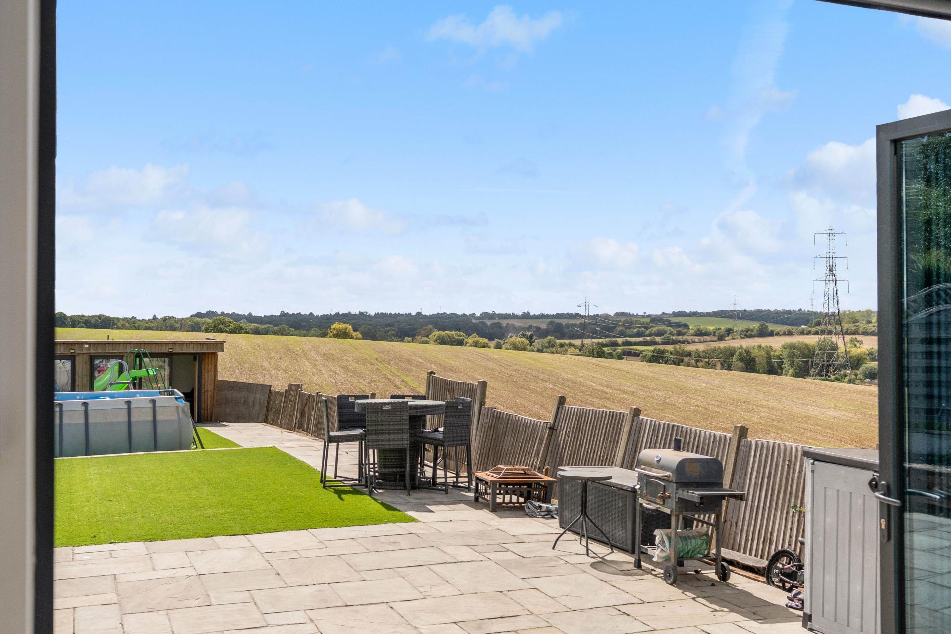 An exceptional five-bedroom home boasting breathtaking views onto open fields and located close to Cuffley Train Station and the vibrant High Street. The ground floor is designed with family living and entertaining in mind, offering a welcoming living room, a stylish sitting/dining room with underfloor heating, a modern kitchen, playroom, utility room, and guest WC. Upstairs, there are three generously proportioned double bedrooms, two enjoying the luxury of their own en suites, alongside a family bathroom. The top floor is dedicated to the impressive principal suite, where a Juliet balcony frames far-reaching views over the fields. A beautifully finished en suite complements this room. While the fifth bedroom, currently utilised as a dressing room, adds versatility. Outside, a landscaped south-facing garden provides an idyllic setting for relaxation or entertaining, while the outbuilding offers scope as a home office, gym, or studio. To the front, a private driveway ensures ample off-street parking for multiple vehicles. Further luxuries complete this home, including air conditioning in all bedrooms and CCTV security. This is a rare opportunity to secure a home that offers the best of both worlds: countryside tranquillity and convenient access to London via Cuffley station.