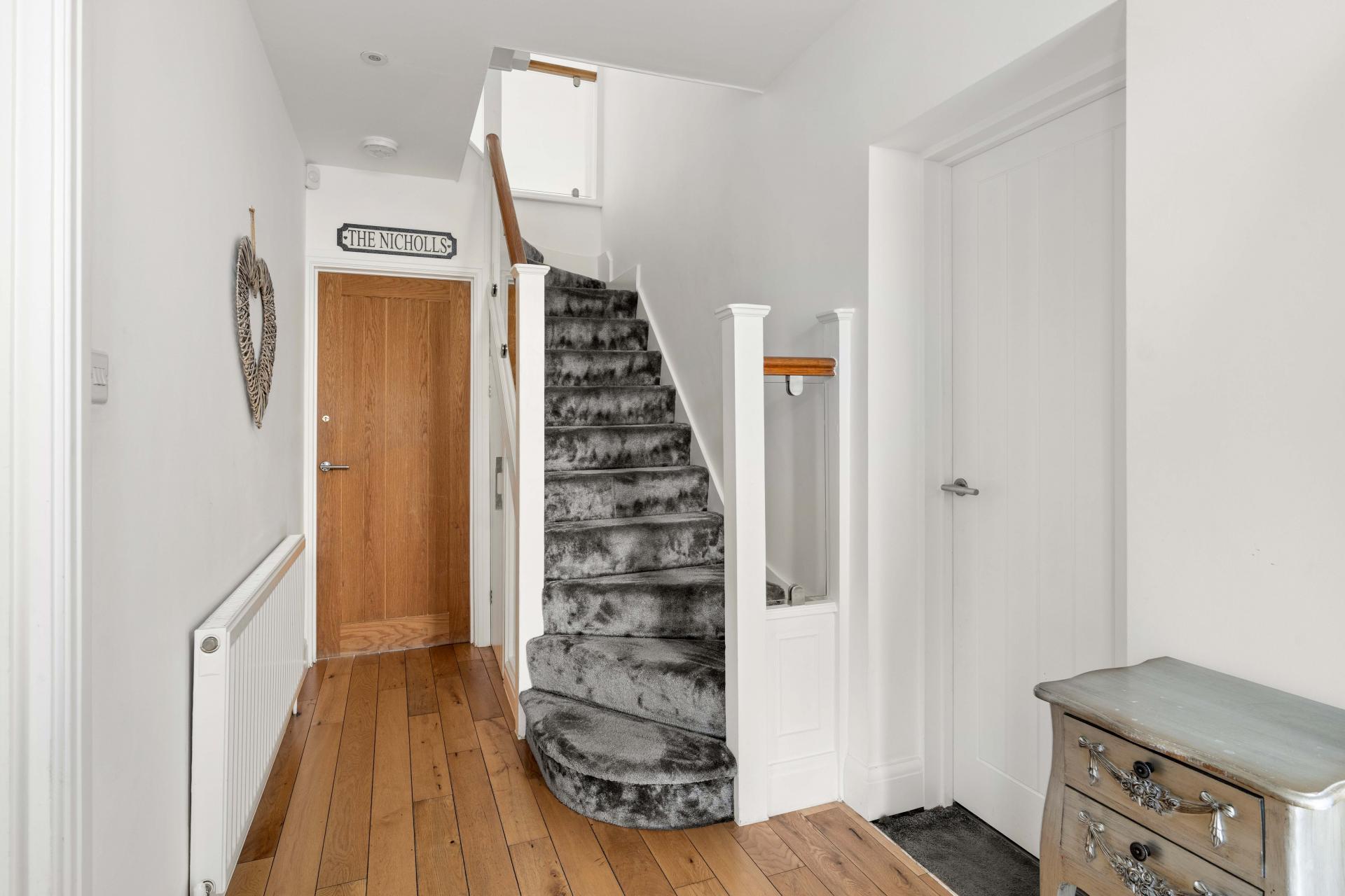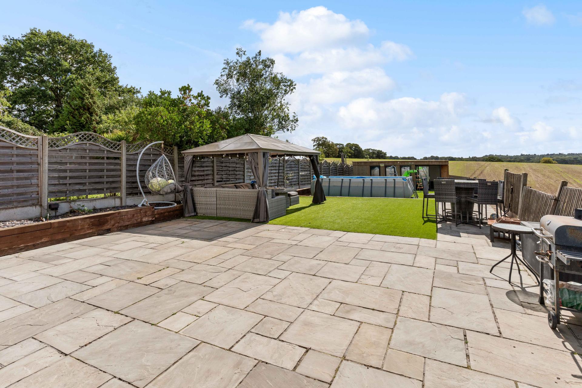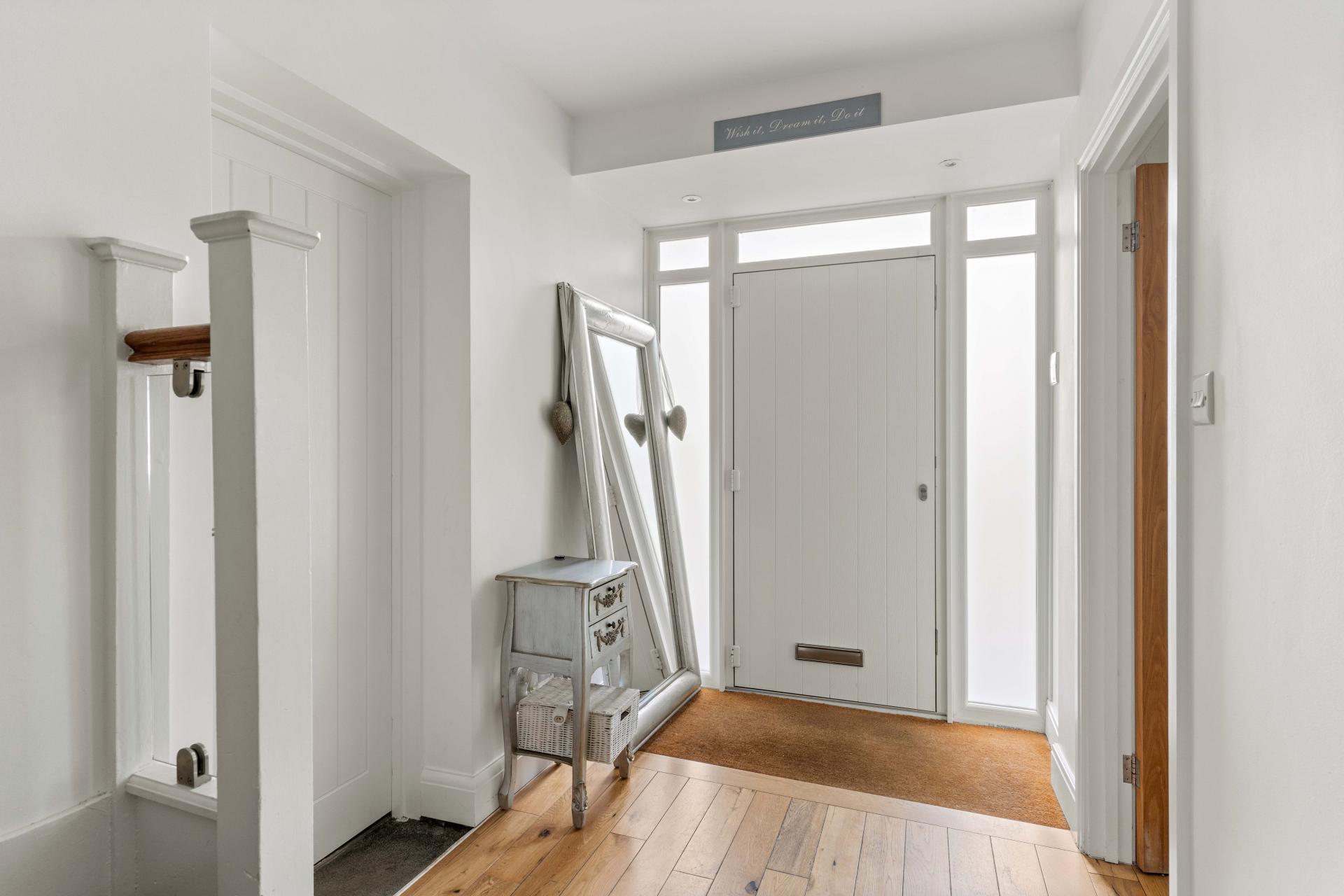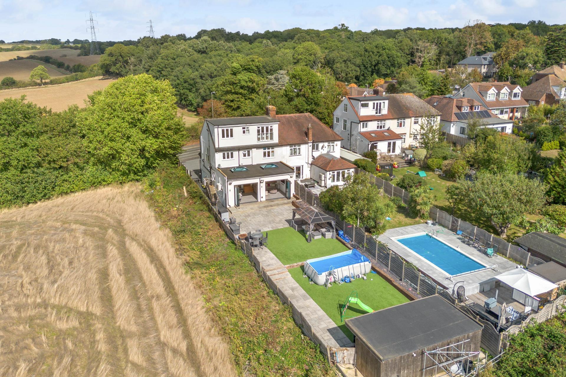 An exceptional five-bedroom home boasting breathtaking views onto open fields and located close to Cuffley Train Station and the vibrant High Street. The ground floor is designed with family living and entertaining in mind, offering a welcoming living room, a stylish sitting/dining room with underfloor heating, a modern kitchen, playroom, utility room, and guest WC. Upstairs, there are three generously proportioned double bedrooms, two enjoying the luxury of their own en suites, alongside a family bathroom. The top floor is dedicated to the impressive principal suite, where a Juliet balcony frames far-reaching views over the fields. A beautifully finished en suite complements this room. While the fifth bedroom, currently utilised as a dressing room, adds versatility. Outside, a landscaped south-facing garden provides an idyllic setting for relaxation or entertaining, while the outbuilding offers scope as a home office, gym, or studio. To the front, a private driveway ensures ample off-street parking for multiple vehicles. Further luxuries complete this home, including air conditioning in all bedrooms and CCTV security. This is a rare opportunity to secure a home that offers the best of both worlds: countryside tranquillity and convenient access to London via Cuffley station.