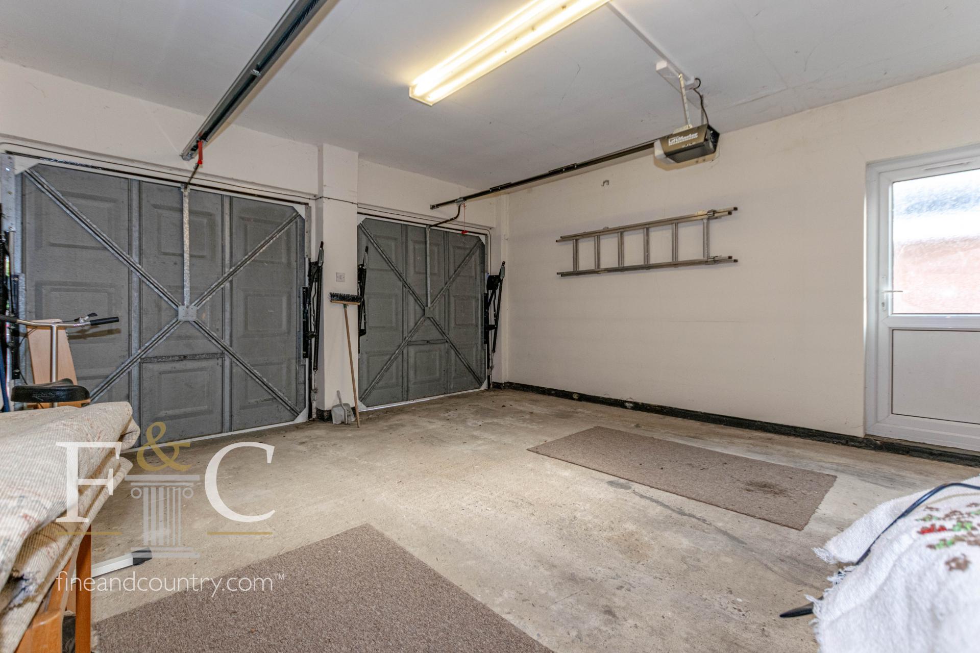 Outside, the beautifully established rear garden is a true highlight, offering a peaceful retreat with its lush lawn, mature trees, and vibrant plants. The paved patio area is ideal for al fresco dining or simply enjoying the tranquil surroundings. The front of the property is equally impressive, featuring a secure gated entrance that leads to a spacious block-paved driveway, providing parking for up to four vehicles, along with a double garage equipped with electric doors.