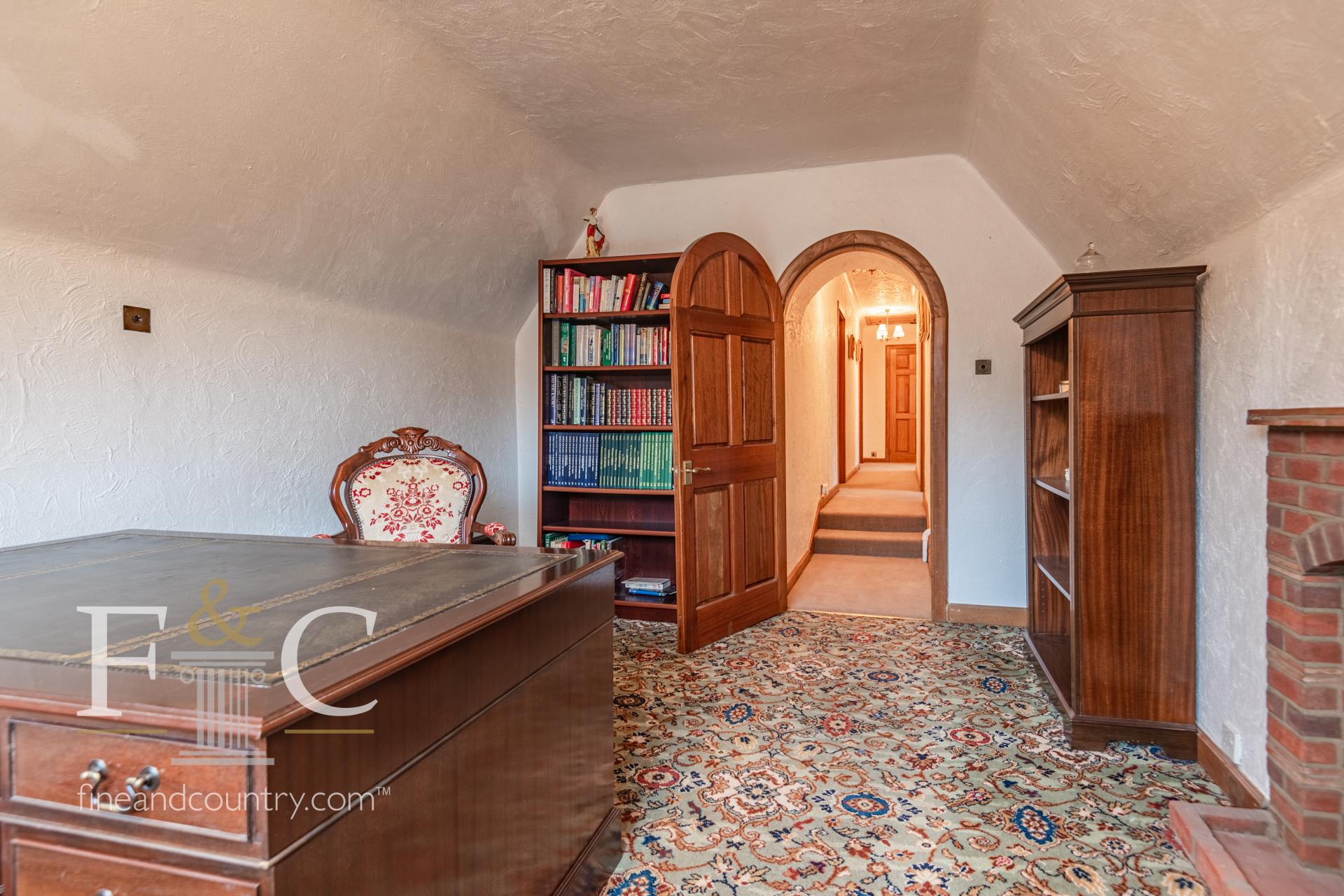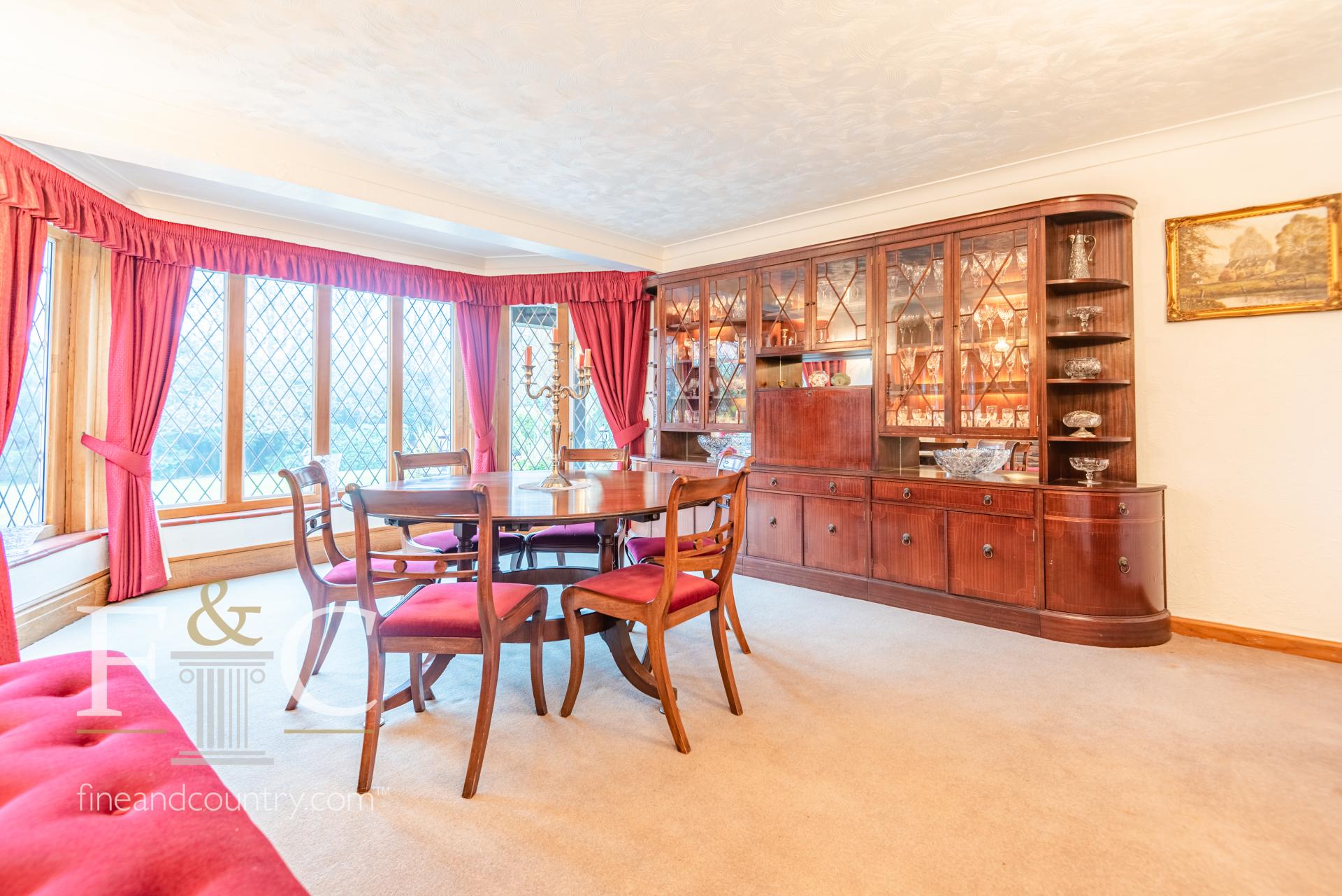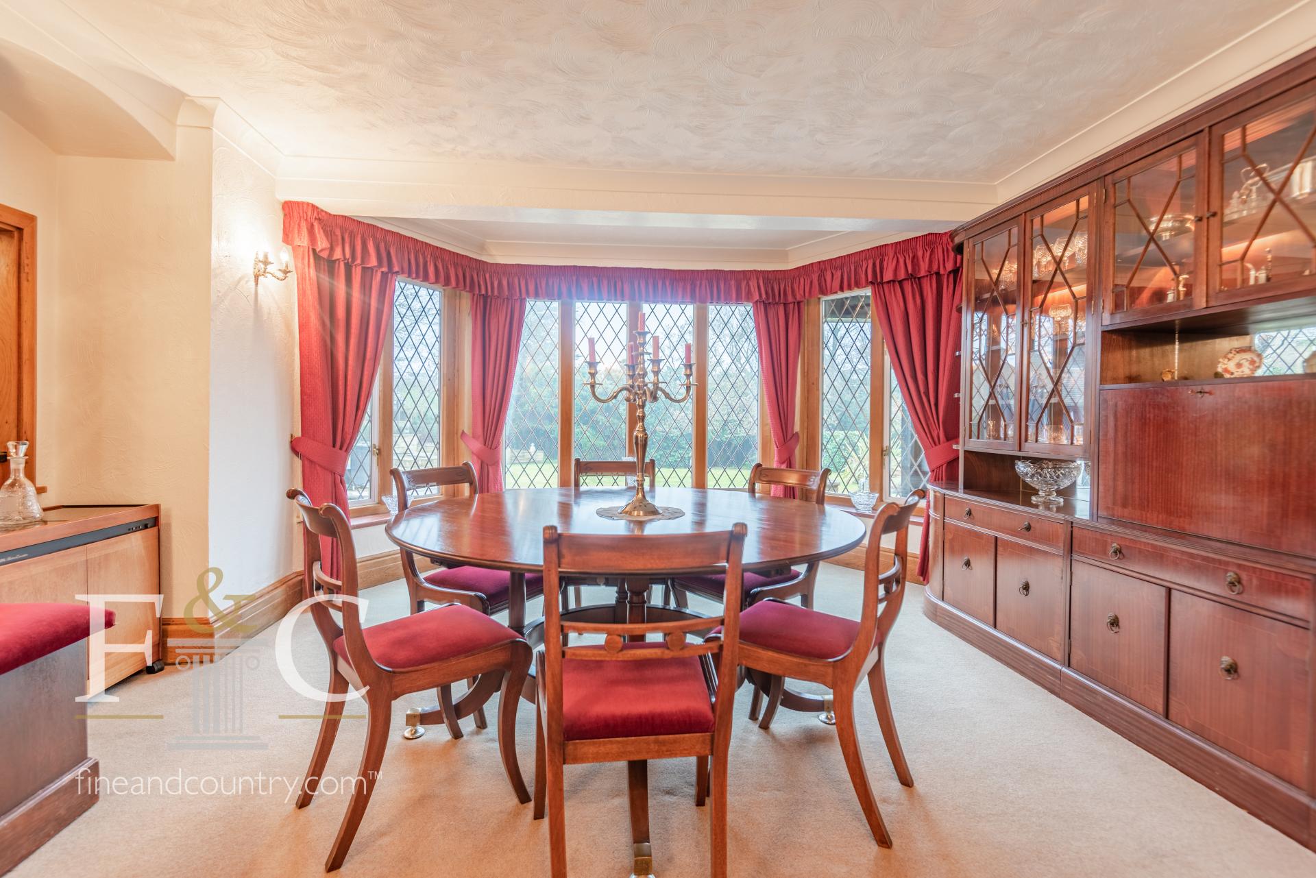 The property has a appealing grand frontage with a large carriage driveway offering parking for numerous vehicles and both a double garage and single garage. Enclosed within the delightful grounds there is brick built workshop, wine store, detached office/ hobby room and a summer house/ garden room. The gardens are well stocked and have attractive formal water features, patio/sun terrace areas, lawns, alfresco dining area and covered veranda all complimented by a good size swimming pool.