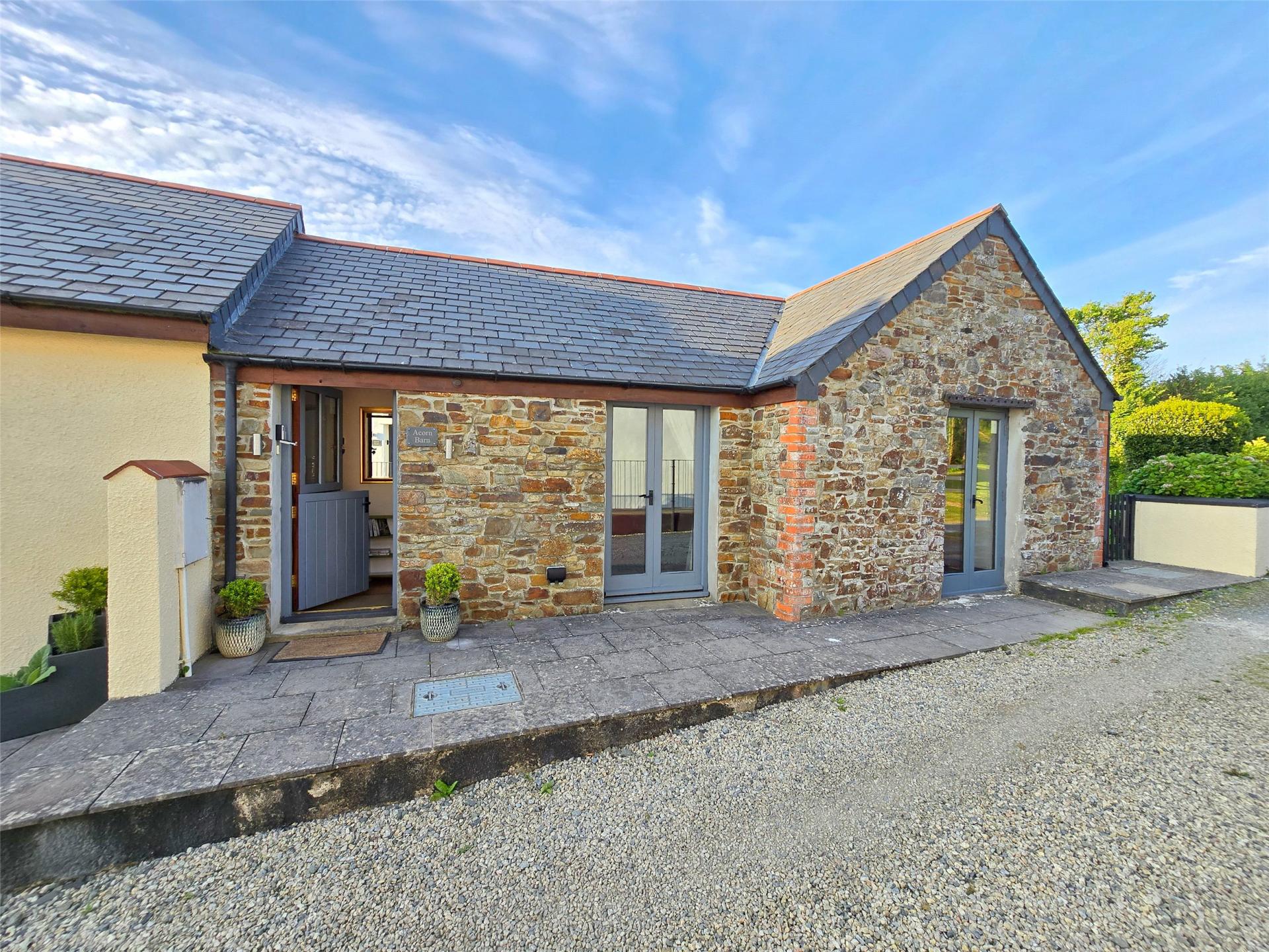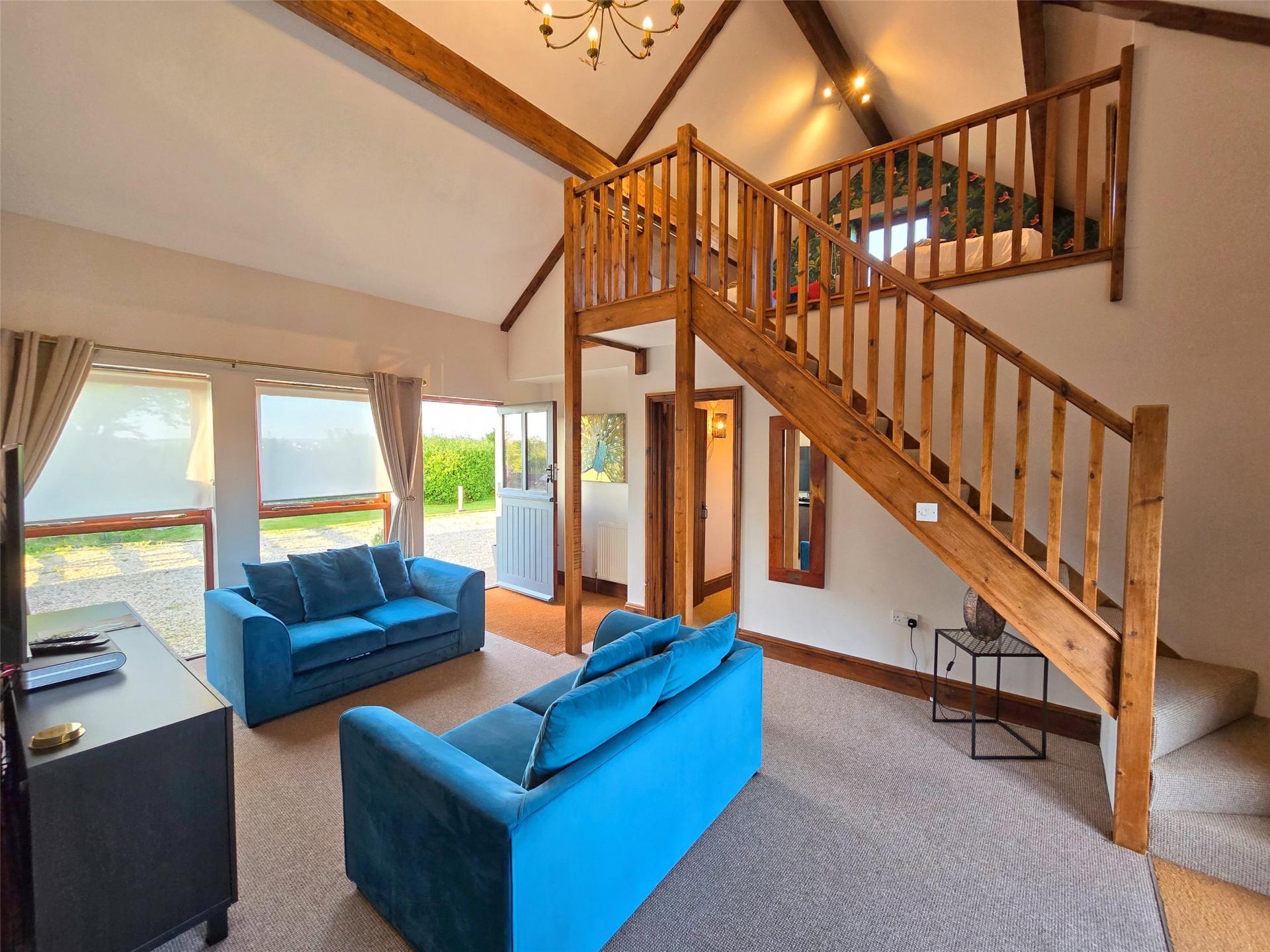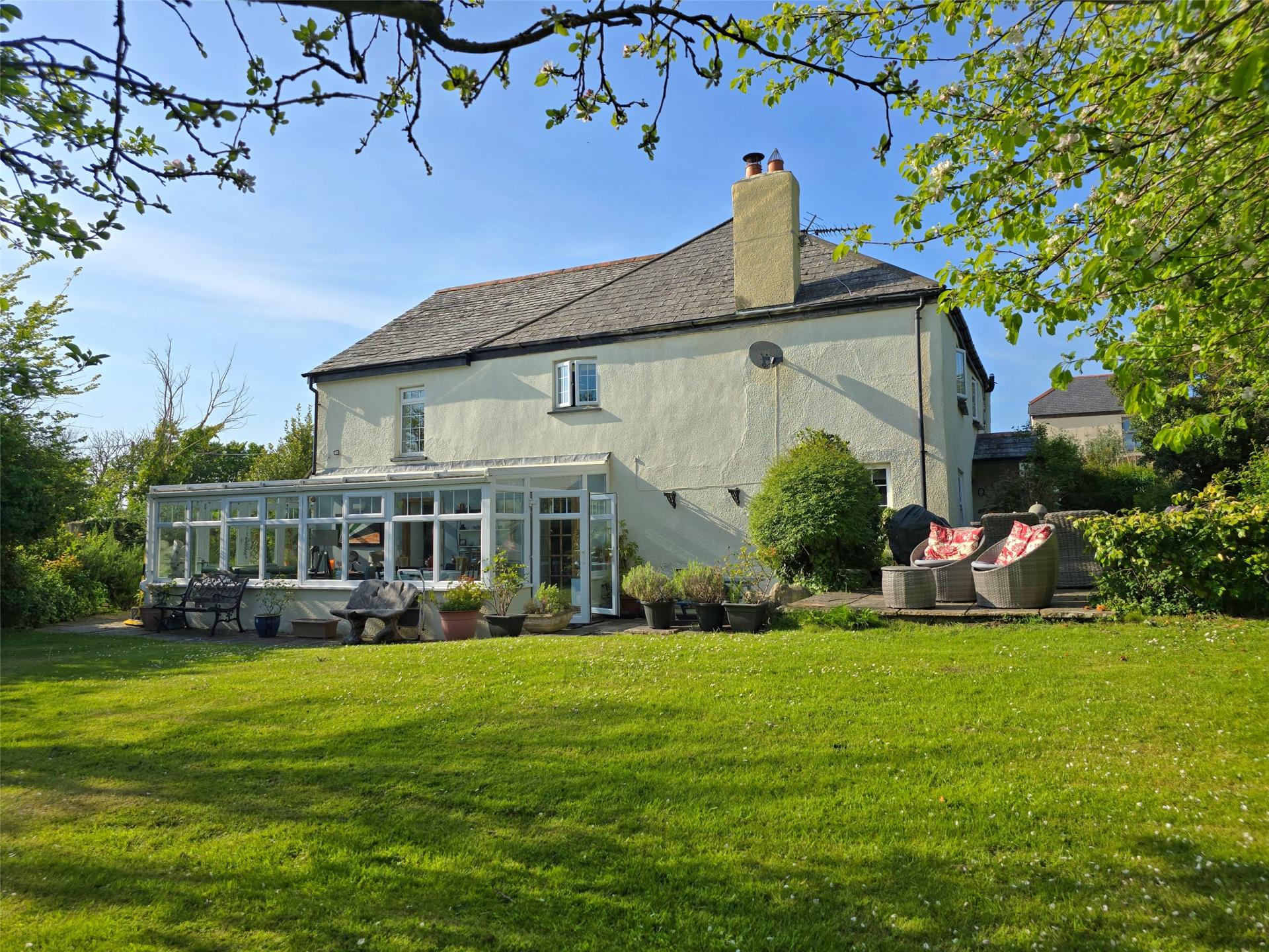 Helscott is approached via a shared entrance lane, leading to a private driveway for the main residence and barns. The formal gardens are mainly laid to lawn with established flower and shrub beds. A paved patio and seating terrace adjoining the conservatory offer pleasant garden views. Additional features include a vegetable garden with raised beds, a large greenhouse, and a timber shed/store. The property also boasts a 2.1-acre gently sloping paddock with far-reaching views across open countryside, to Bude town and the coast beyond.