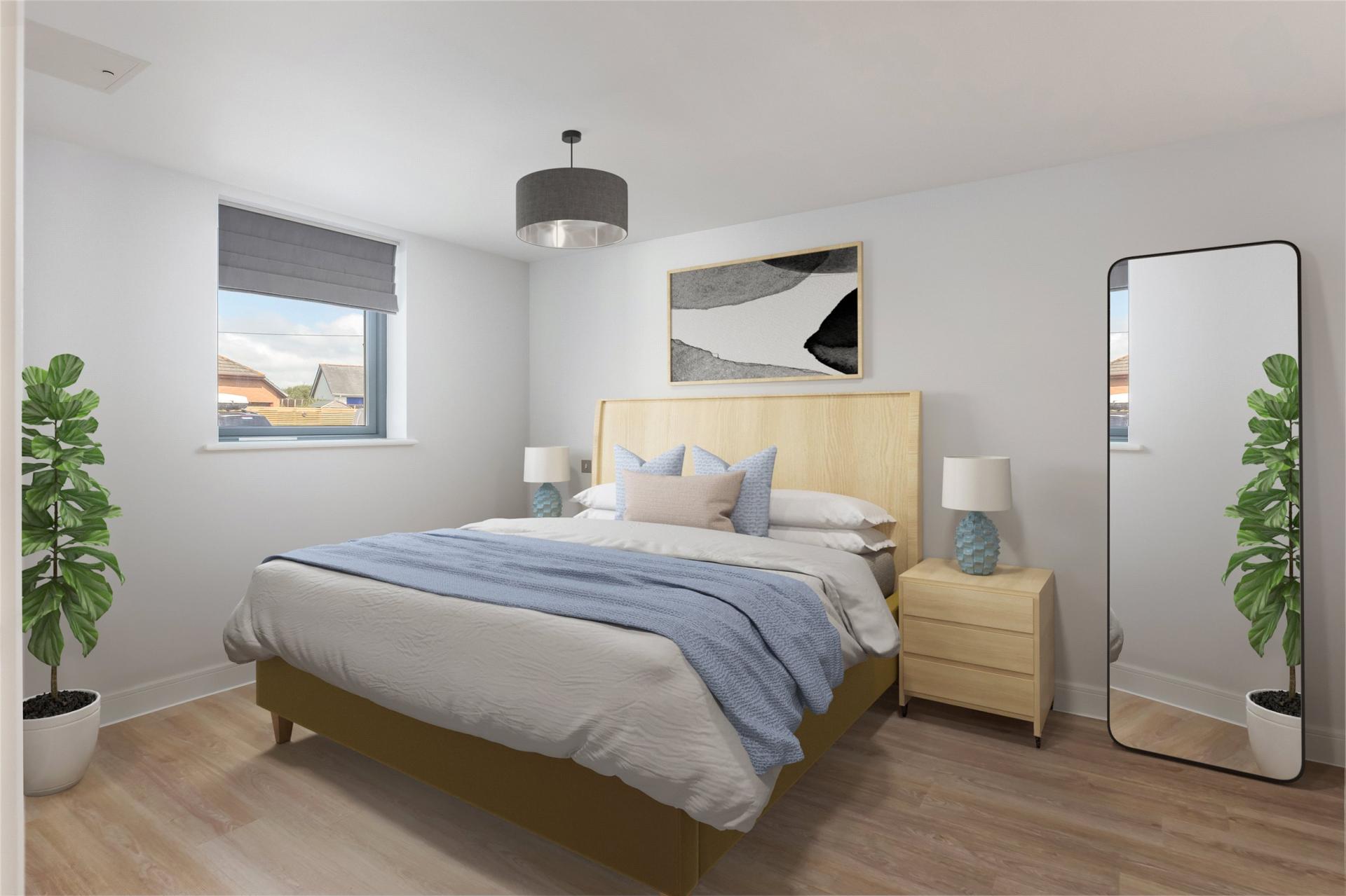 A double bedroom with satin chrome switches and sockets and LVT flooring with underfloor heating.