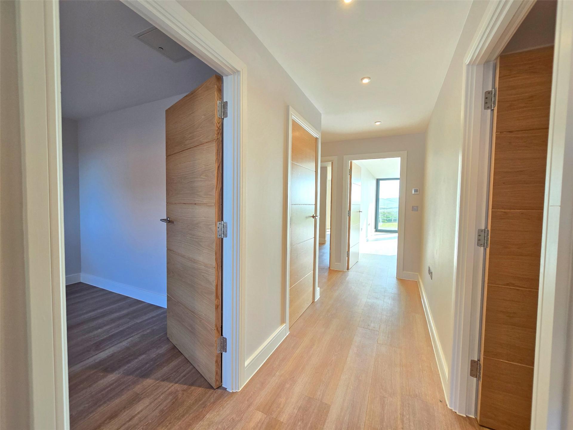 Inset lighting, LVT flooring with underfloor heating, Openreach fibre connection, cupboard housing the underfloor heating manifolds and consumer unit, further cupboard with Baxi gas fired boiler and space and plumbing for washing machine. Doors serve the following rooms: