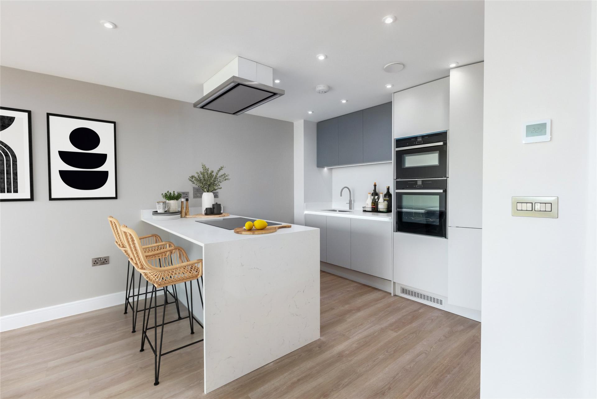 The kitchen is fitted with top-of-the-range Neff appliances, including an induction hob and slide-and-hide oven, along with a Quooker tap and built-in wine cooler. Sleek, contemporary cabinetry and natural stone worktops complete the high-end finish, while the entire apartment is designed with comfort and convenience in mind, from satin chrome fittings to fibre broadband and state-of-the-art insulation.
