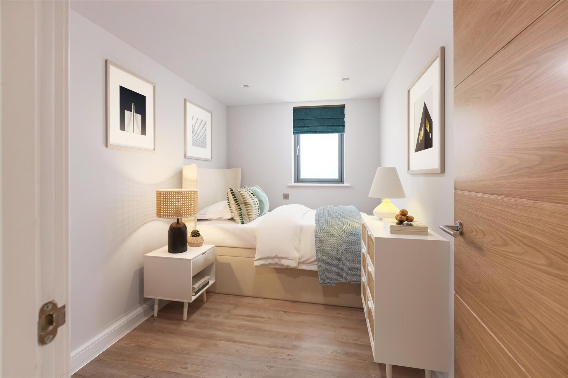A bright and spacious principal double bedroom with double glazed window to the side elevation. Feature wall lights, satin chrome switches and sockets. Built in double wardrobe. and LVT flooring with underfloor heating. Door to:-