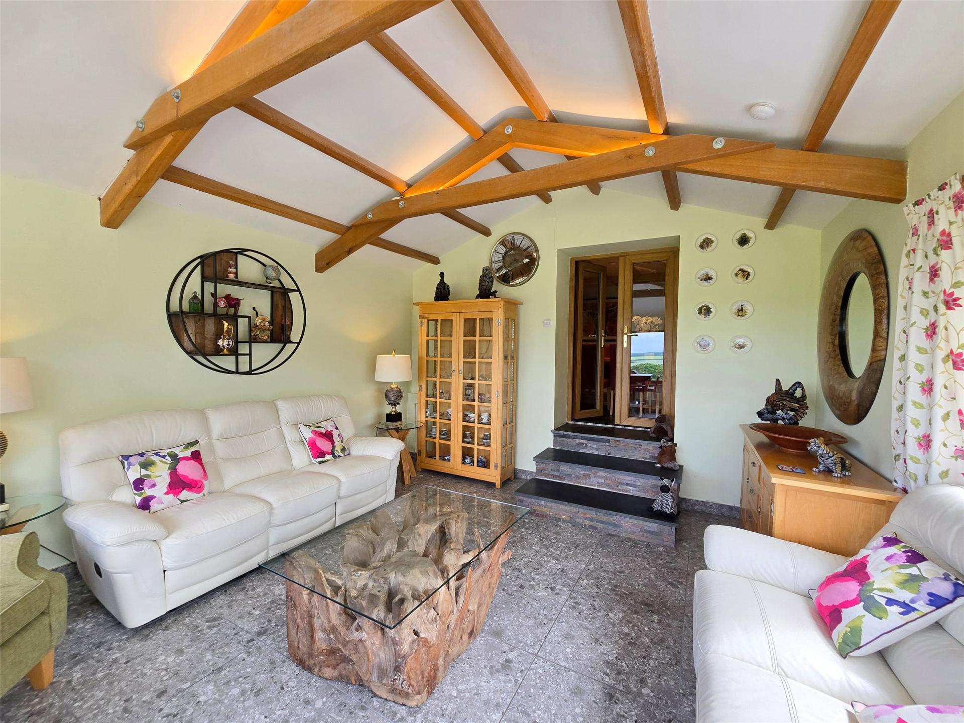 To the rear, a superb sunroom has been thoughtfully added by our clients, boasting a vaulted beamed ceiling, bi-folding doors, and uninterrupted countryside vistas – an ideal space for entertaining or relaxing year-round.