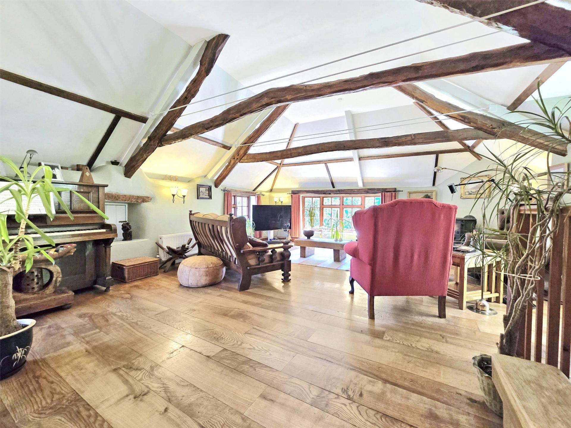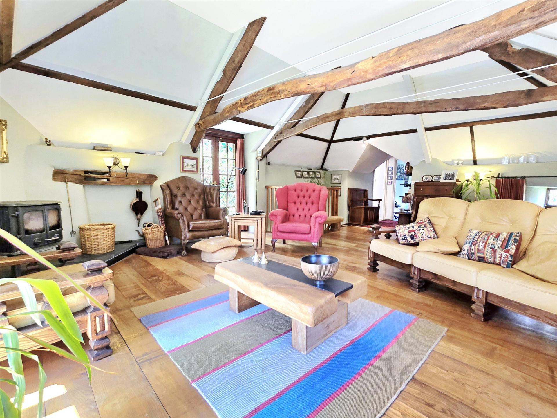 - Stunning vaulted living room with original beams and multi-fuel stove