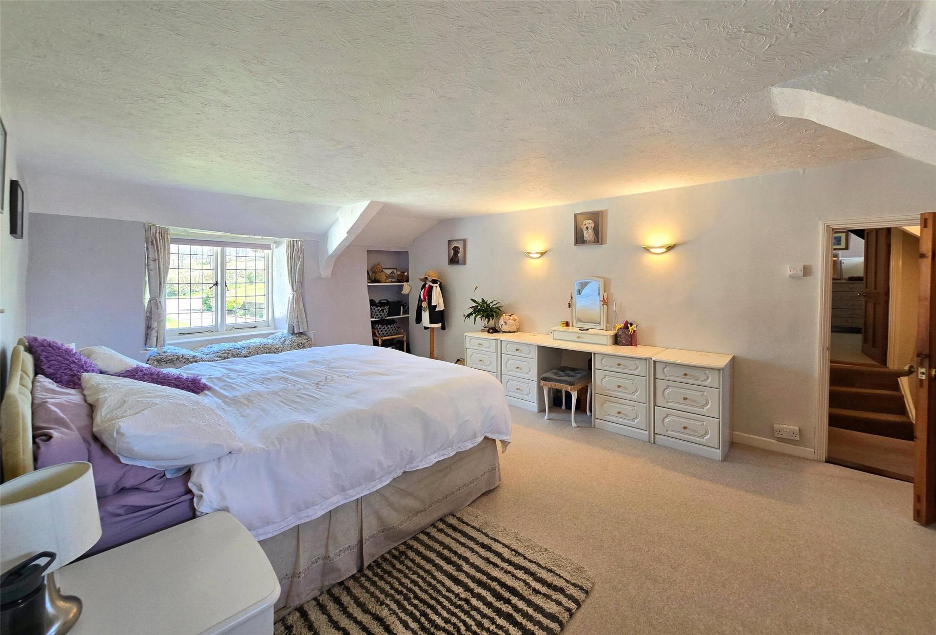 Tucked away at the end of a well-maintained tarmac lane (with just 2 other neighbouring properties) with electric gated access, this exquisite Grade II listed thatched cottage offers a rare opportunity to acquire a home of historical importance, seamlessly blending period character with modern convenience. The heart of the home is the large farmhouse-style kitchen, perfect for family gatherings, while three reception rooms provide ample space for relaxation and entertaining, each showcasing stunning original features such as beams, fireplaces, and clome ovens.