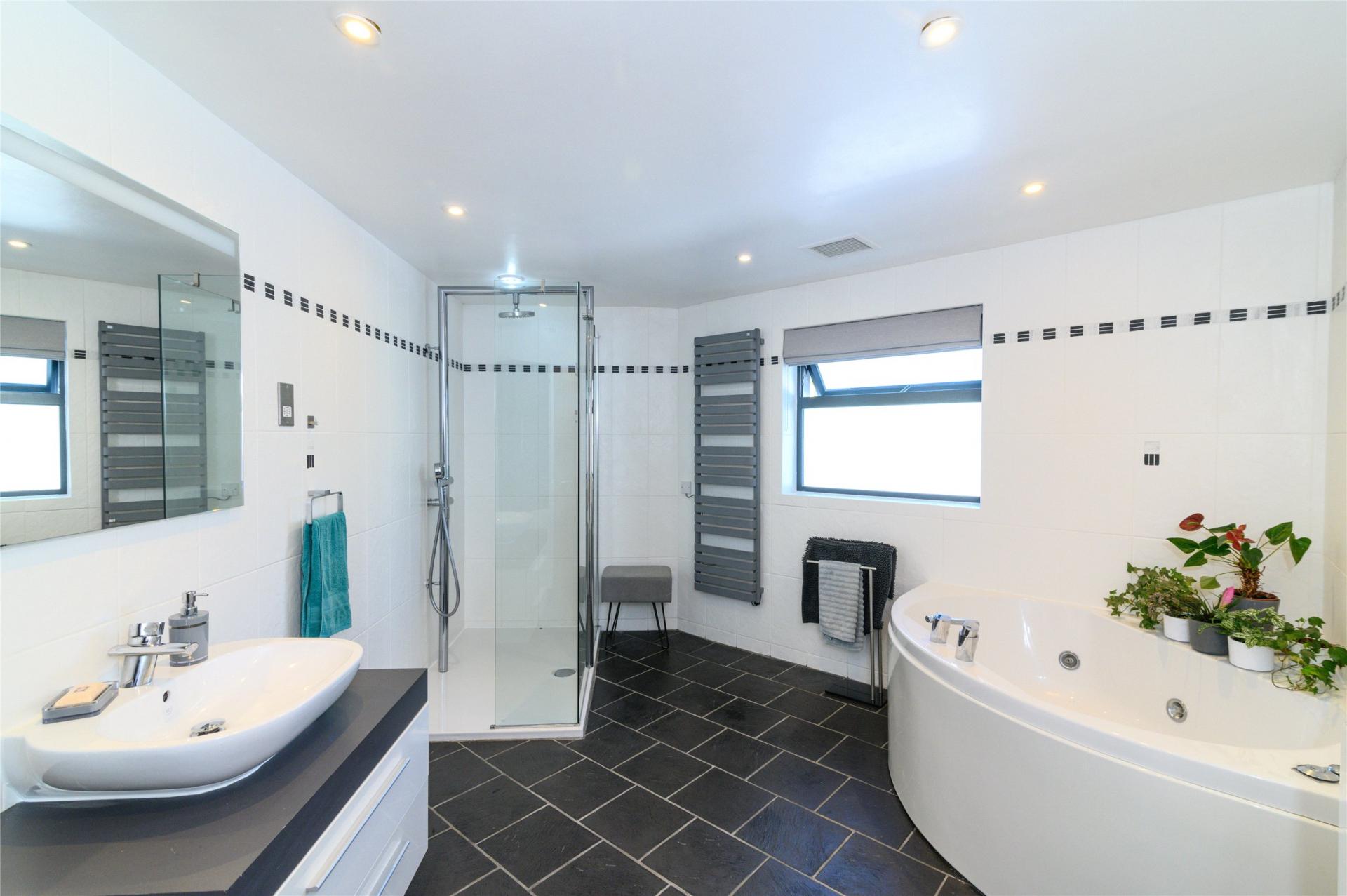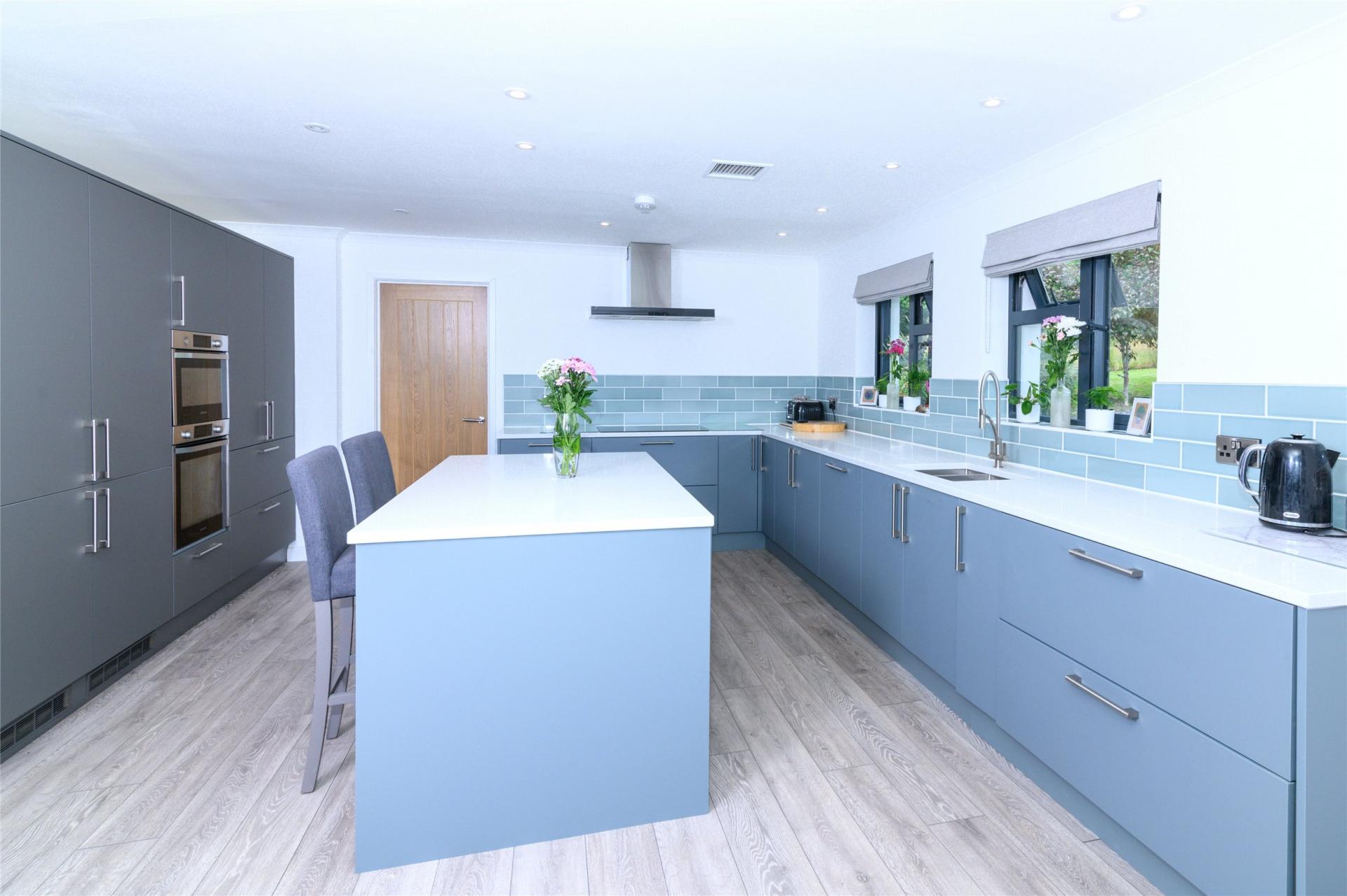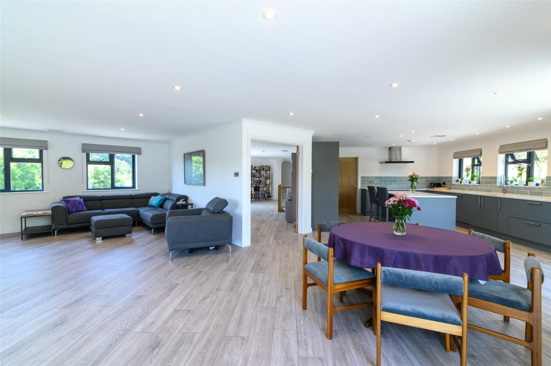 Our client has overseen a vast remodelling and refurbishment of this highly individual detached home, where all the main accommodation, located on the first floor, benefits from superb country views in every direction. This level comprises a very spacious, open plan living/dining/kitchen featuring Quartz work surface, a central island and integral appliances, a large hallway with access to the balcony, a utility room, a master suite with dressing area and ensuite, the family bathroom and 2 further double bedrooms. There is very easy access to the resin bound patio, which runs the whole length of the rear elevation, from the master suite, utility and dining area creating a great connection from the inside to the outside entertaining space.