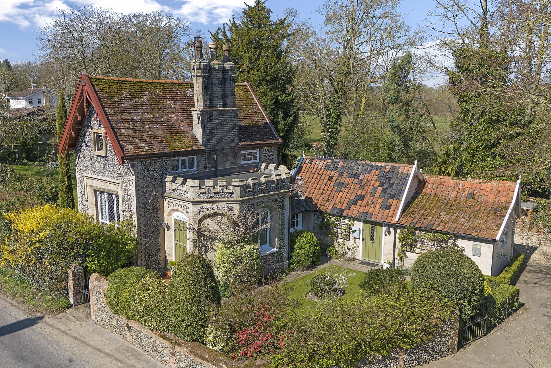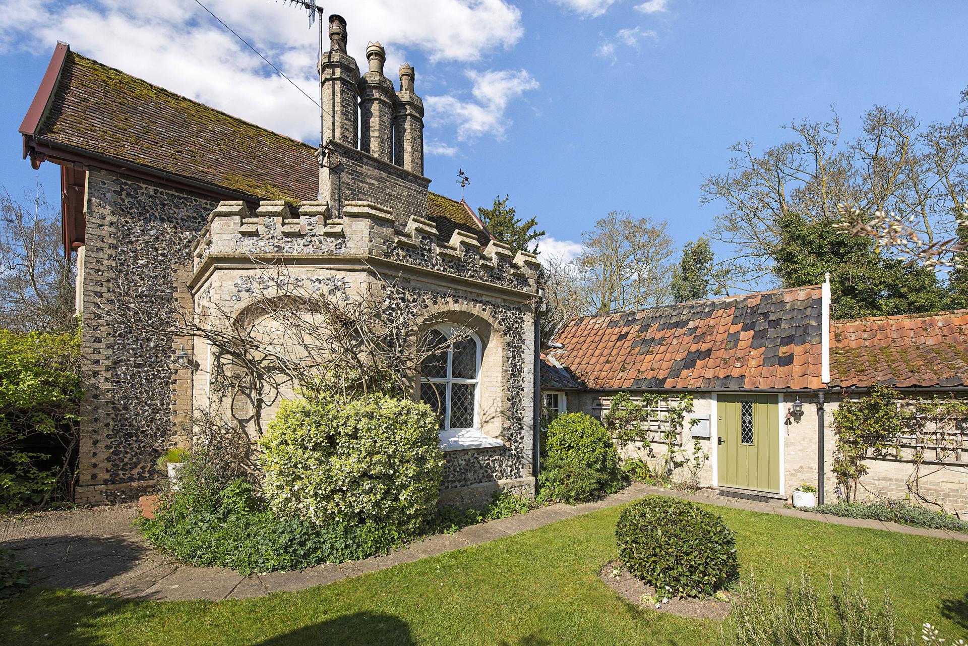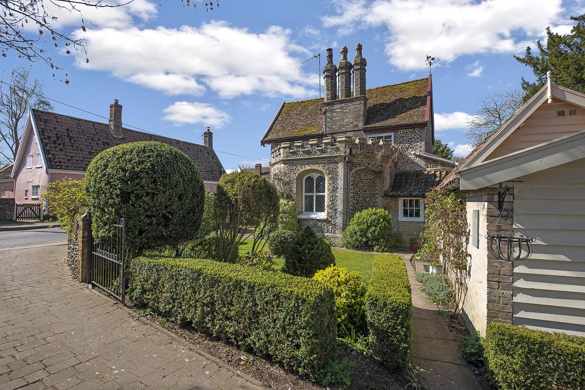 THE OLD READING ROOM COTTAGE Nestled within the heart of this highly regarded village, Reading Room Cottage is a distinguished Grade II listed residence, beautifully restored to preserve its historic charm. Originally constructed in 1830, the property showcases traditional Gault brick-and-flint craftsmanship beneath a plain tiled roof. Notable architectural features include unique embattled parapets and intricately carved rose bargeboards, adding to its character and appeal. Set within attractive, well-maintained gardens, this exceptional property seamlessly blends historic elegance with modern comfort, making it a rare and desirable offering in an esteemed location.