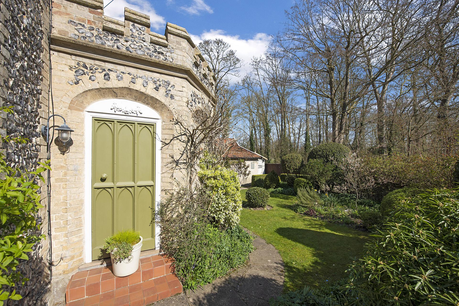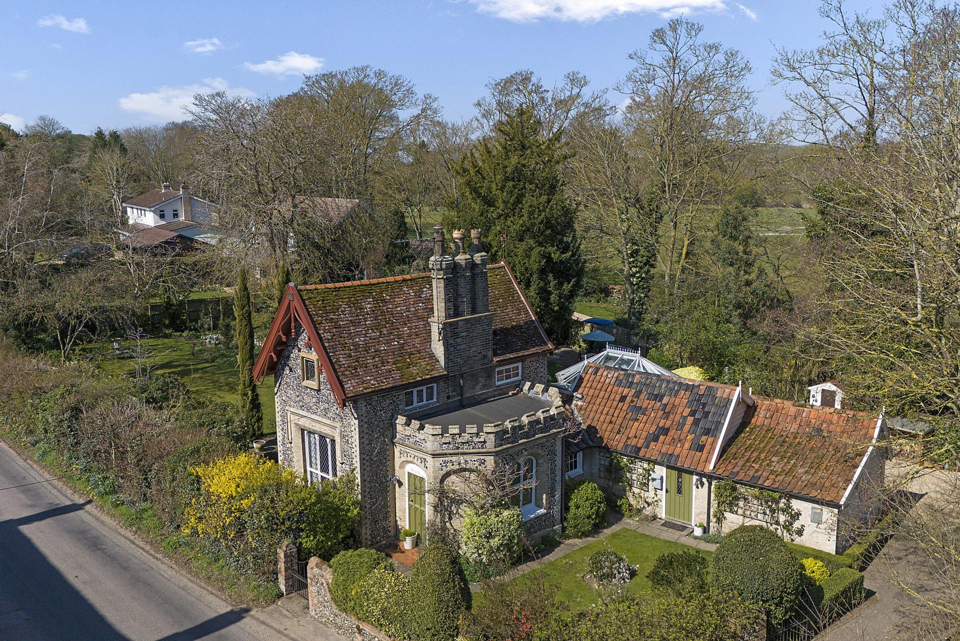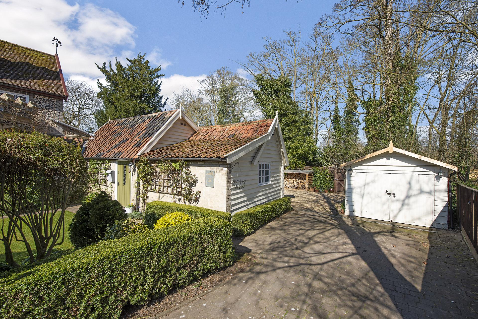 THE OLD READING ROOM COTTAGE Nestled within the heart of this highly regarded village, Reading Room Cottage is a distinguished Grade II listed residence, beautifully restored to preserve its historic charm. Originally constructed in 1830, the property showcases traditional Gault brick-and-flint craftsmanship beneath a plain tiled roof. Notable architectural features include unique embattled parapets and intricately carved rose bargeboards, adding to its character and appeal. Set within attractive, well-maintained gardens, this exceptional property seamlessly blends historic elegance with modern comfort, making it a rare and desirable offering in an esteemed location.