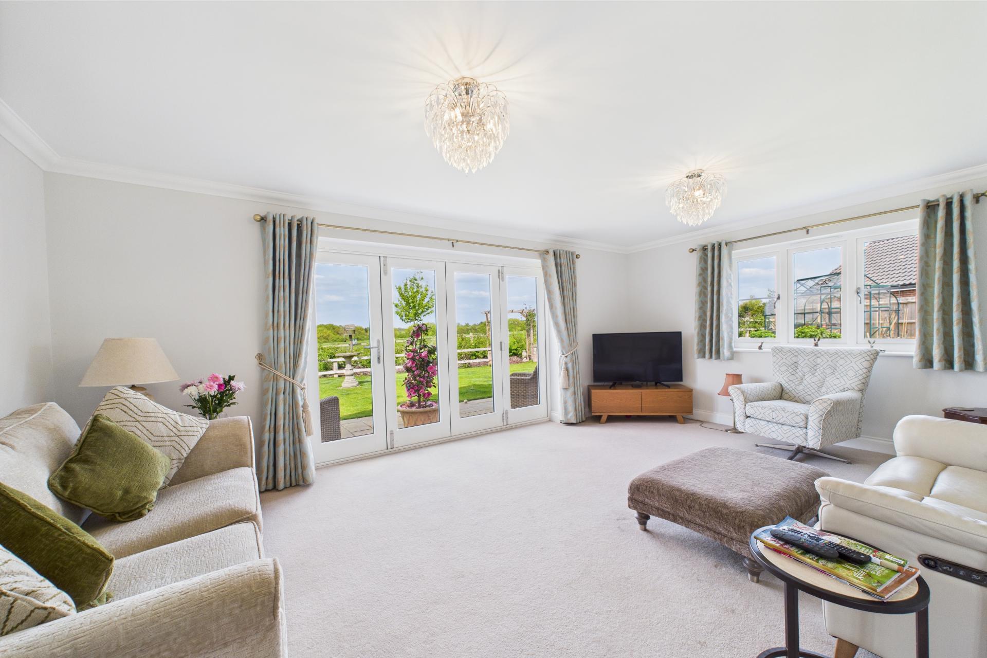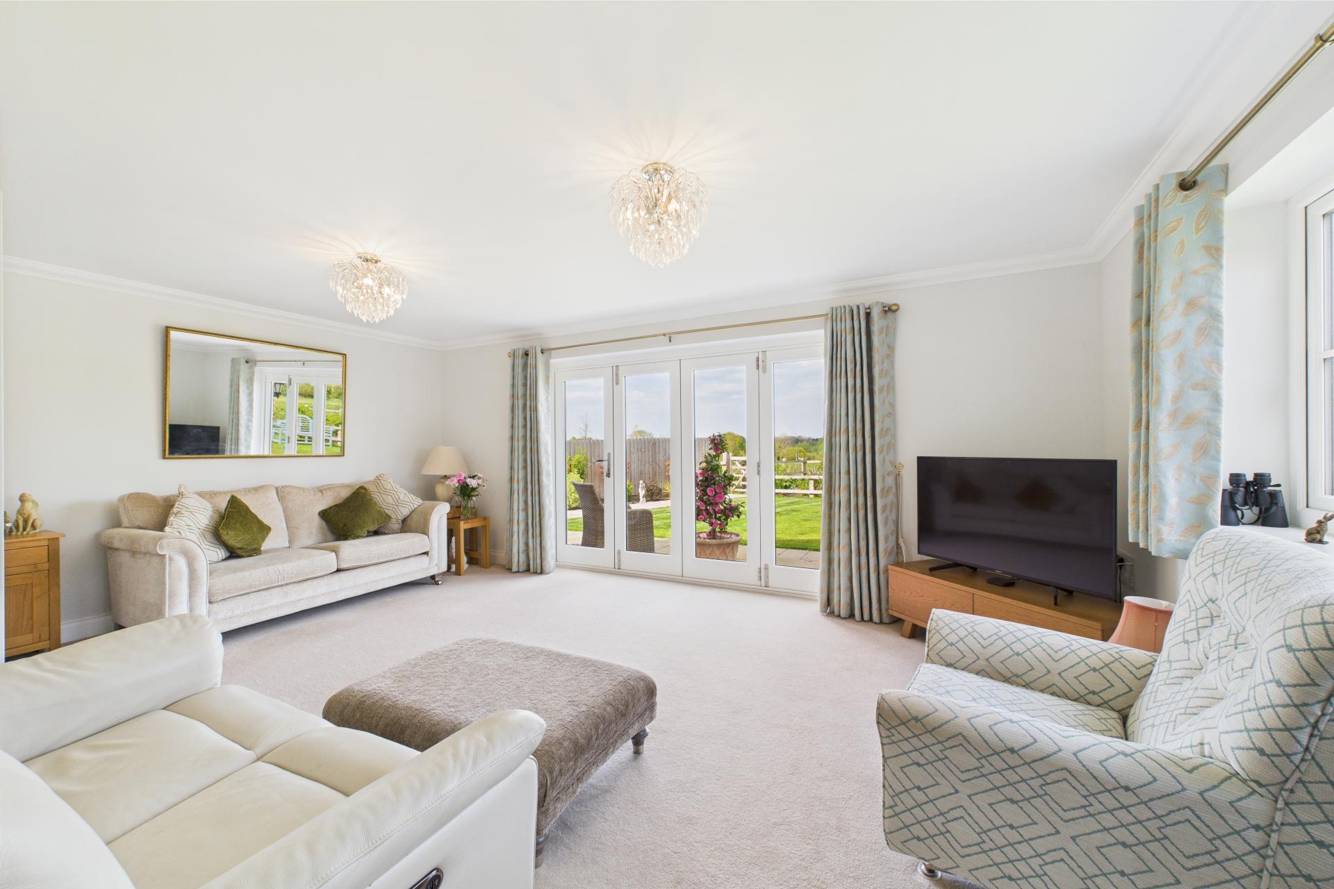 STEP INSIDE The bungalow features a thoughtfully laid-out interior that flows seamlessly from room to room. The wide central hallway creates a sense of openness and connectivity, leading to a spacious and contemporary kitchen complete with generous worktop space, modern cabinetry, and integrated appliances including dishwasher, oven and hob. This sociable space opens directly into a bright and airy living room, where bi-folding doors frame uninterrupted views of open fields and invite natural light to flood the space. Ideal for both relaxing in peace and entertaining guests, this central living area serves as the heart of the home.