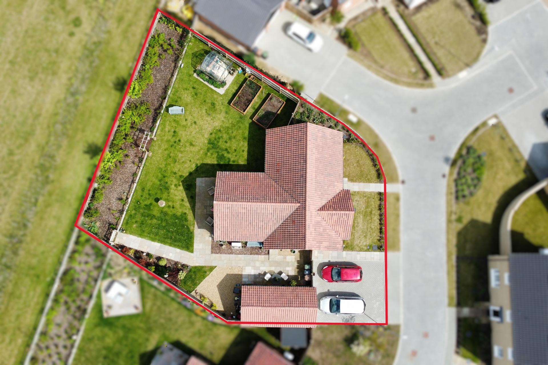 STEP OUTSIDE A neatly paved pathway guides you to the elegant front door, flanked by tasteful potted greenery, setting a welcoming tone from the outset. To the side, a private driveway and detached garage provide generous off-street parking along with valuable storage options. At the rear, the garden truly shines-backing onto expansive open fields that deliver uninterrupted, panoramic views and a wonderful sense of peace and seclusion. This thoughtfully maintained outdoor space features a greenhouse and a variety of vegetable planters, all bordered by vibrant flower beds. Whether enjoying a quiet morning coffee on the patio or entertaining guests on a summer evening, the garden offers a beautiful and functional extension of the home.