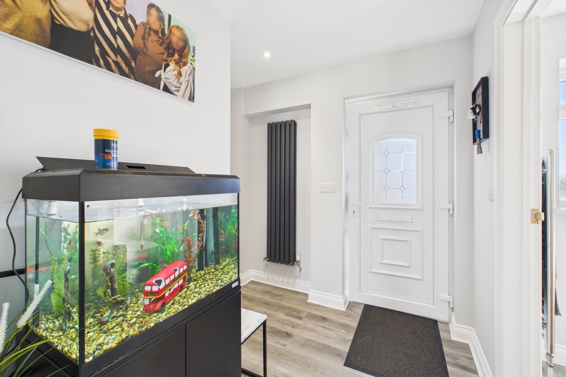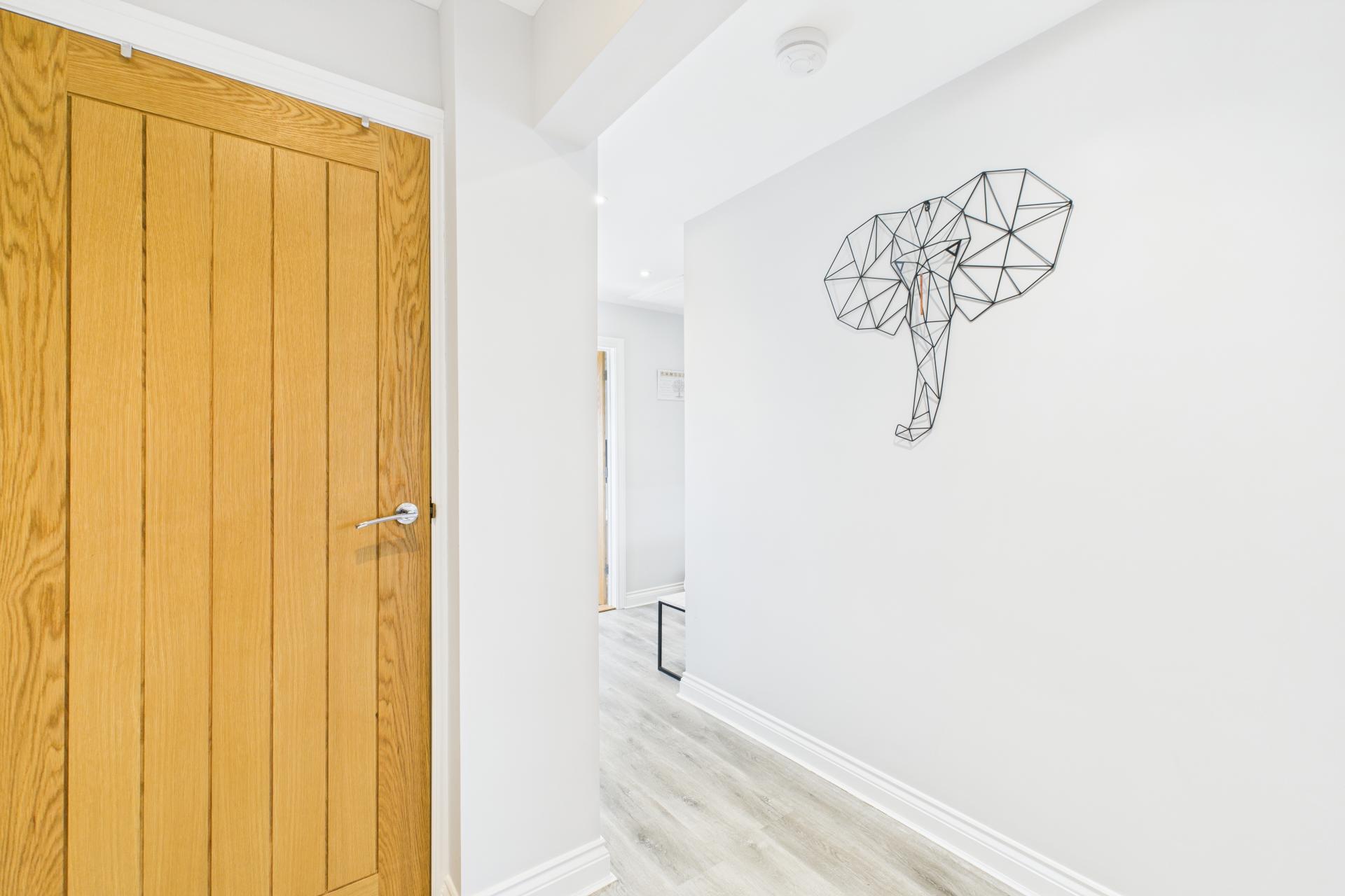 The spacious hallway provides a central artery through the home, linking all key rooms while offering storage potential and an inviting entry space.
