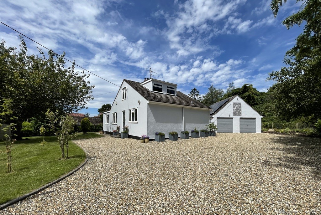 CHURCH ROAD This is a rare opportunity to acquire an impeccably presented four-bedroom chalet-style bungalow, situated in the highly sought-after village of Thurston. Nestled away from the road on a substantial 0.4-acre plot, Willowdene boasts beautifully manicured flower beds, charming patio areas perfect for relaxation and outdoor entertaining, and a detached double garage with annex potential.