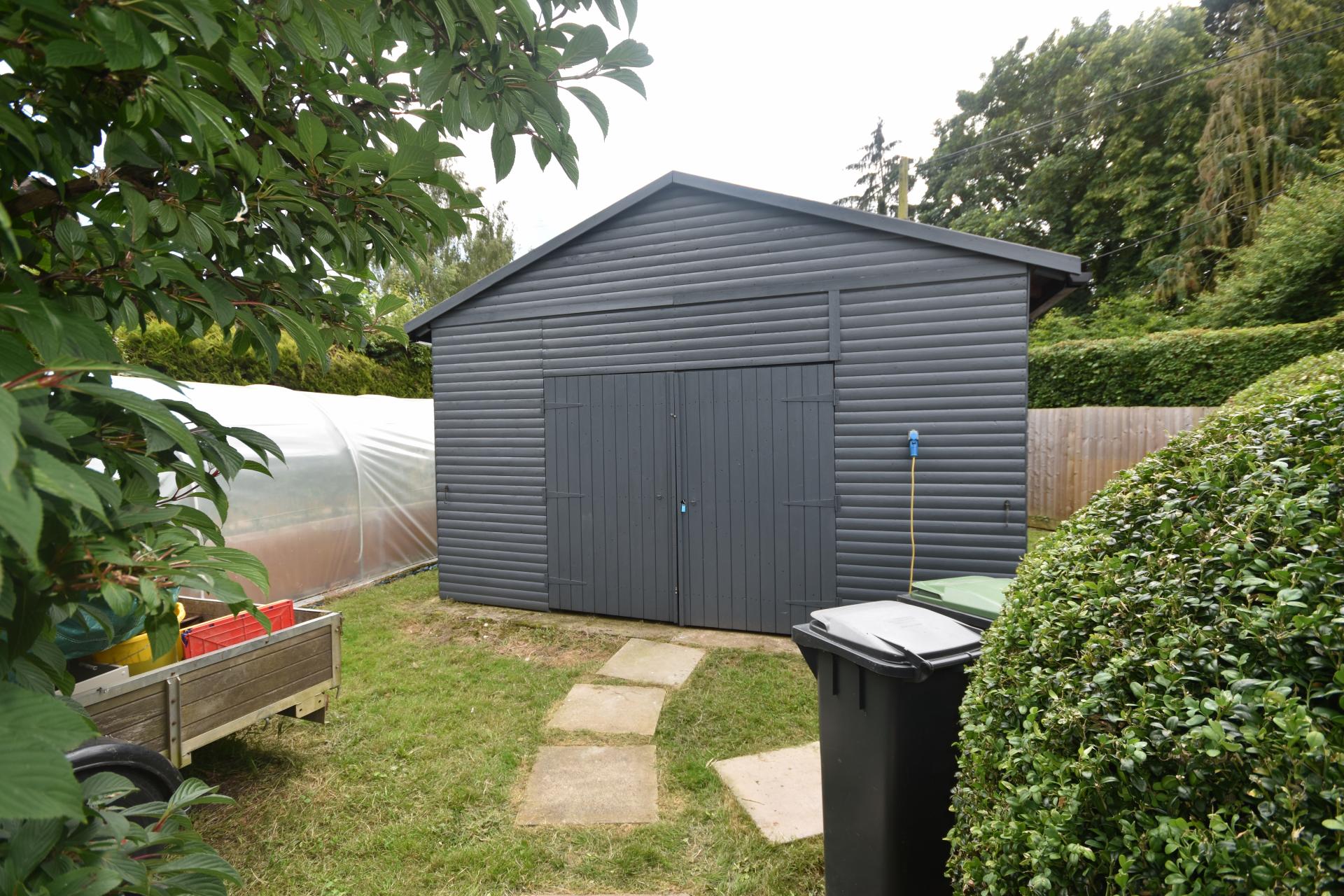 STEP OUTSIDE Entering through a gated entrance, you are welcomed onto a large, sweeping driveway that leads to a double garage, offering ample parking for numerous vehicles. Discreetly positioned in the front corner of the plot is an additional timber garage/workshop, perfectly equipped to house gardening tools and mowers.