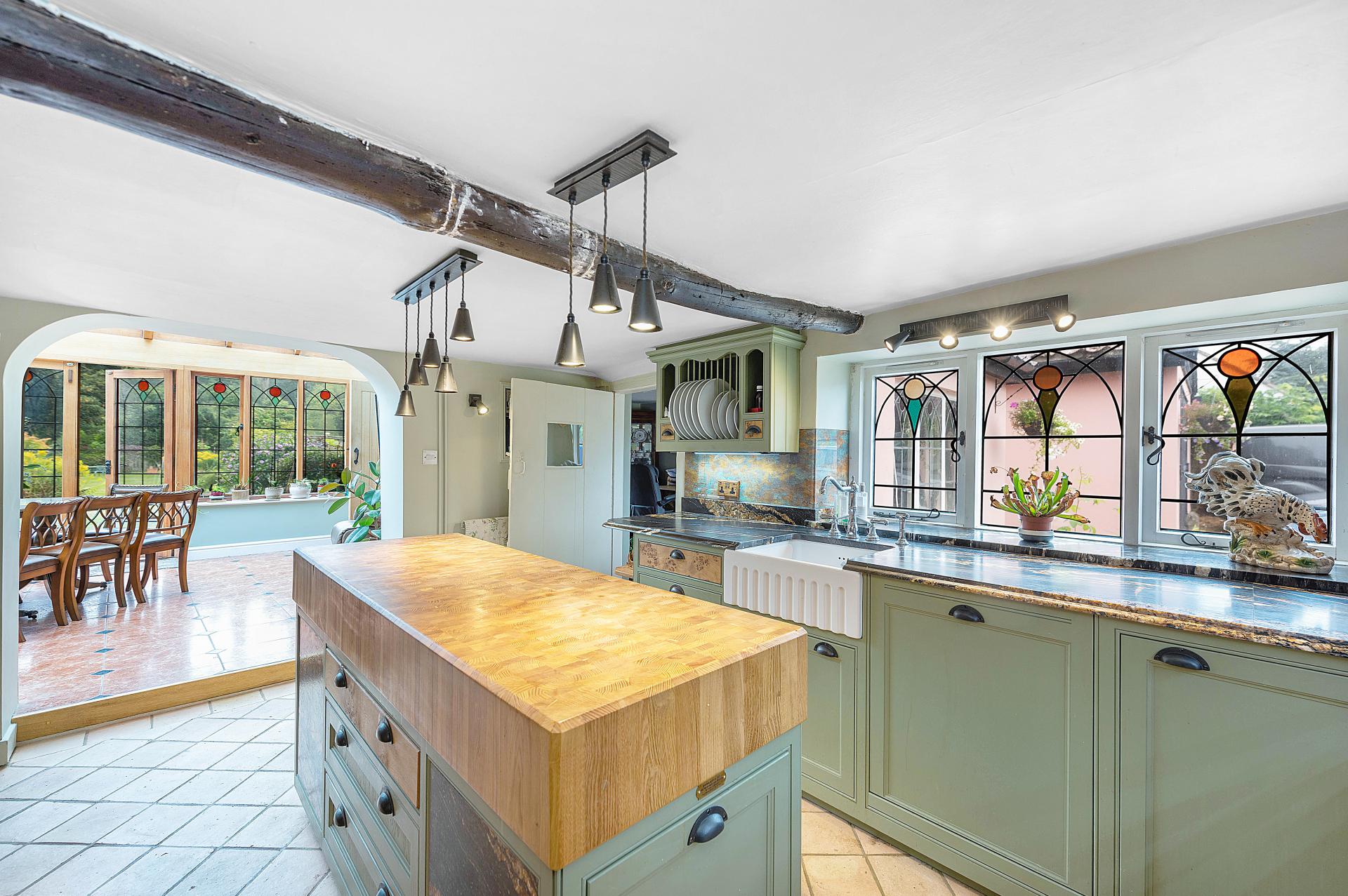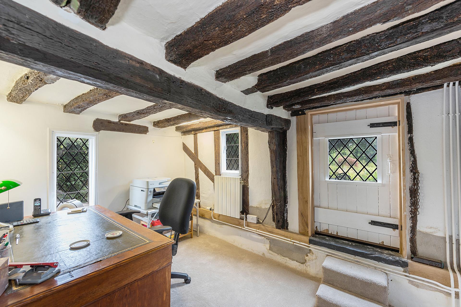 STEP INSIDE This distinctive home is full of charm, character, and period detail, offering an abundance of versatile living space. From the first step into the entrance hall, you are welcomed by a sense of craftsmanship and history. The ground floor unfolds into a wonderful mix of formal and informal rooms, including a bright conservatory with a vaulted ceiling and French doors opening to the garden, a beautifully appointed kitchen with bespoke hand-made cabinetry, central island, and exposed ceiling beam, and a choice of reception spaces to suit every occasion. The snug and living room provide cosy, inviting settings with a fireplace in each. There is a rear office with a small historic door out onto the patio and an extra reception room off the kitchen currently used as an office that could become an idea dining room for entertaining and family gatherings. Practical features such as a utility room, cloakroom, and well-planned storage make the layout both functional and convenient.