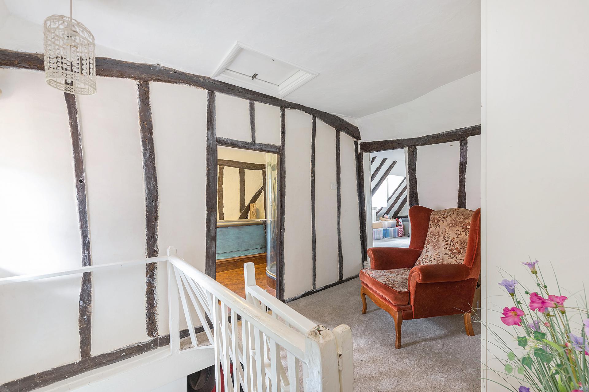 BARTON MILLS Believed to date back to the 15th century, this distinguished property is reputed to have been the former home of Sir Henry Barton, Lord Mayor of London. Rich in character, it has been thoughtfully enhanced with sympathetic improvements, including an oak-framed conservatory, four bedrooms, and a generous driveway with ample parking. The mature gardens are arranged into distinct areas, featuring a main lawn, secluded "Secret Garden," children's play area, and wildlife-rich river frontage. More recently, the timber framing to the side and rear has undergone careful restoration, with remedial works and the application of traditional lime plaster, preserving both the integrity and timeless charm of this exceptional home.